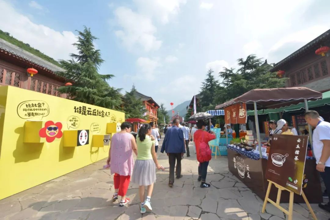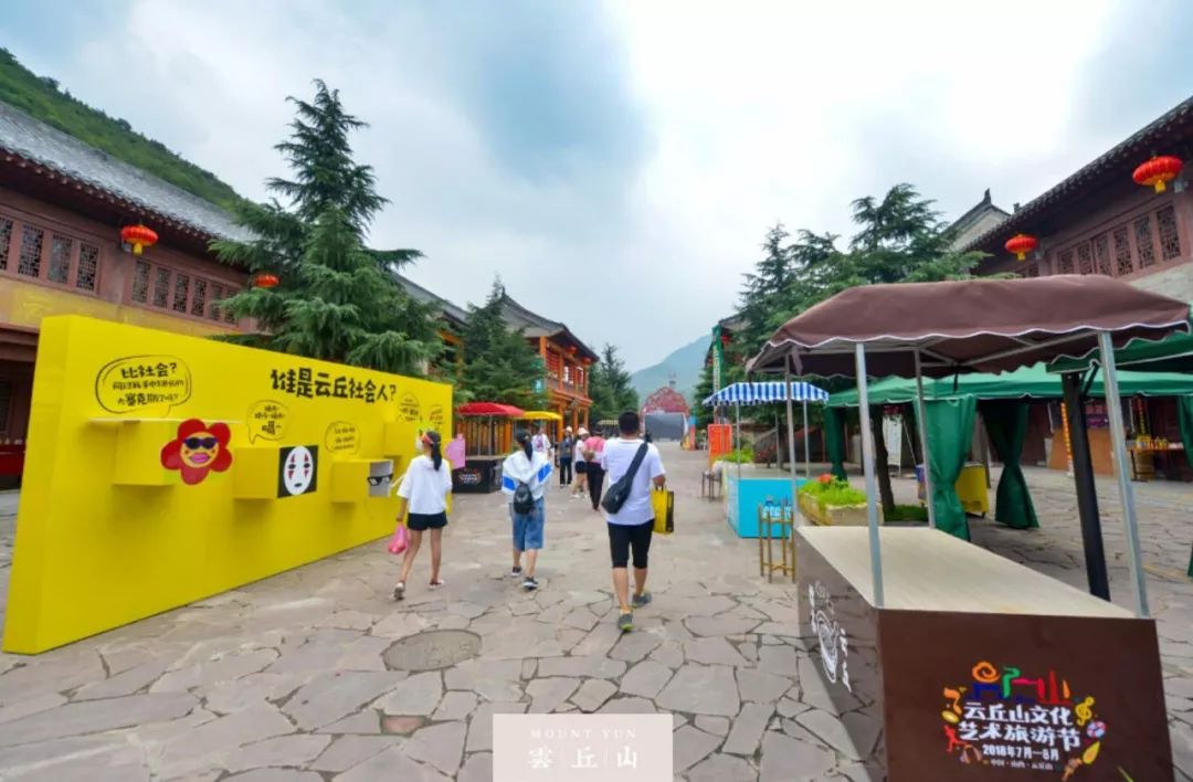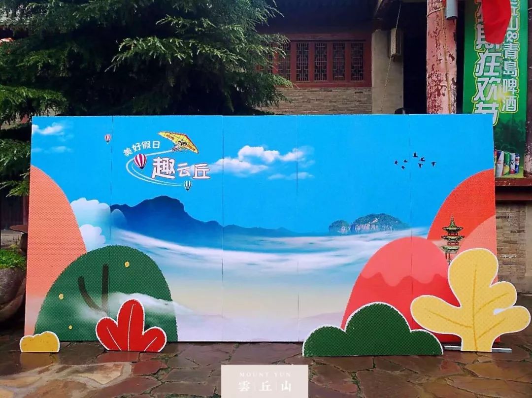 主题街区还有一处拍照必打卡点,明黄深蓝背景墙打造最潮旅行照,一家出游合照没新意没创意?云丘山为你打造拍照新姿势!流量猪佩奇挑战云丘社会人,多款表情上位,等你来宠幸!