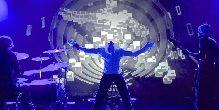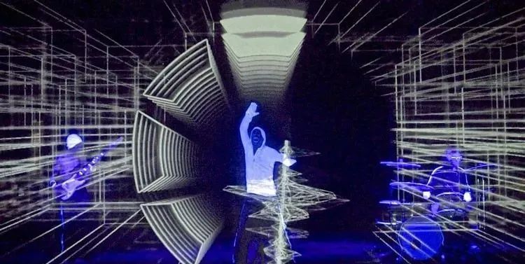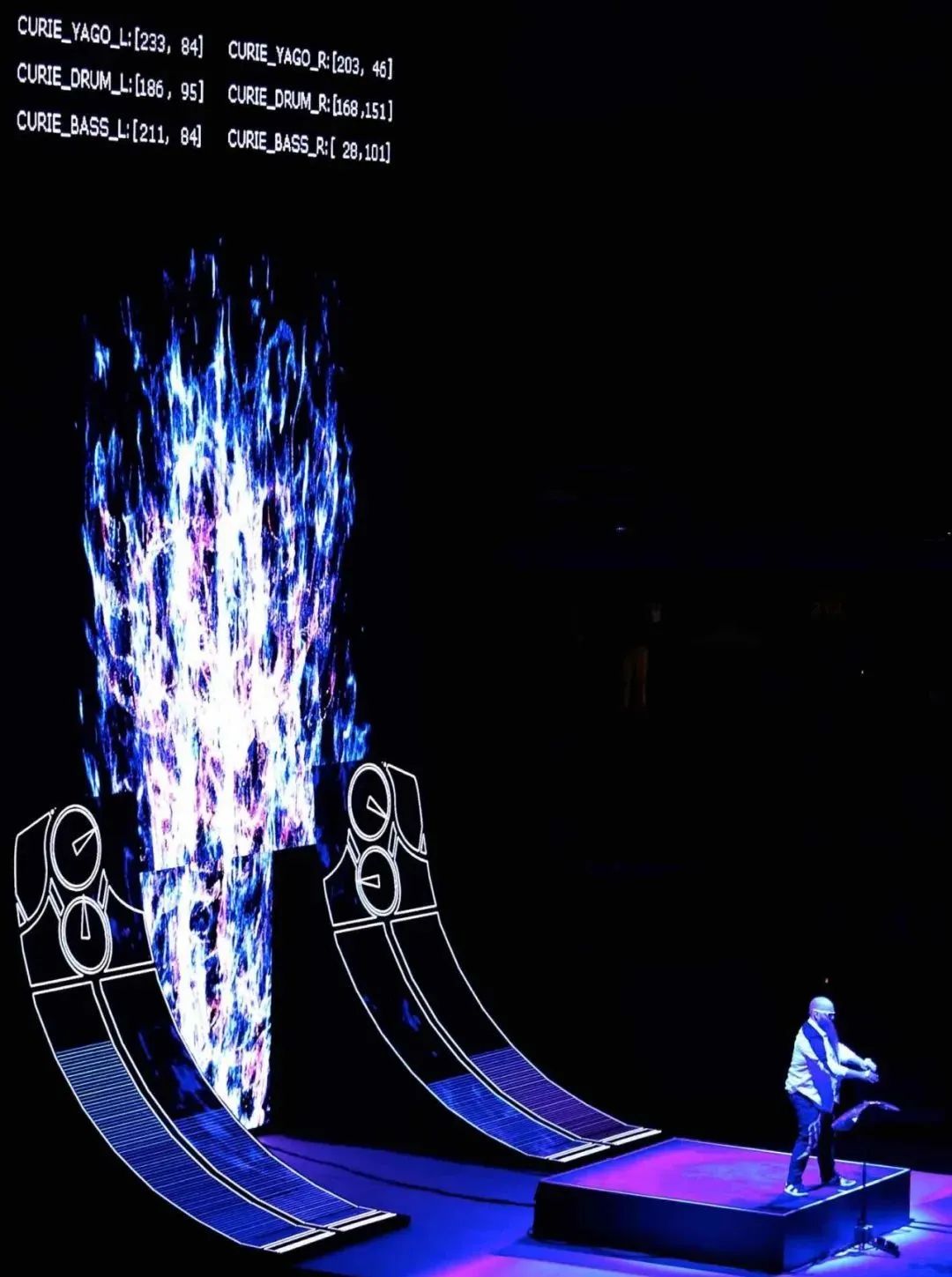 三人乐队用手势控制乐器,两名舞者用动作操纵视觉,240秒,完美搭配,结合主题,创造身临其境的视觉效果,这简直就是一场充满未来气息的展示,这更是一场最大胆和前沿的表演活动。