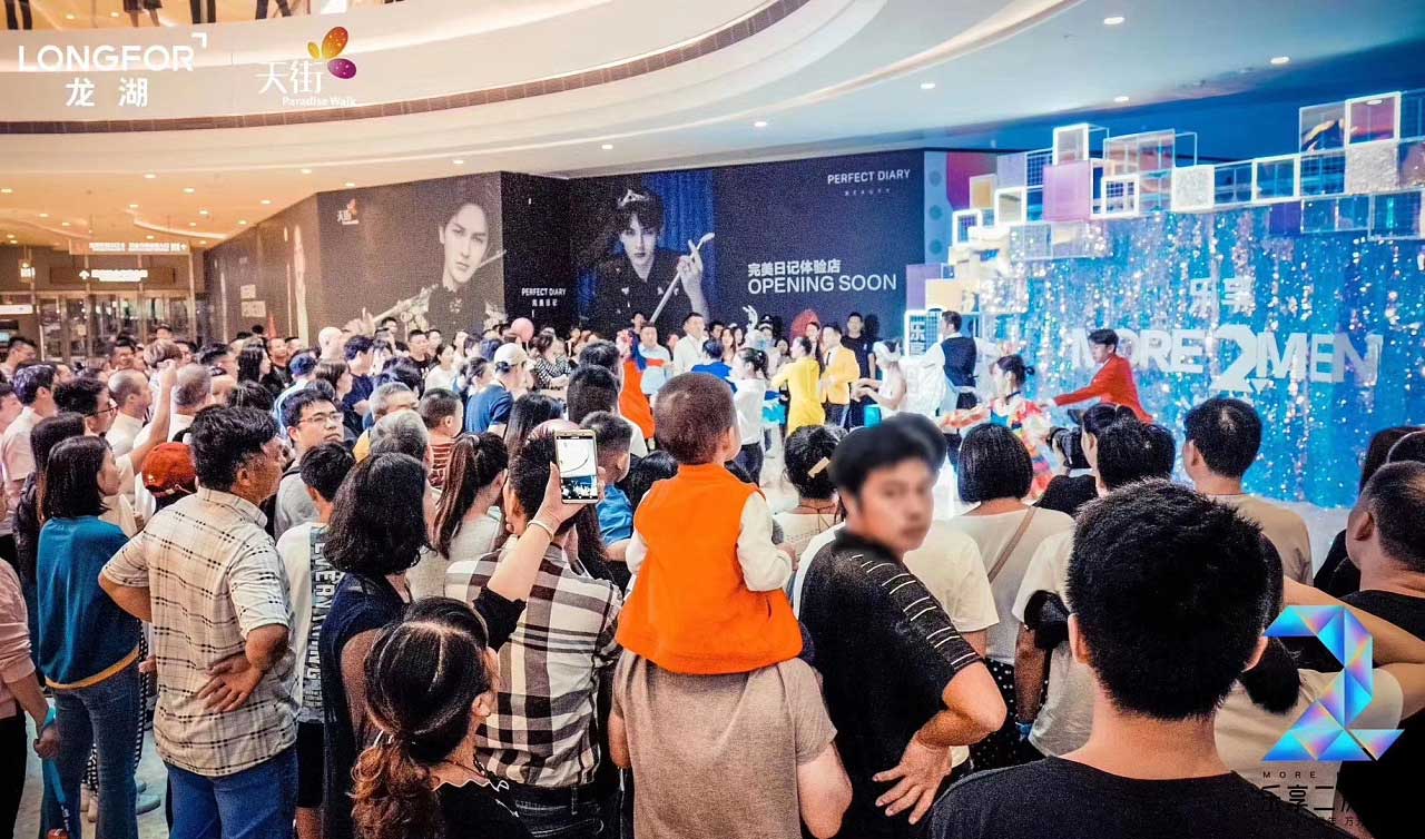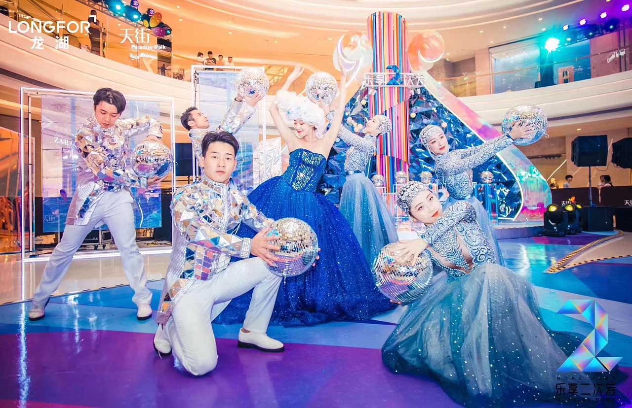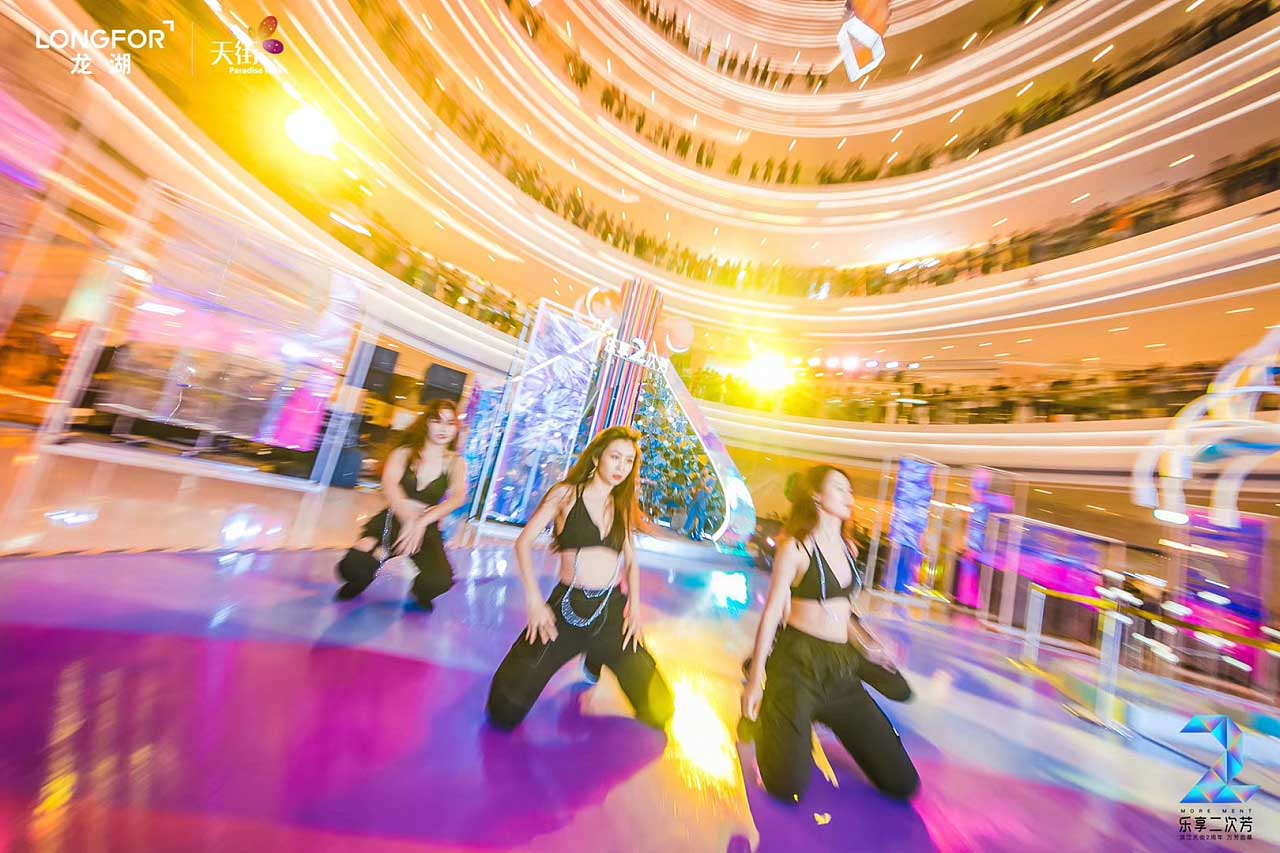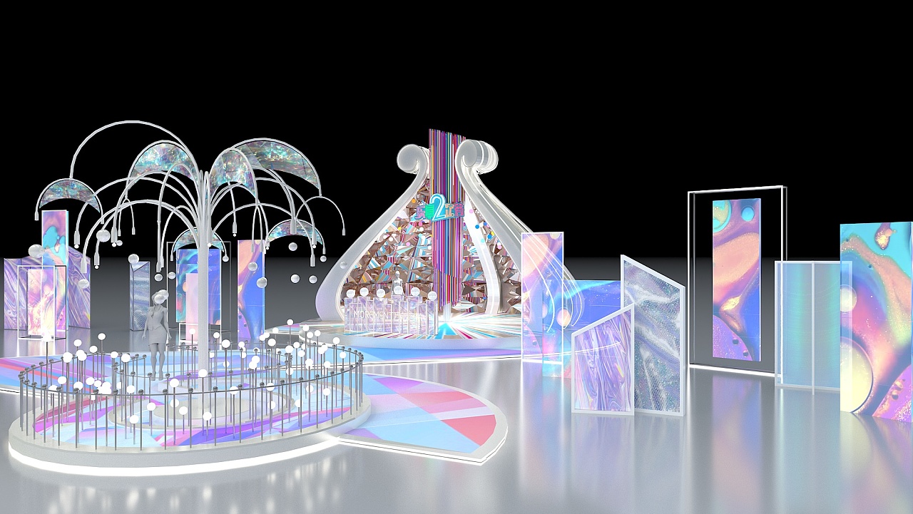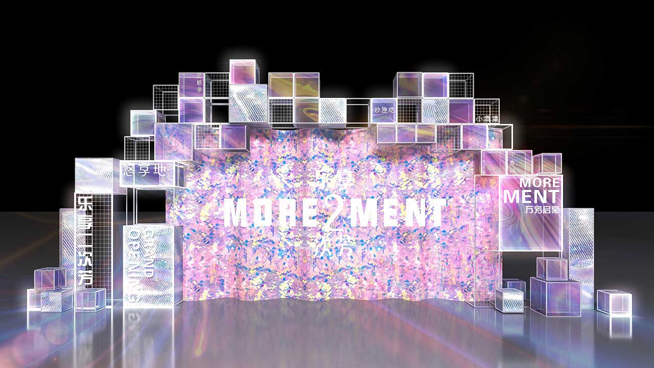 杭州滨江龙湖天街万芳启幕,整体以炫彩棱镜体现万般精彩,大量运用镭射元素布置场景,营造主题氛围,中庭则是在原舞台的基础上增加冰屏,增强场景沉浸感的同时,又不显得太过于封闭,切合主题芳华盛放。