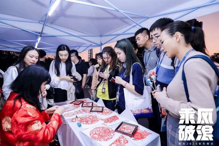 晚会的热闹从外场开始。鹅厂人摩肩接踵,从小吃摊到义卖铺,吃喝玩乐,一网打尽!小小物件所带来的富足的幸福感,就像是过年时熙熙攘攘的集市庙会。