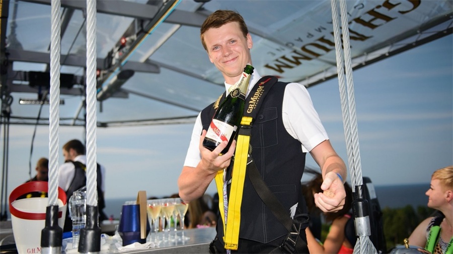 为了在已有和潜在的香槟消费者中提升玛姆红带香槟的知名度,以促进世界闻名的玛姆红带香槟的销售,玛姆红带香槟举办了一场“空中宴会”的推广活动。此次活动是拉脱维亚保乐力加为当地贵宾和媒体举行的午餐活动,活动在尤尔马拉市举行,而这次活动最大的噱头是将活动场地搬到了空中50米的地方举行的宴会,对于促进品牌的销售和知名度都带来了巨大的传播力。同时,为了利用社交媒体的传播,此次活动还进行了现场直播,并通过Twitter和Facebook账号进行了评论。