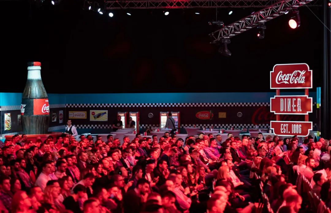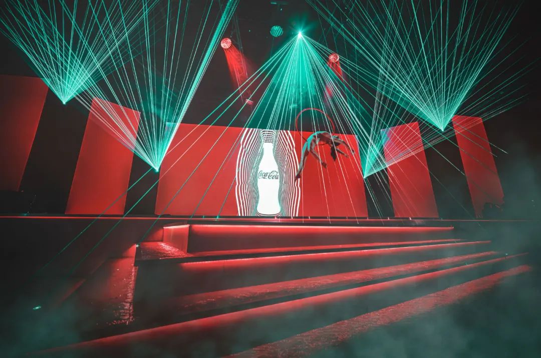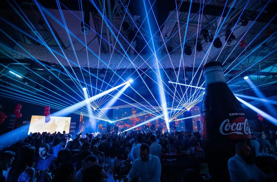 可口可乐HBC是可口可乐公司最大的装瓶厂之一,也是欧洲最大的装瓶厂。今年的可口可乐HBC活动的概念是受到了美国城市的典型特征和可口可乐品牌的价值观的启发,活动突出了直妥妥的美国生活方式,活动现场的各种灯光运用强化了现场沉浸式体验感。