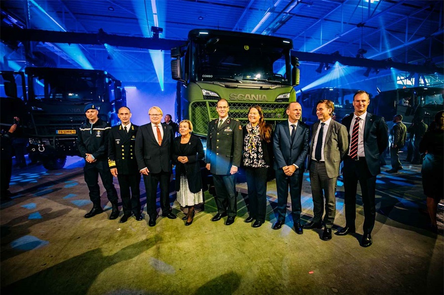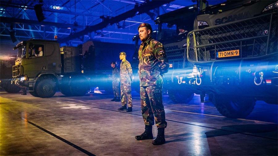 瑞典斯堪尼亚公司与瑞典国防部合作组织了一次隆重的活动,向国防部交付了第一批新的军用卡车,该活动透露出了品牌与国防部合作的荣誉感与骄傲。活动中瑞典国防部长和总统隆重地向斯堪尼亚军用卡车使用者:荷兰武装部队交出了钥匙。
