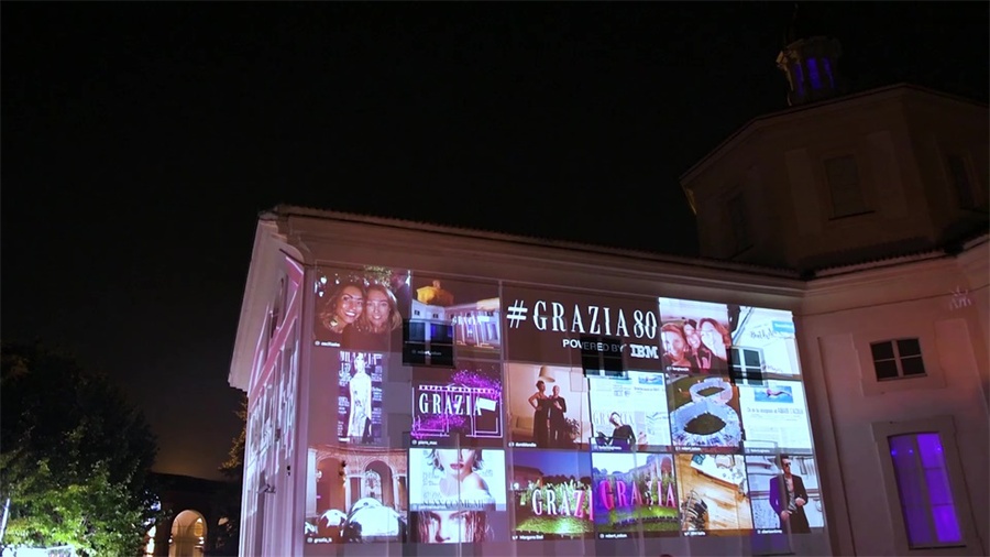 此次时尚杂志《grazia》80周年庆典在米兰隆重举行,活动现场用杂志摆出了数字80的形状,还把现场的情景实时投放到场地的墙上,现场氛围特别时尚大气。