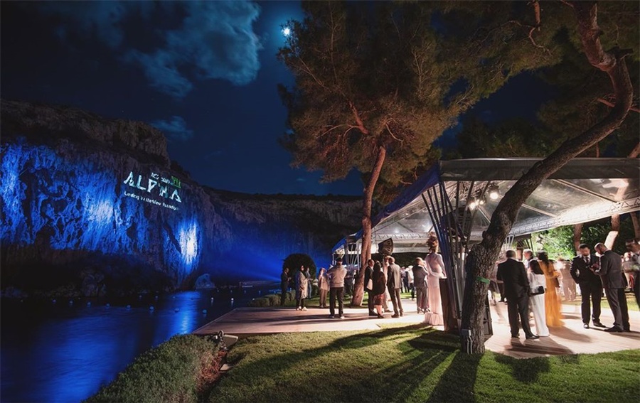 希腊第二大银行阿尔法银行在雅典附近的沃立歌美尼湖举行了一场像电影般的年会活动,此次年会活动利用优美的自然环境,将活动的主现场搭建在湖边,通过在活动中融入希腊的历史文化,向来宾展现阿尔法银行作为希腊本土银行拥有的悠久历史积淀。现场嘉宾能够近距离接触代表古希腊人物的行为艺术,还可以通过在悬崖上的视频映射了解希腊文化罗马帝国的辉煌历史。