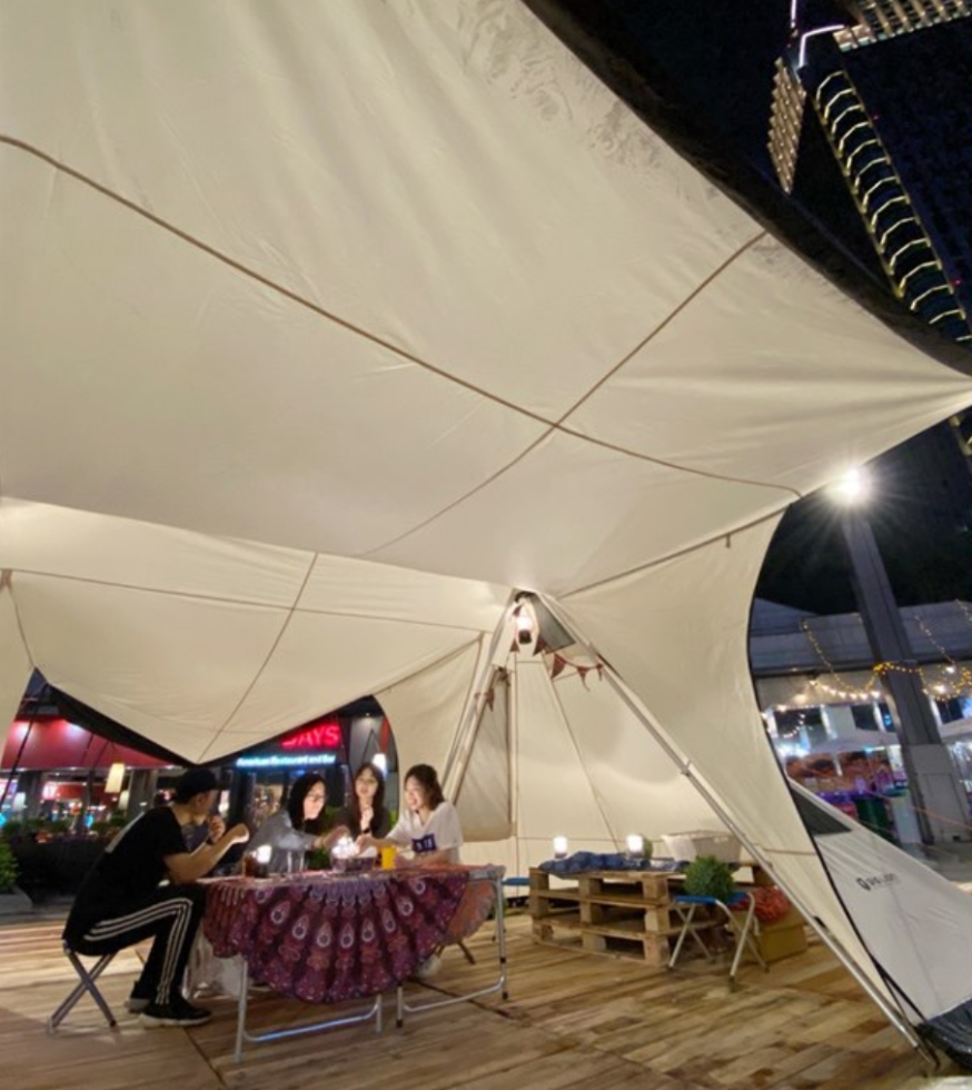 帐篷露营、野营活动一直是许多人热爱的户外活动之一,除了能够亲近大自然更能享受欧美风格的野营氛围,在台北信义区就能浪漫野营!统一时代百货打造——夜幕野营嘉年华,能够在傍晚时分一边享受微风,一边在帐篷内品尝美食,堪称是解封之后最浪漫的户外活动,还能吃到时下最夯“帐篷私厨料理”。