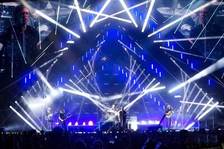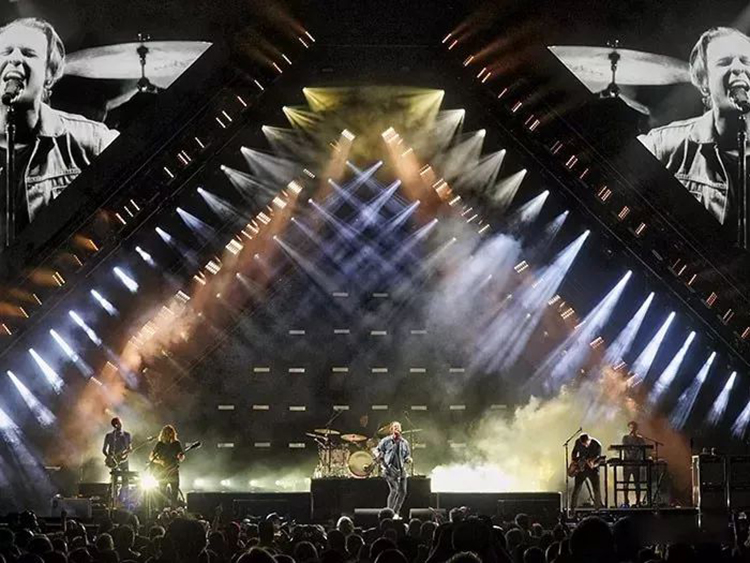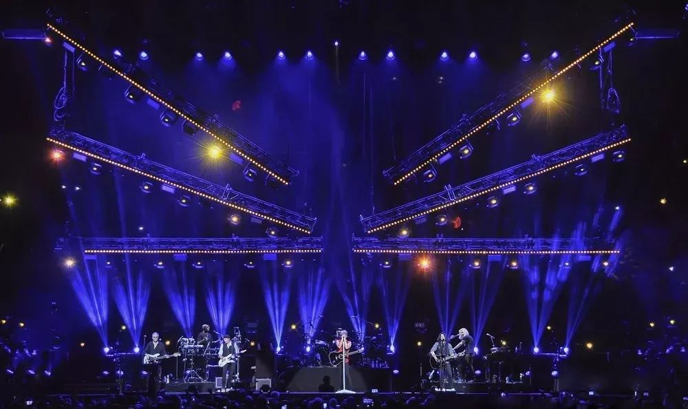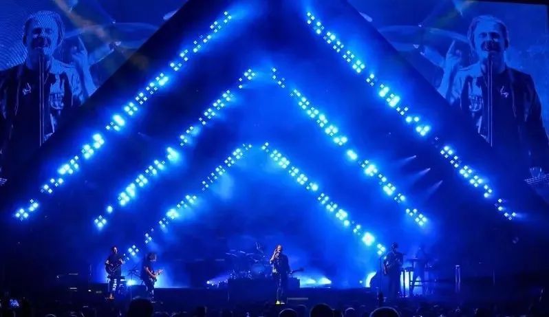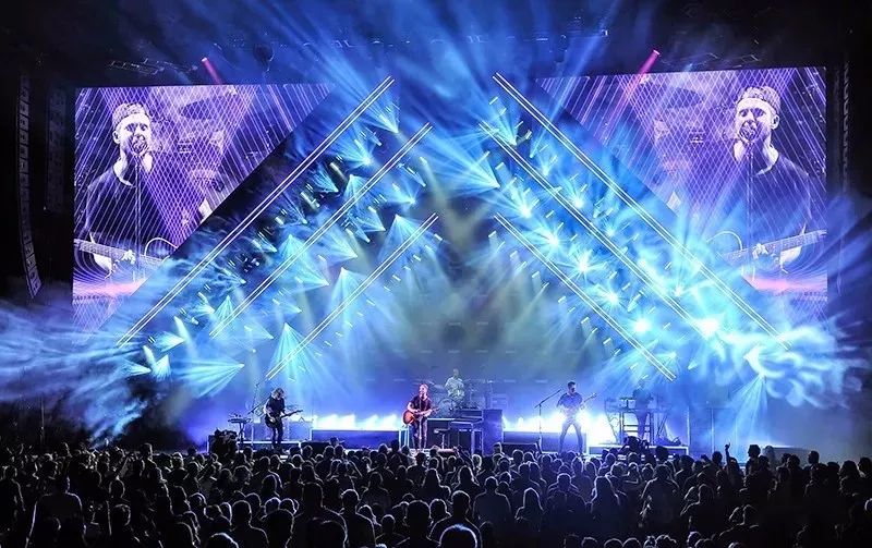灯光设计师Butts表示,我们为OneRepublic创意设计了一个“非常干净,精致,造型有限的建筑外观”。视频扮演配角有两个三角形屏幕框架,这个照明桁架被做成了透视状的金字塔形状。“这样的固定装置以及悬挂桁架的方式使现场看起来更加可观。”