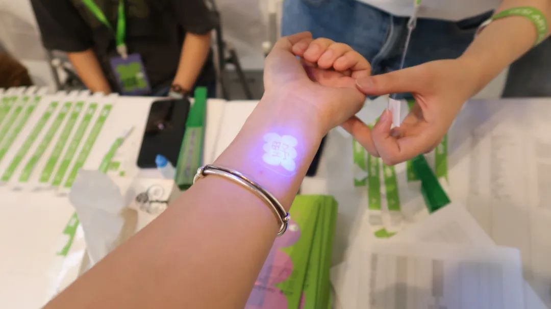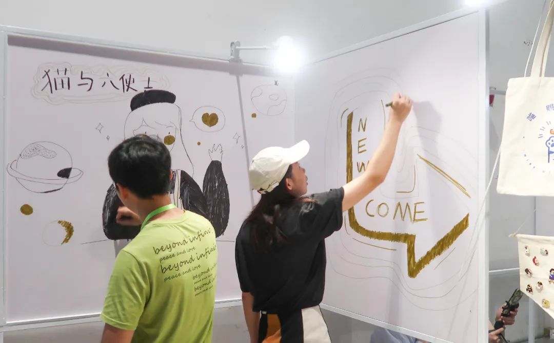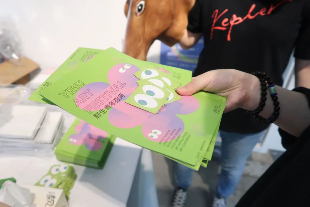 入场,每人手上都会盖上一个隐形戳,只有特殊灯光下才能看到。除此之外,还能得到一份贴纸,把这个贴纸贴在喜欢的艺术家展位上,帮助他们获得最后的神秘礼物。