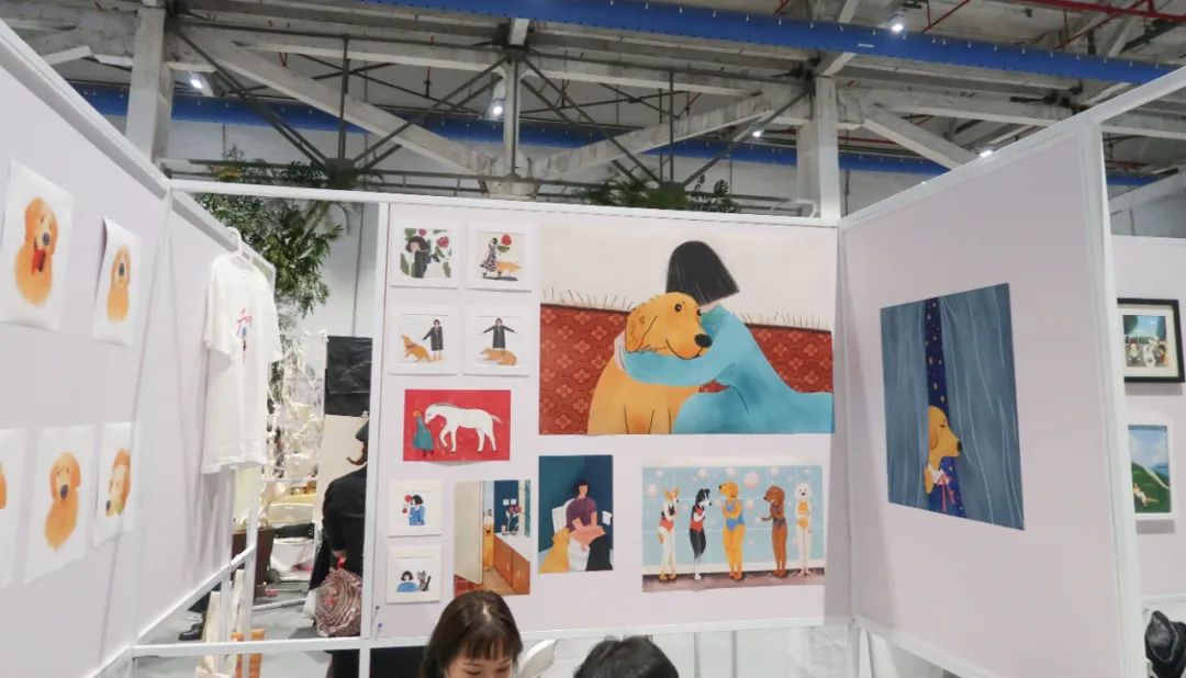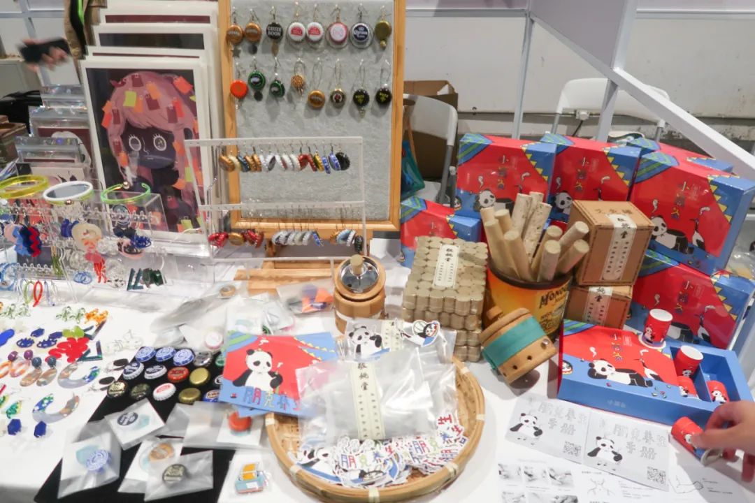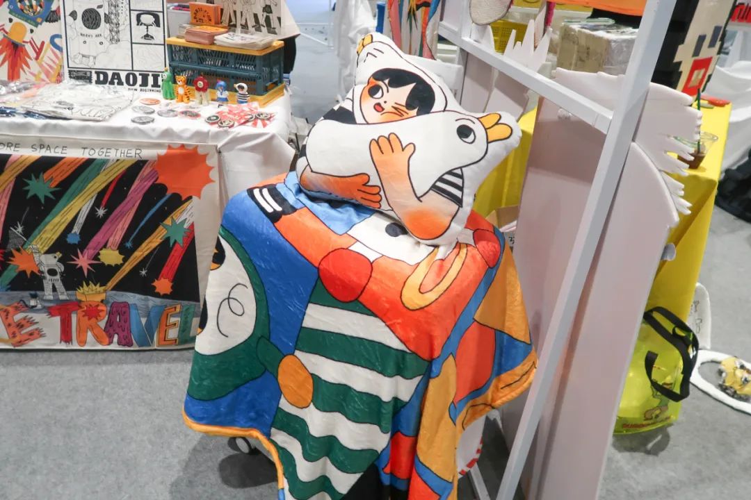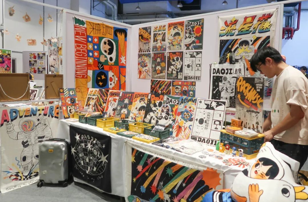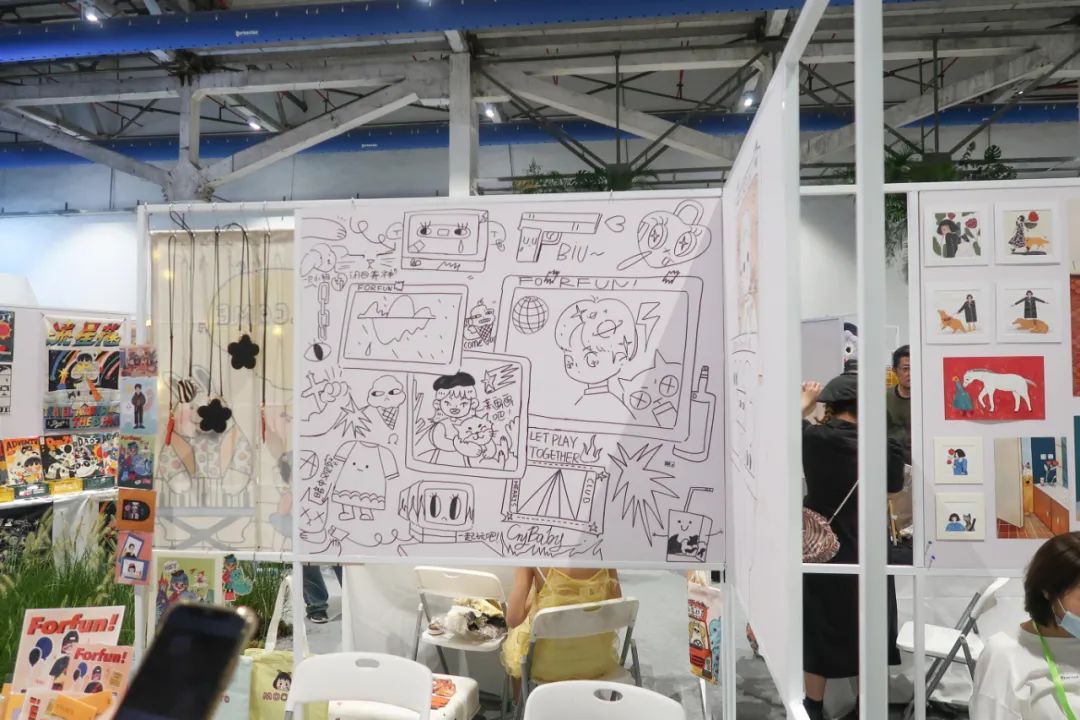 更有趣的是,你能发现每个展位背后有两块白色展板,可供艺术家自行 DIY。我们看着有挂挂布的,有涂鸦的,有贴明信片的,更有直接布置成野生旅游打卡景点。