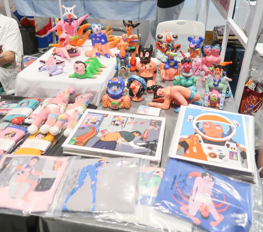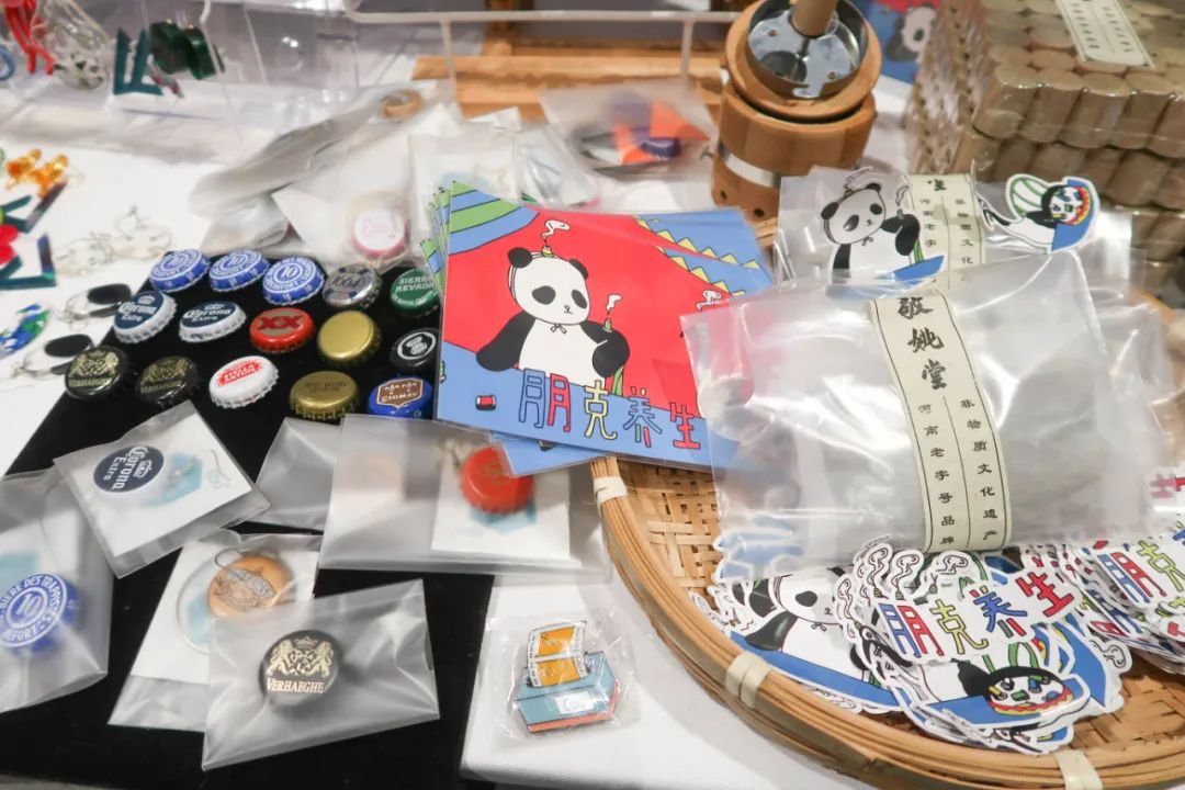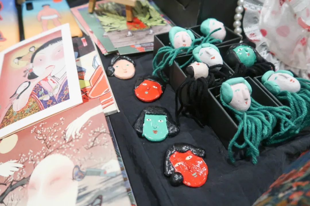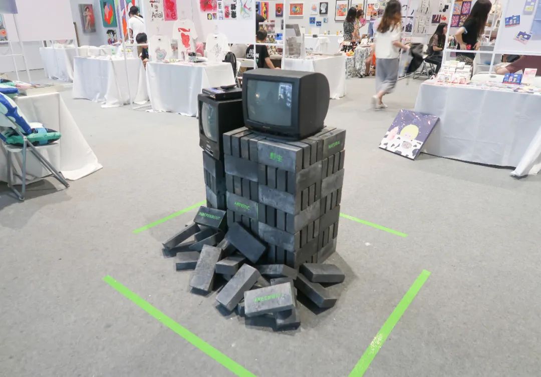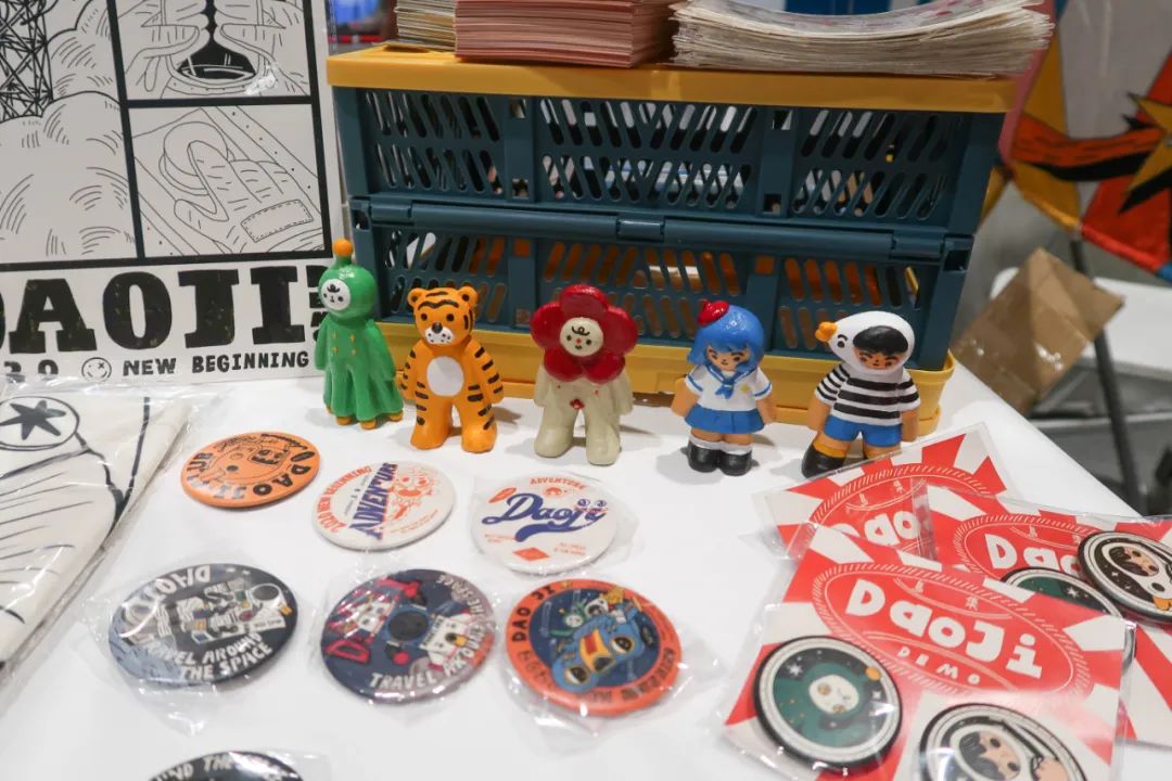 更有趣的是,你能发现每个展位背后有两块白色展板,可供艺术家自行 DIY。我们看着有挂挂布的,有涂鸦的,有贴明信片的,更有直接布置成野生旅游打卡景点。