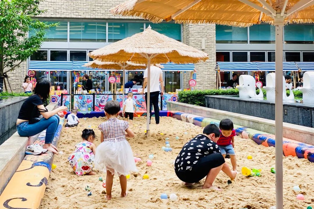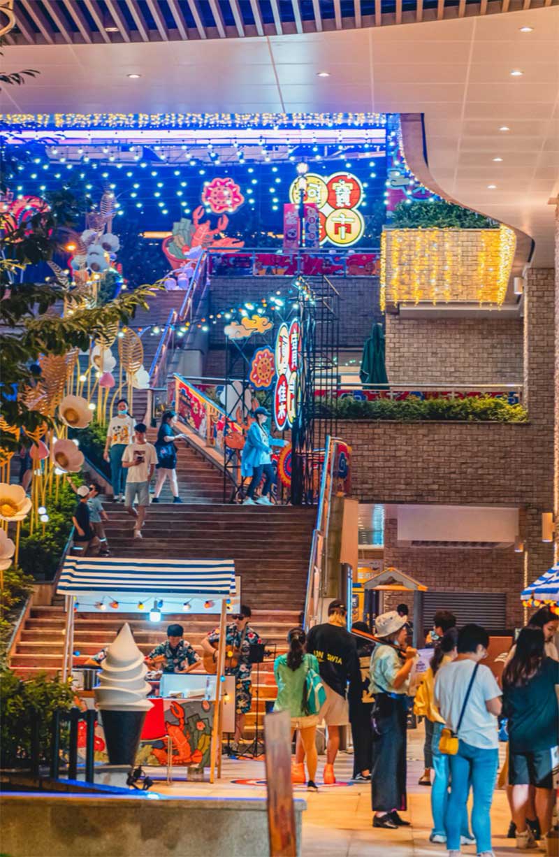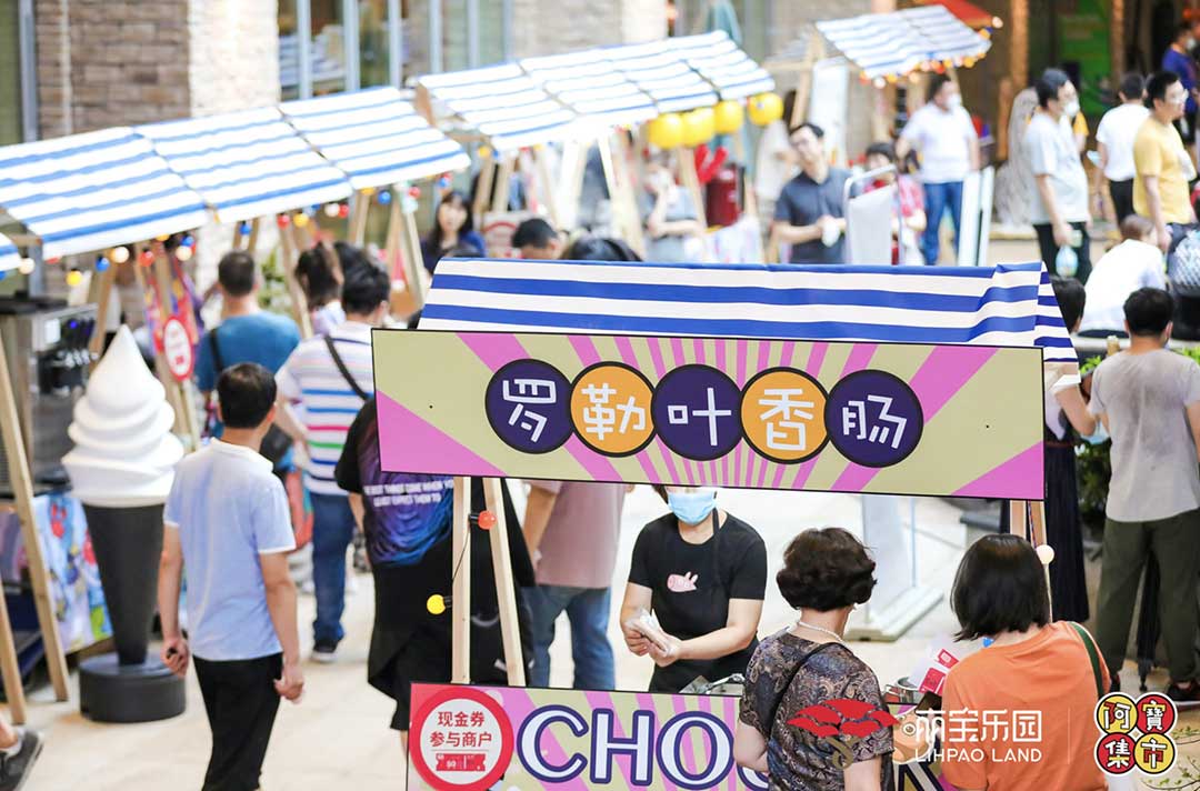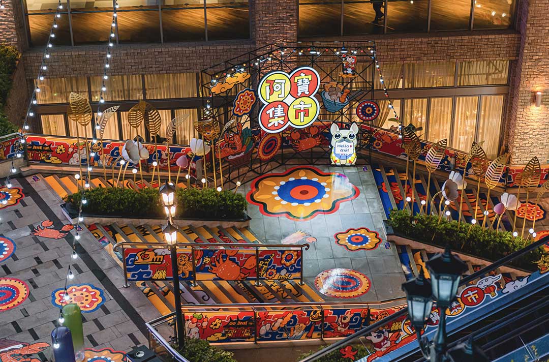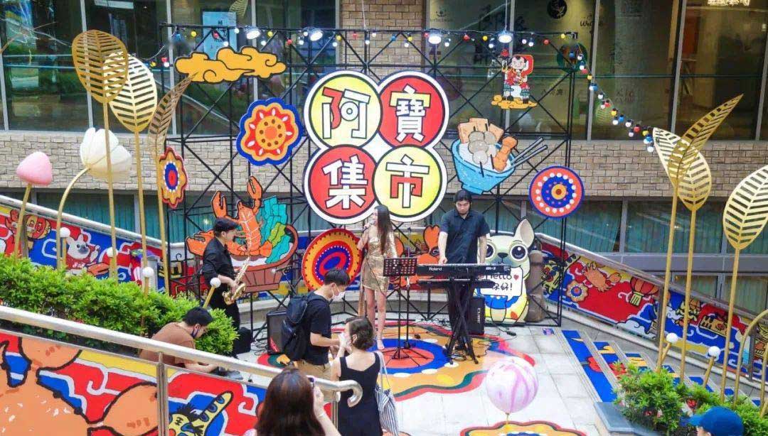 阿宝集市通过元素与材质变幻出各种新颖组合形成复古与摩登的碰撞,文化与打卡景的融合,形成有别于其他项目、领异标新的视觉美学呈现,并巧妙利用丽宝乐园宽阔的动线优势,以斑斓色彩为引,借助集市布局升级,将功能空间有机切割,既有以特色商家为主导的美食,也有引自台湾本土的文创,更有魔都知名高校书店大夏书店的精致文创,充分展示商户品牌特色,亦有以家庭为核心,集合亲子互动、拍照打卡、休憩交流的二手跳蚤集市×创意手工活动集市空间,让周边社群在这里收获一个可闲坐、可社交、可娱乐的公共集市平台,成为超高颜值、打卡圣地,也是今夏魔都超具特色的海滨集市。