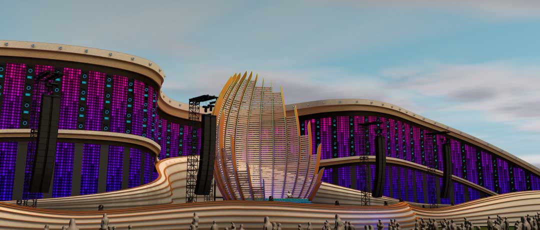 每年,都有无数的Raver们带着爱与信仰,来到电子音乐的天空下,与好友们一同放肆沉浸在节奏与律动之中。除了欢快充满能量的音乐之外,音乐节的舞台更是承载了人们心中对于美与梦幻的美好想象。这次Electronic Daisy Festival(雏菊嘉年华)舞台延续了2016,2017以及2018年的舞台设计语言,通过巧妙利用特殊材料以及色彩艺术,大量使用灯光和LED技术,并融入草原和牧场相关元素,为粉丝们打造出犹如行走在电子音乐的浩瀚宇宙之中的超魔幻感受。位于舞台正中的花朵则带给观者强烈冲击感,仿佛散发着神秘花香,吸引着八方粉丝们向着舞台中心靠近,而这朵花也是联结现实与虚拟世界的标志,恍惚之间粉丝们已然在音乐世界中徜徉已久。