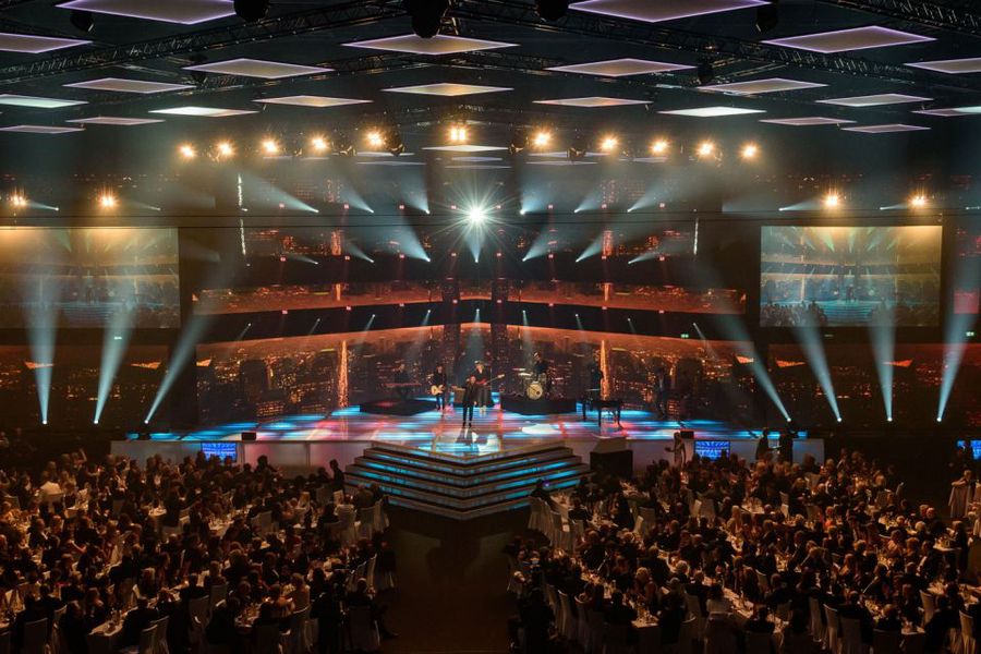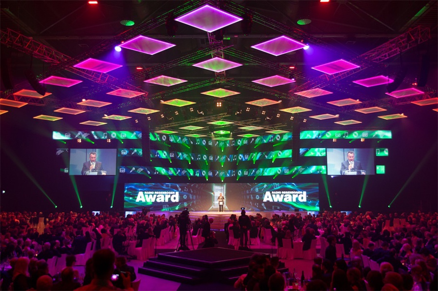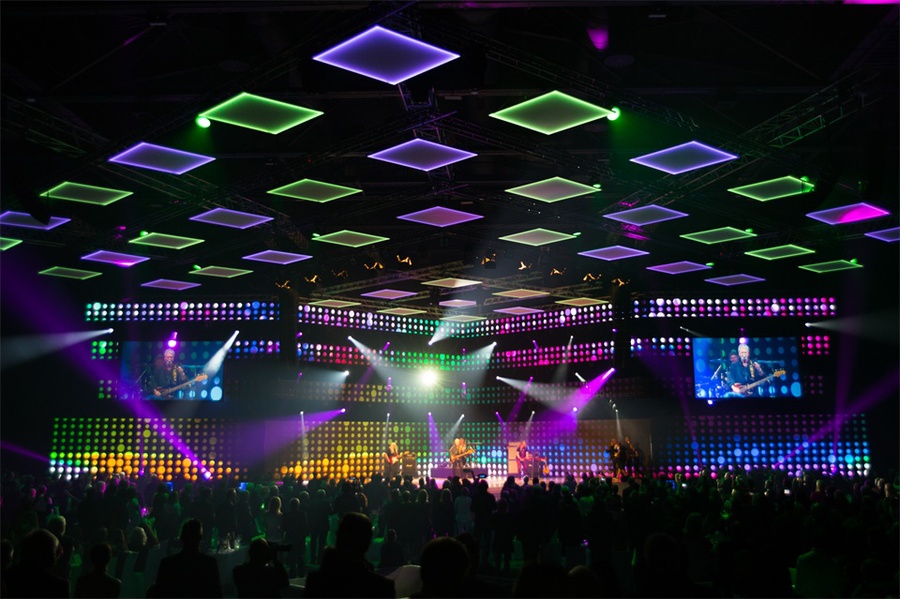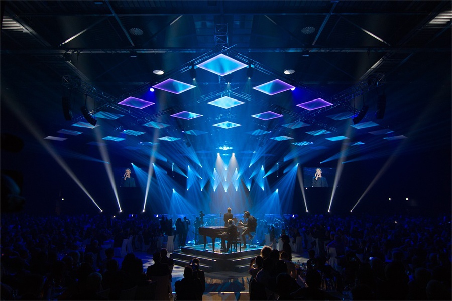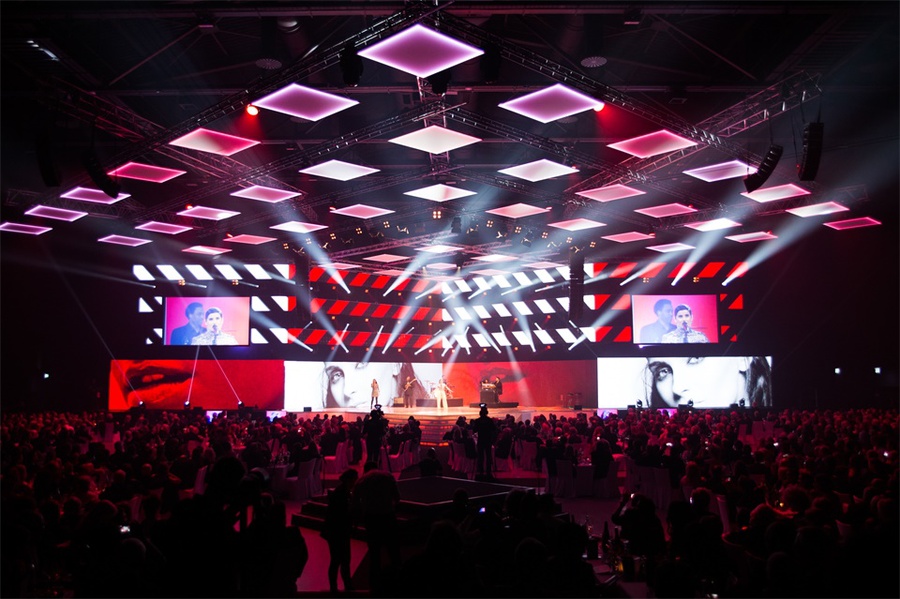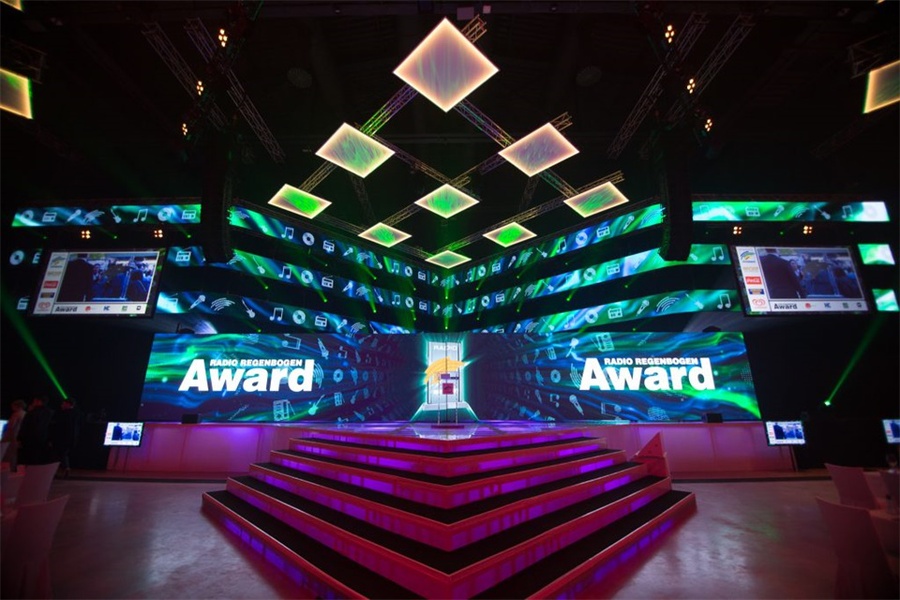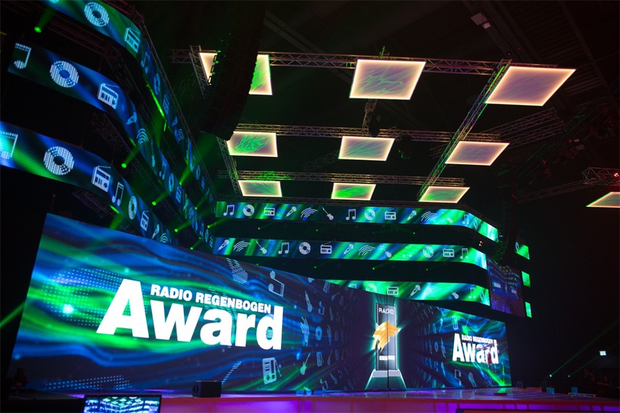 德国彩虹广播奖的舞台再次震撼了在场的嘉宾。在舞台上,LED后壁被分成条状,在40个多功能的Vari-Lite VL4000摇头灯确保了强大的照明效果,40个悬挂式LED灯砖令人印象深刻。