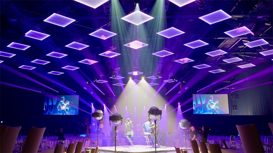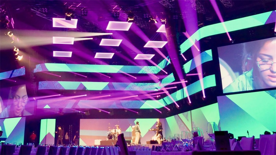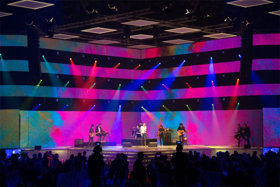 活动现场使用了Watchout6媒体服务器为艺术家的表演和224m²LED墙提供了播放与编辑服务,并通过该服务器链接了舞台上的LED墙和舞台上方悬挂的LED灯条装置。