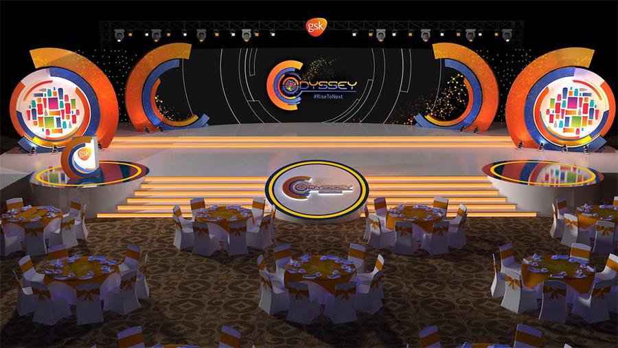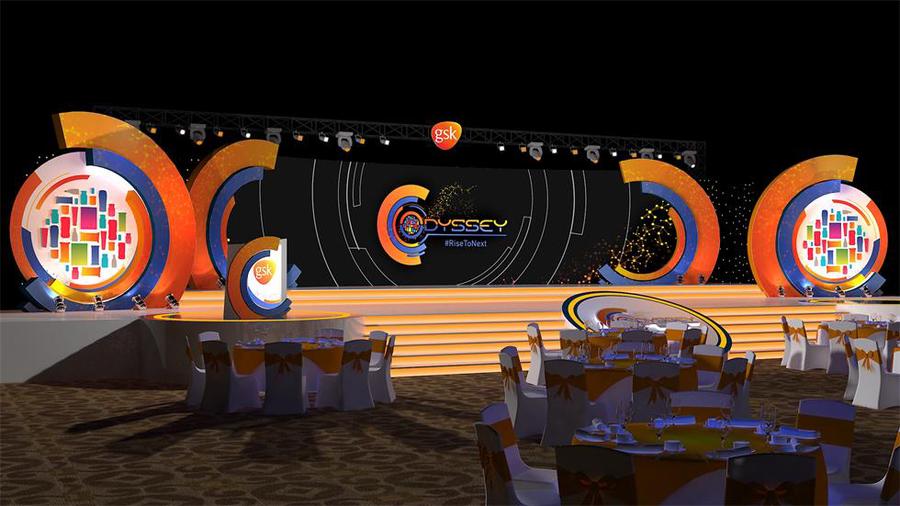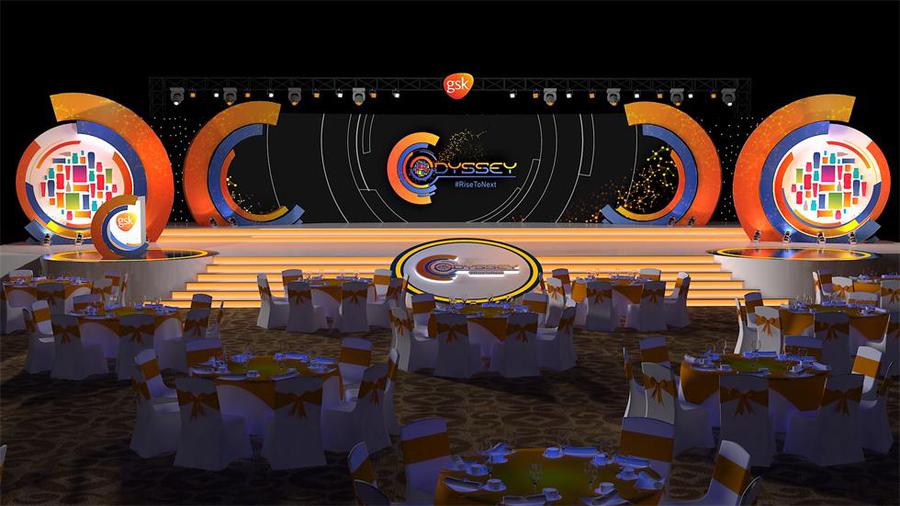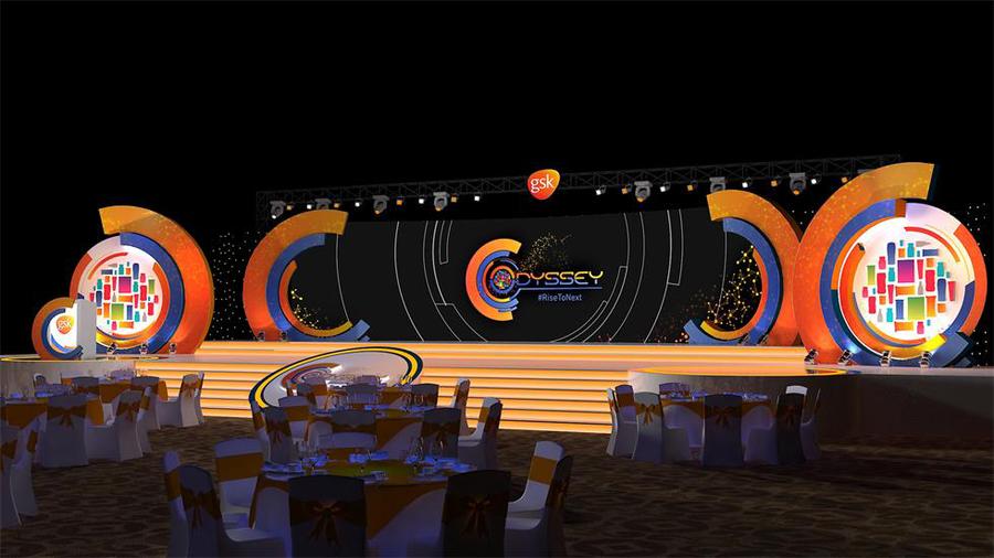此次葛兰素史克2019年会策划上,整体的主色调采用logo的橙色为主色调,视觉效果也更阳光健康,呼应了葛兰素史克的公司属性。其次在舞美设计上,以大小不同的C为设计元素,造型有趣的同时也体现了其企业文化对一个企业的重要性。