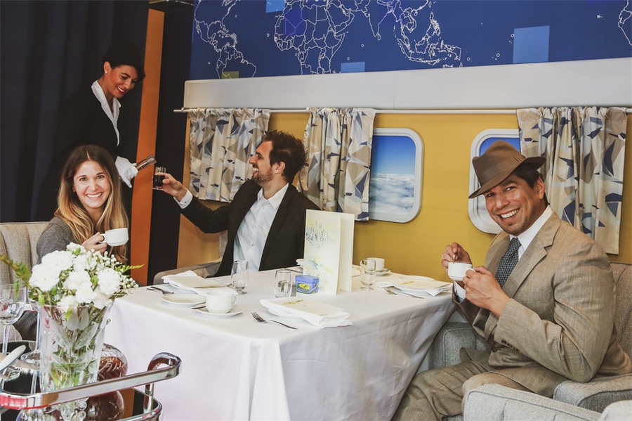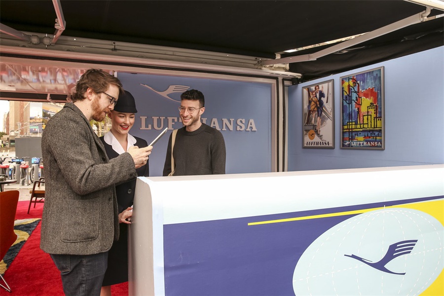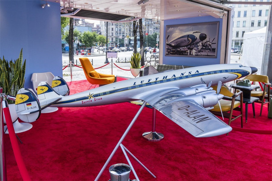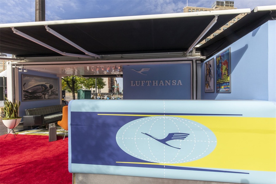 活动在位于纽约翠贝卡区的杜阿尔特广场公园,设计搭建了黄金时代的飞行体验,重现了航空公司标志性的“超级康妮”飞机参议员机舱服务(汉莎航空以前称之为头等舱)以及头等舱候机室和安检区域,所有区域均装饰有当年的原始物件。