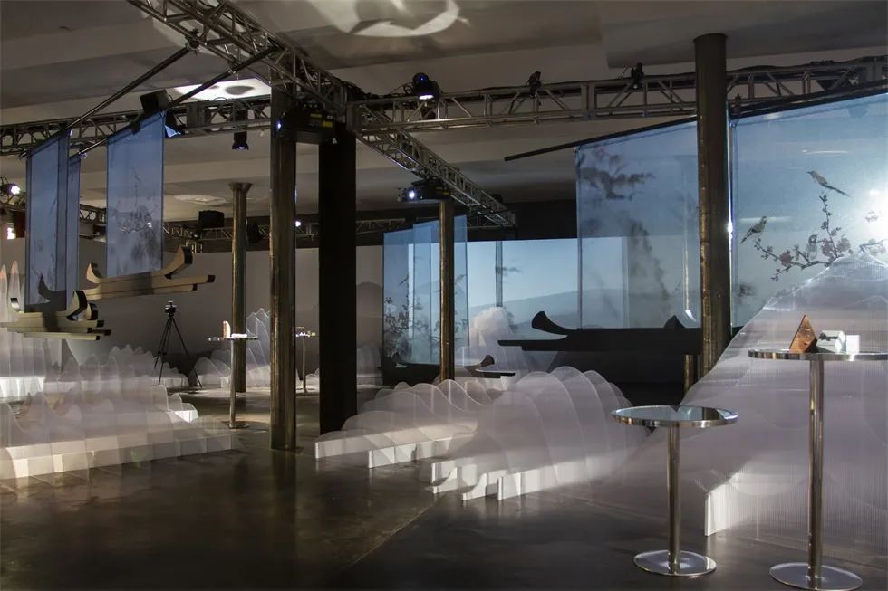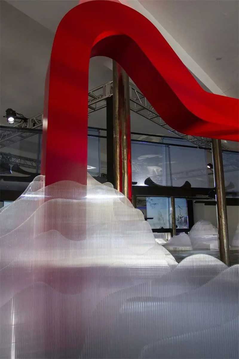 在为期三天的SoHoSoHo快闪零售激活活动中,活动将阿里巴巴旗下的天猫商城提升到了新的高度。穿过标志性的天猫LOGO入口进入现场——其LOGO是对品牌名称中的字母“M”进行结构性调整——客人在这里体验了技术和自然的融合:发光的山脉地形层,发光的山脉地形层,透明的投影屏幕,受中国传统设计启发的产品展示,还有模拟的舒缓的鸟叫声。