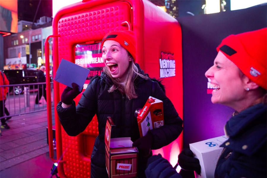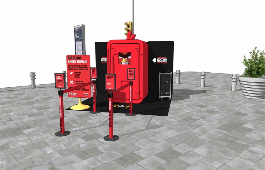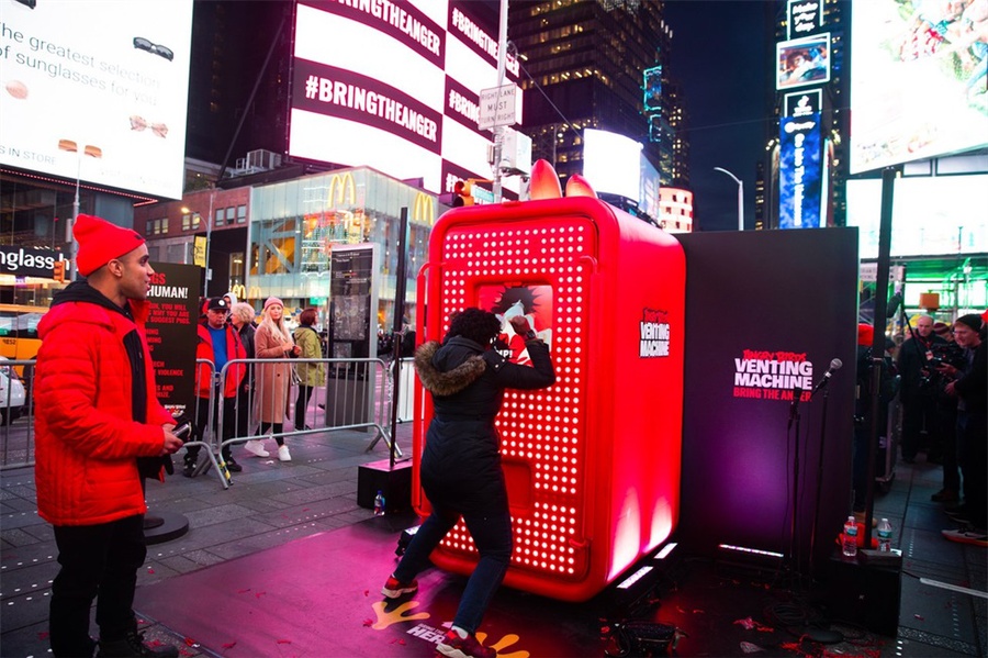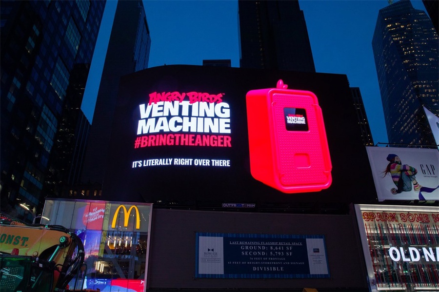 为了庆祝《愤怒的小鸟》10周年生日,同时发布最新游戏和商品,并激励粉丝群,活动利用游戏传达的“愤怒”文化发起了一场活动,来激起愤怒并获取礼物。猎人角公司为时代广场举行的活动制作了一台完美的“出气”机,同时完美捕捉了参与者的实时视频,并同步到广场上的大屏幕视频上。当一名参与者发泄了自己的愤怒后,发泄机器就会分析他们的愤怒情绪,然后从几十种不同的奖品中选出一种。