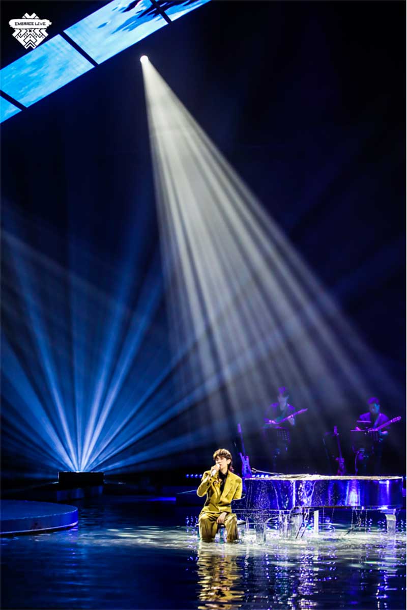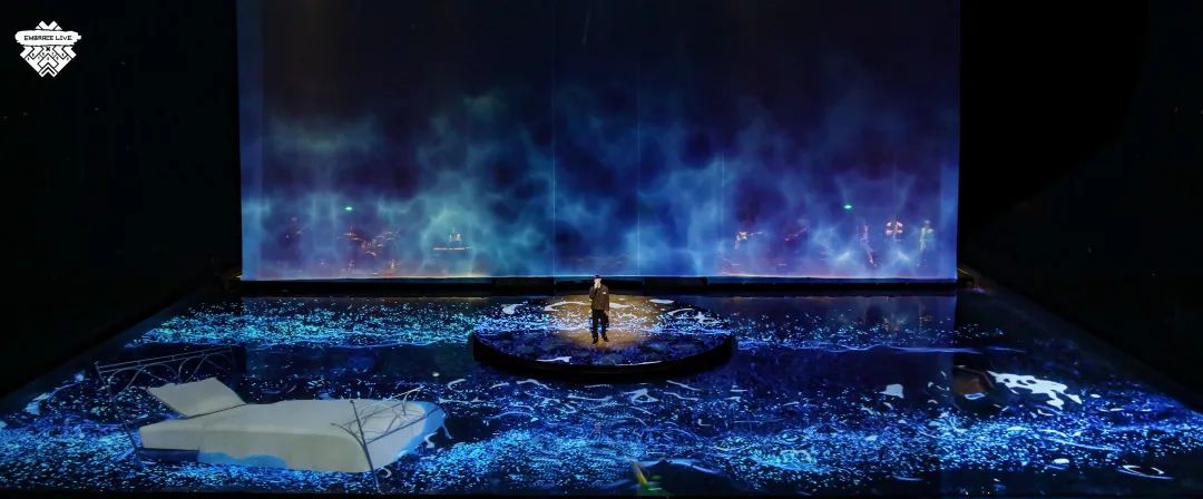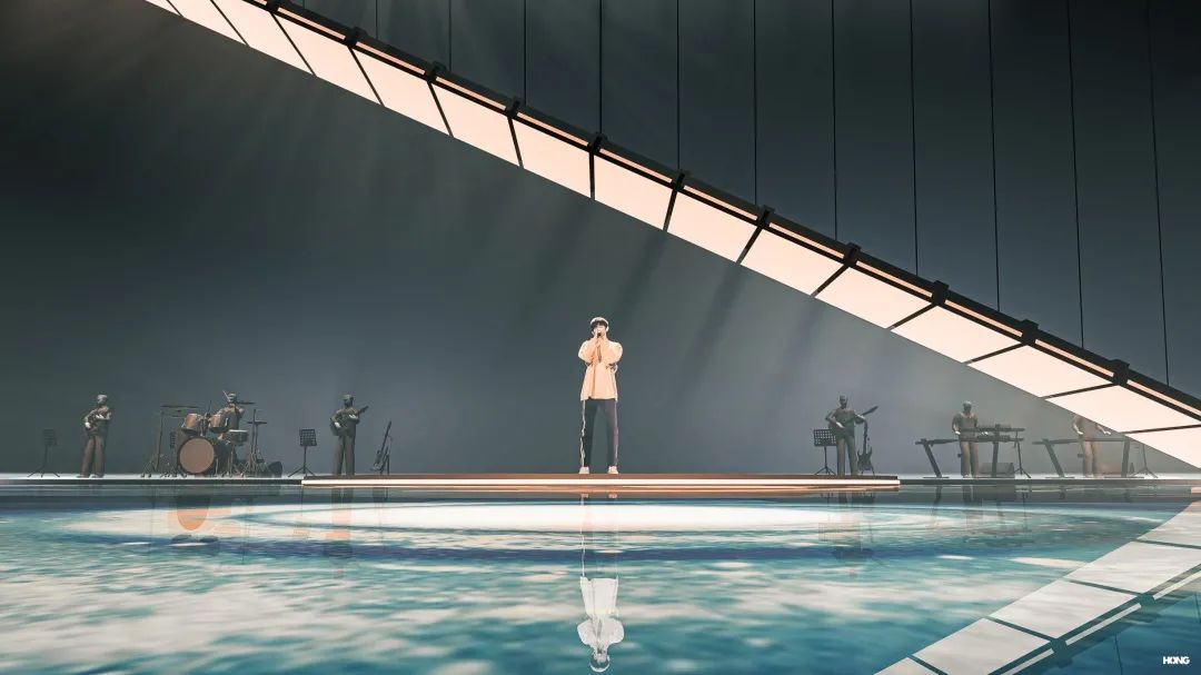 这次的舞美设计不同于传统的搭台和形式,线上演唱会和线下的区别在于线下是做观众肉眼能看到的设计。而线上可以做一些微观涉及镜头语言的细节,比如水下也有摄像机,它可以捕抓平常看不到的细节,带来不一样的镜头内容。