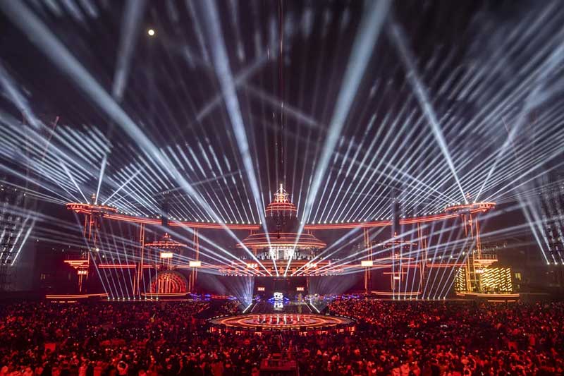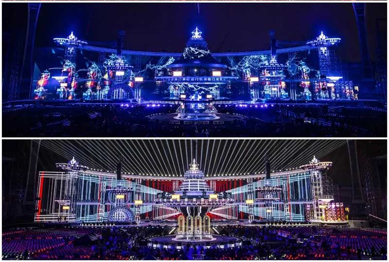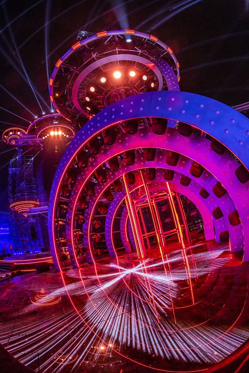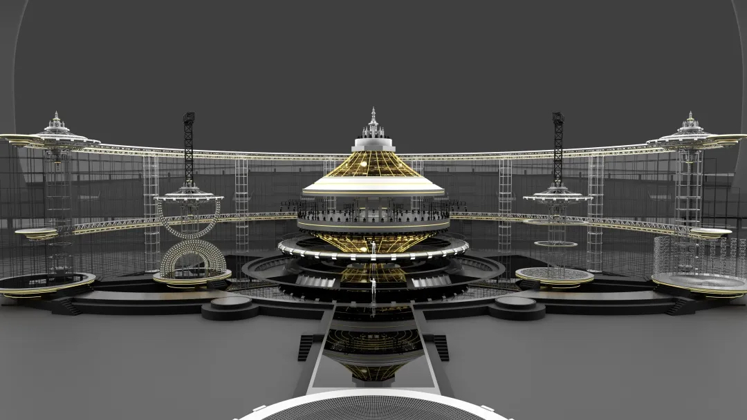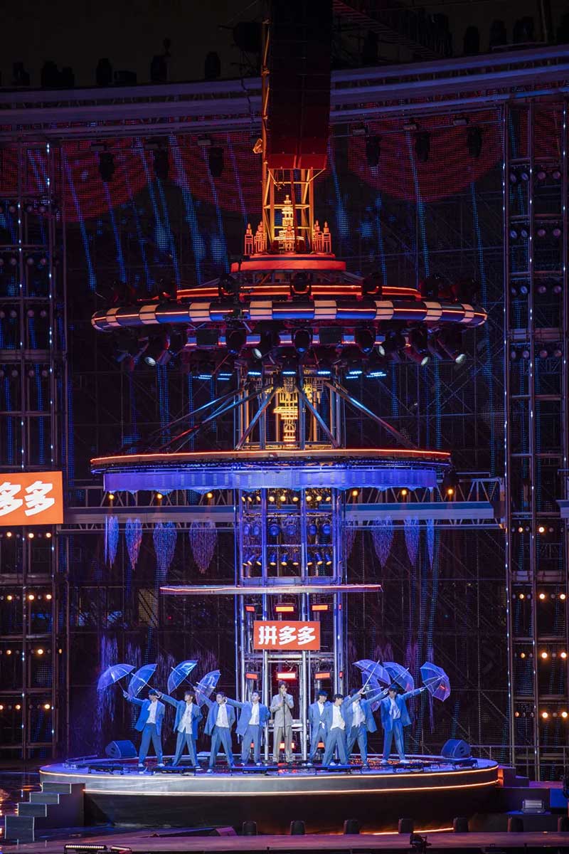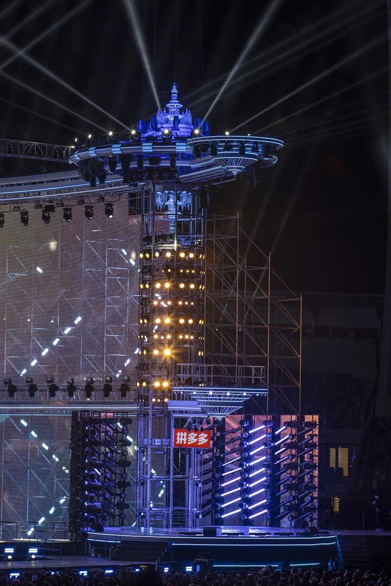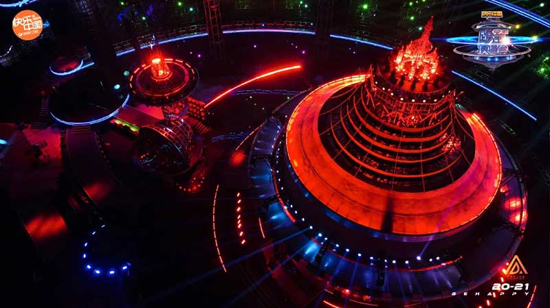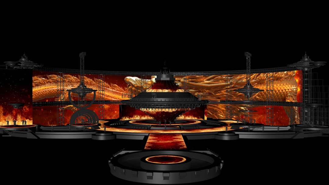 湖南卫视2020—2021跨年演唱会再次在海口市五源体育馆震撼开唱,本次演唱会以“青春同心 乘风破浪”为主题,继续将“青春”作为源动力,用音乐的放肆乘风航行,展现团结奋斗的力量,共谱2021全民心声。本次的设计方案也聚焦于“科技”与“未来”,将以缔造一座“未来之城”为愿景,通过极具空间质感及机械美感的符号意象,让舞台化身为永远向前的“时光机”。