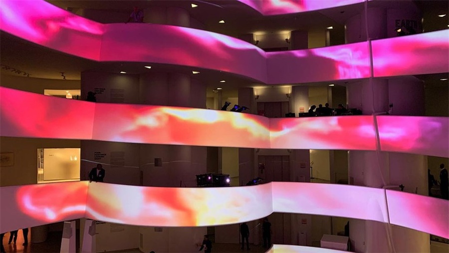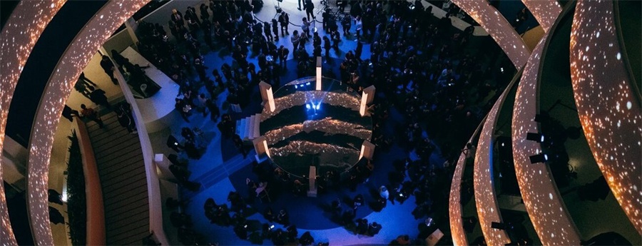 庆祝活动以派对拉开序幕,法国音乐家克里斯汀和皇后乐队为宾客们献上了电音表演,音乐家卡洛琳·波拉切克为宾客们献上了歌曲,DJ为客人们准备了各种风格的舞曲。由于今年是古根海姆国际庆典首次在博物馆著名的圆形大厅中使用了投影映射,这使得当天的活动现场更加特别。为此,活动制作了3个不同的故事来追溯博物馆的历史,并向迪奥及其神奇的时尚世界致敬。
