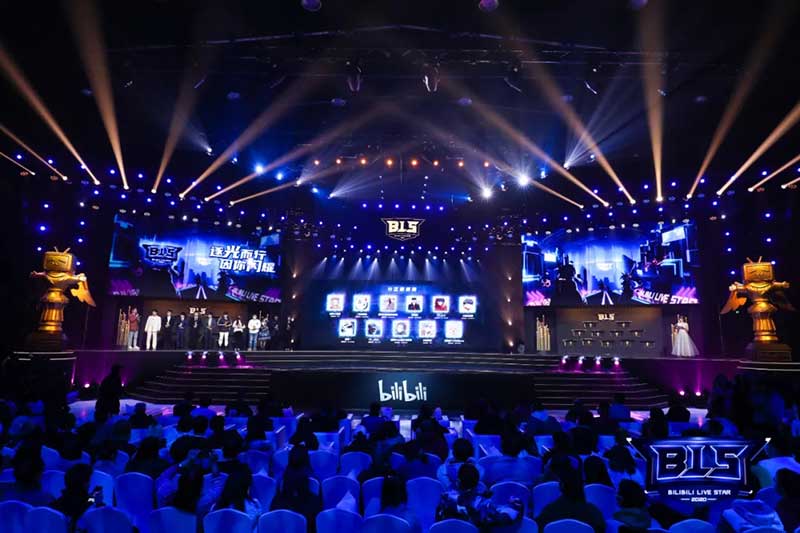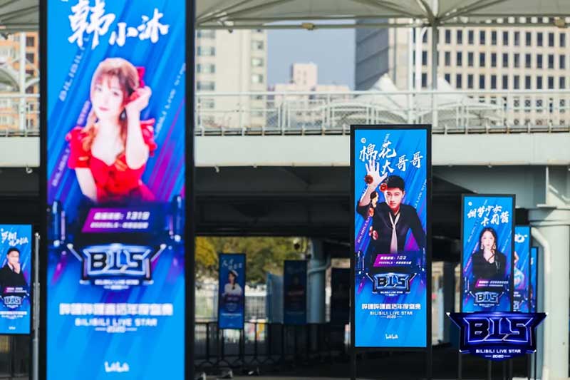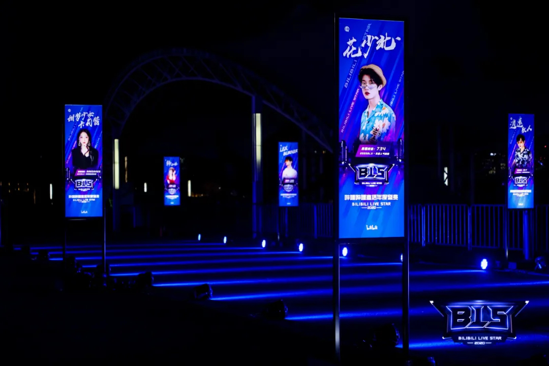 2020哔哩哔哩直播年度盛典在上海外滩国际电竞文化中心举行。以「逐光而行,因你闪耀」为关键词,聚焦了2020年度里B站所有耀眼的奖项。白天能让你看到更多物料细节,道旗、立牌等设计都有当晚的获奖嘉宾的海报身影。这是对内容用户的高度认可和尊重。夜幕之下,灯光与黑场的氛围交映,出片效果更好了。