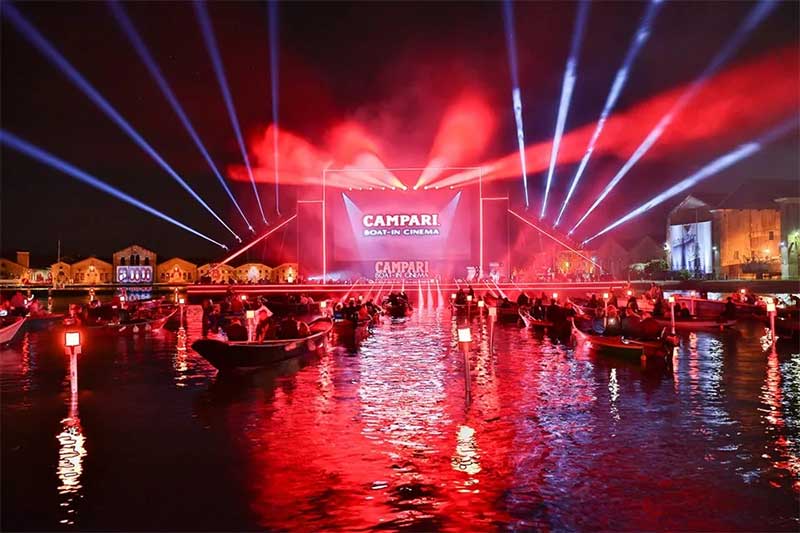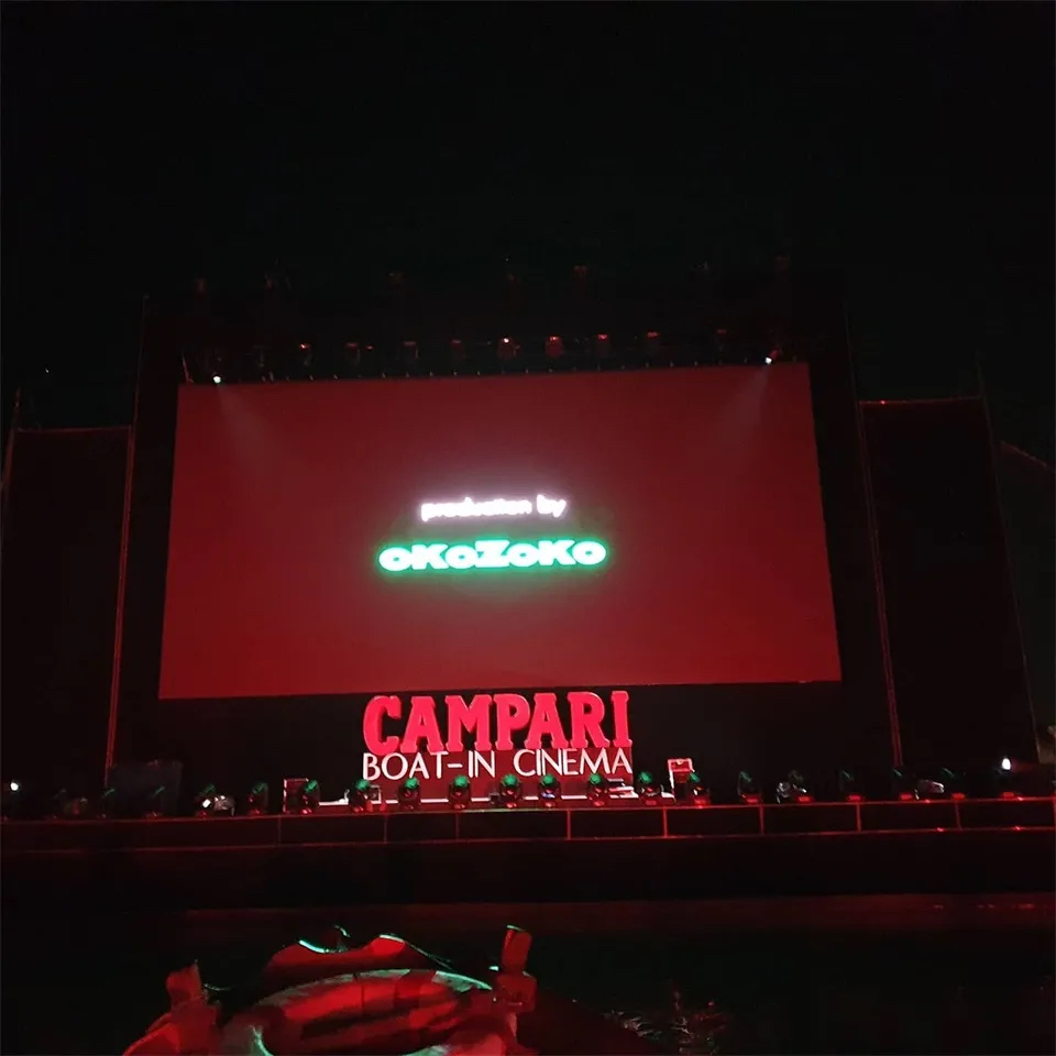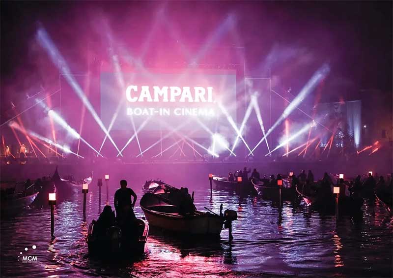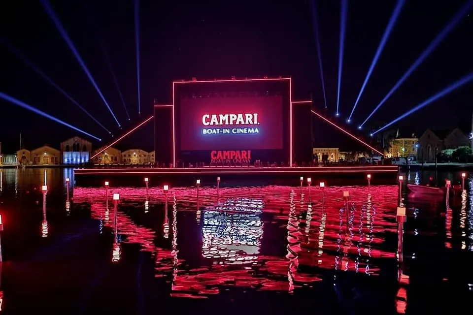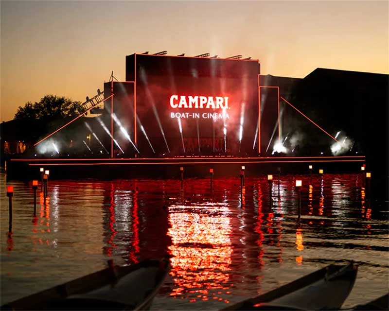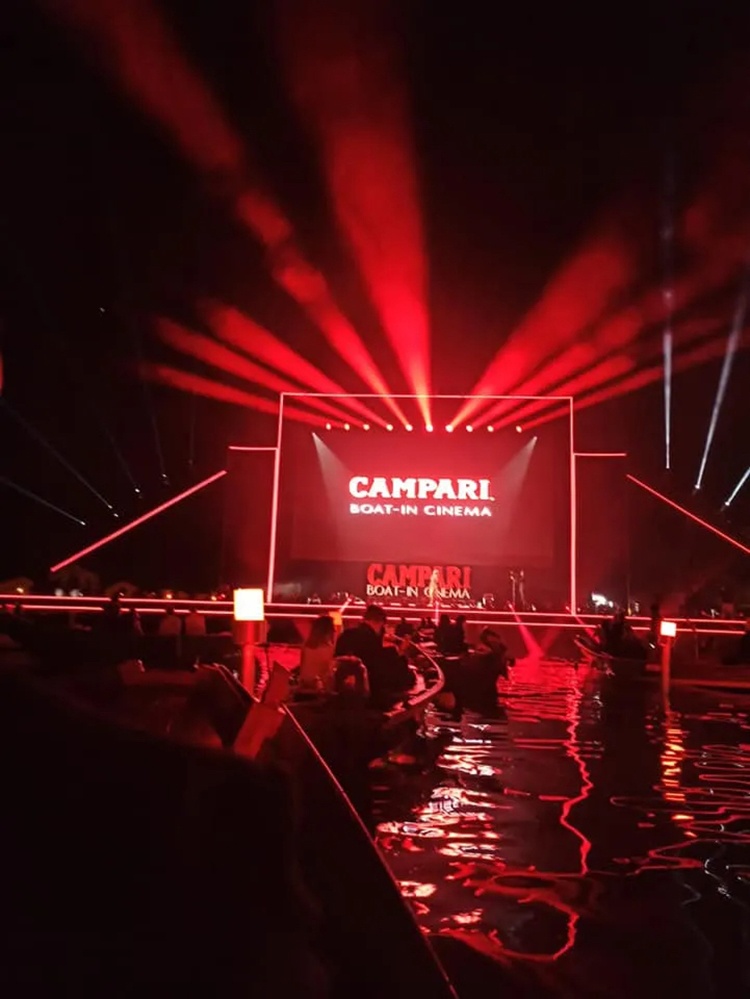 电影是金巴利品牌历史的一部分:这种纽带激发了一种特殊的活动,一方面代表了品牌文化中充满激情的创造力,另一方面它的形式是一个梦幻般的水上电影院的世界。无论是在搭建制作的复杂性和有效的现场交流上,它都是一种独特的活动形式。