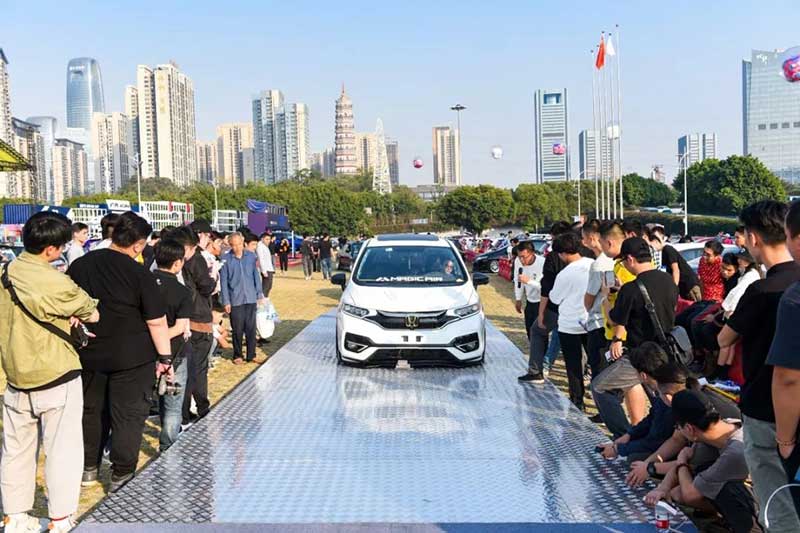 “潮改车专区”上, 126个潮改车位“座无虚席”,这里汇聚了从全国各地“赴约而来”的广汽本田个性潮改车辆,并设置潮改车震撼巡游、官方改装件展示等环节,为改装爱好者带来一场前所未有的盛会。此区域最激动人心的环节当属潮改车互动评选,参赛车辆经过层层比拼,为角逐“潮改人气王”尽展风采。