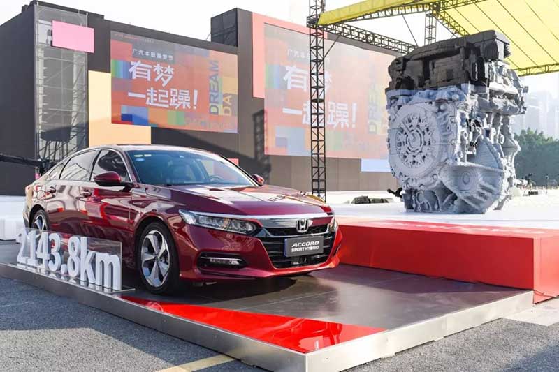除了为各位粉丝设计了各项黑科技体验区,舞台区更有一个巨型发动机模型,该发动机模型的原型来自第十代雅阁锐·混动上搭载的第三代i-MMD混动系统,展现广汽本田对技术梦想的追求!