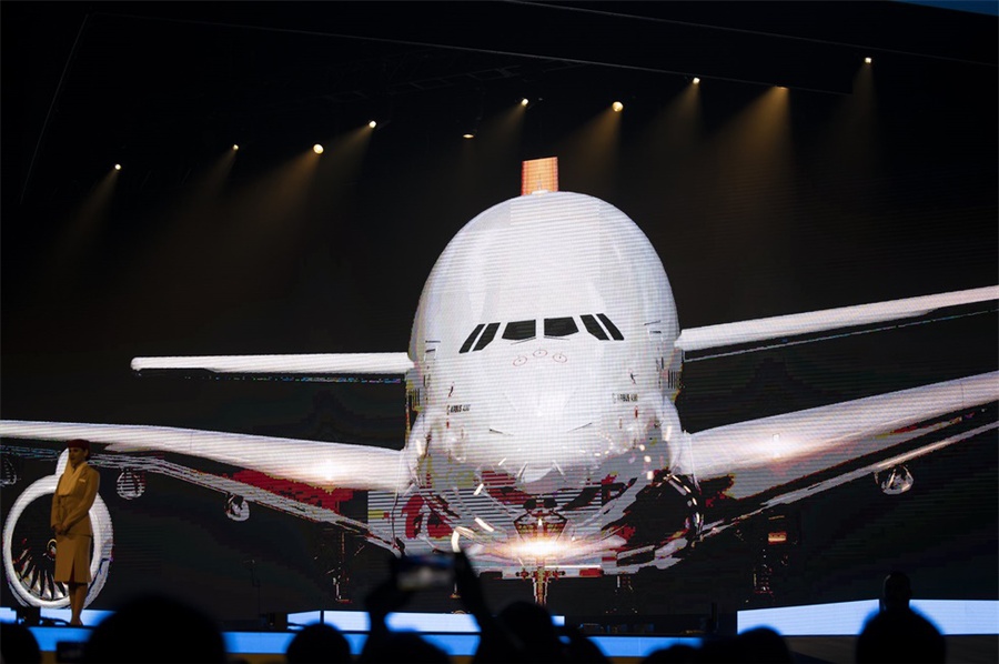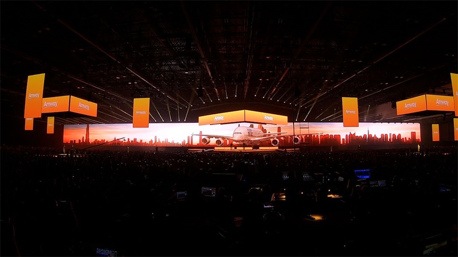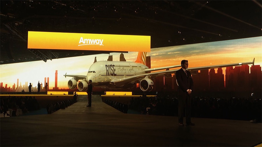 阿联酋航空机组人员安全简报:在巨大的LED屏幕上出现了专属的安利A380客机,在3名宇航员的指导下,在10000名观众的头顶上起飞,传达了团队中“信任”的力量。在大屏幕上,在理查德·布兰森爵士带领下,太空成为了其事业版图新的可能,这是一个活生生的例子,证明只要你能想到,你就能做到。