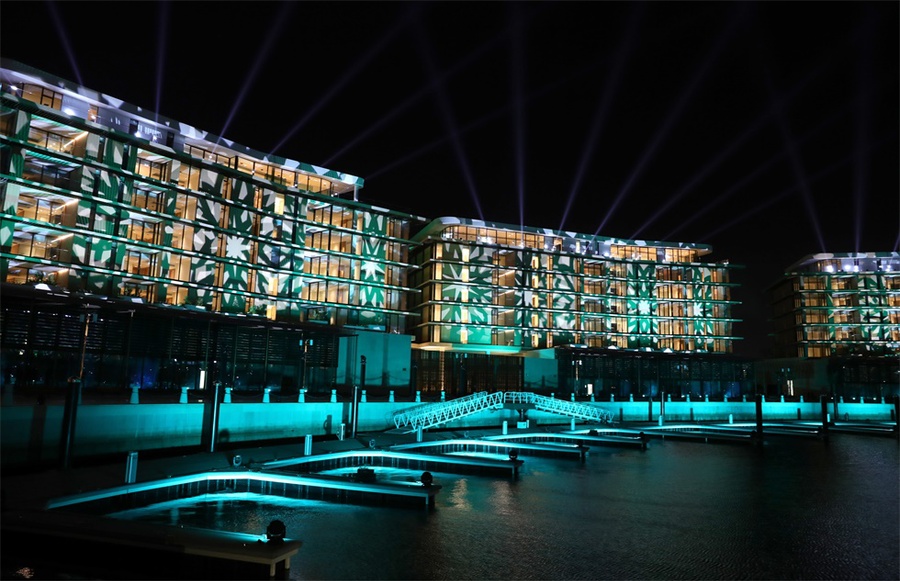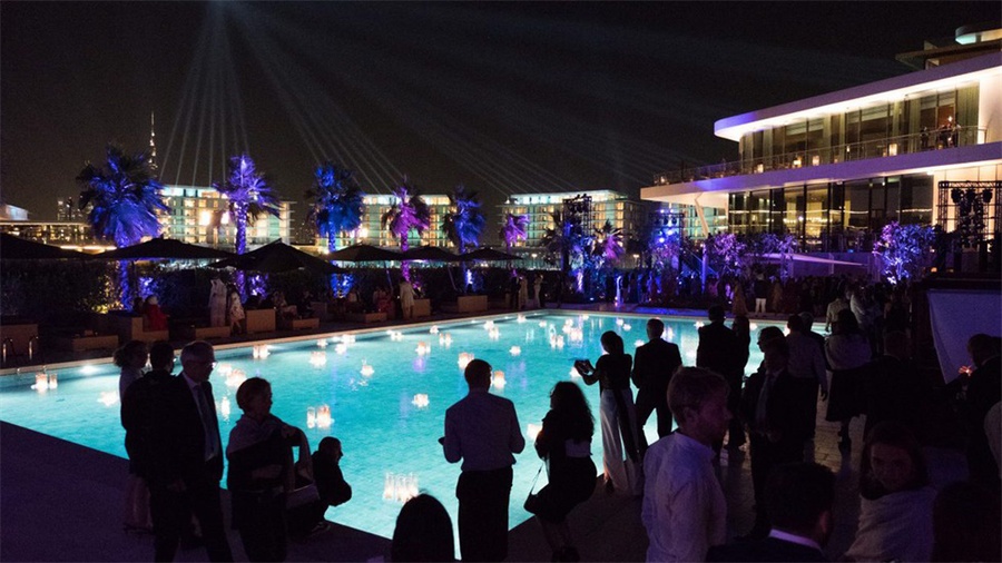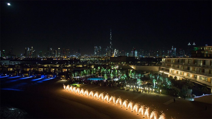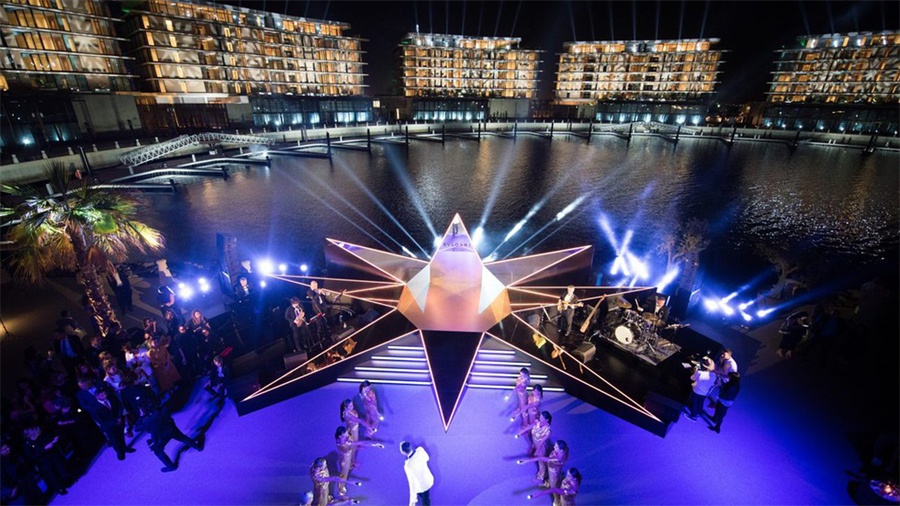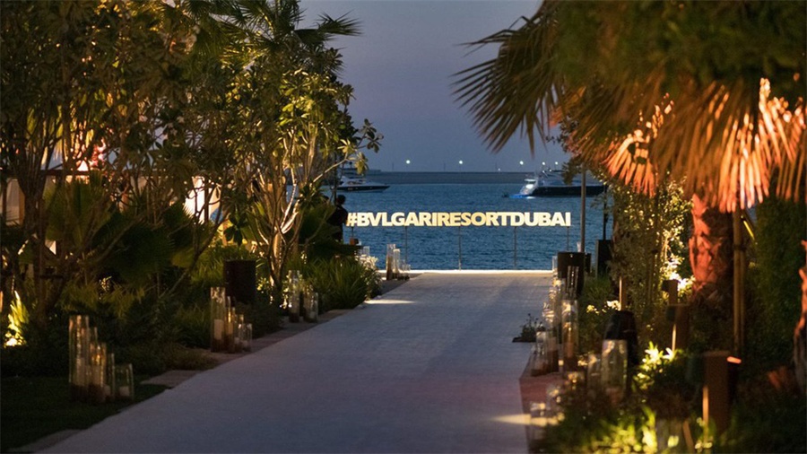 宝格丽品牌第五处酒店落地海马形状的迪拜朱美拉岛,在盛大的开幕仪式上,巨大而细致的建筑轮廓灯光设计,在迪拜的天空下闪耀着特殊的光芒。建筑的立面和岛桥变成了一个灯光装置,向城市展示度假酒店,并欢迎一千名客人来参加开幕活动。度假村的海滩俱乐部在海上举办了欢迎鸡尾酒会,也是宝格丽合唱团的第一次表演。