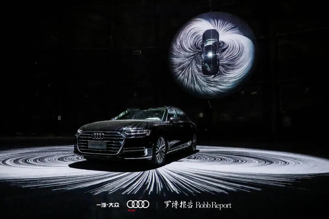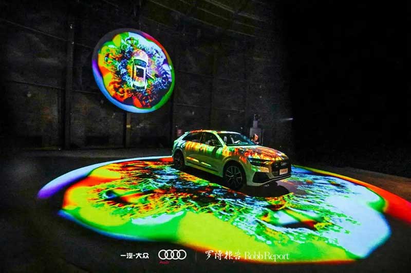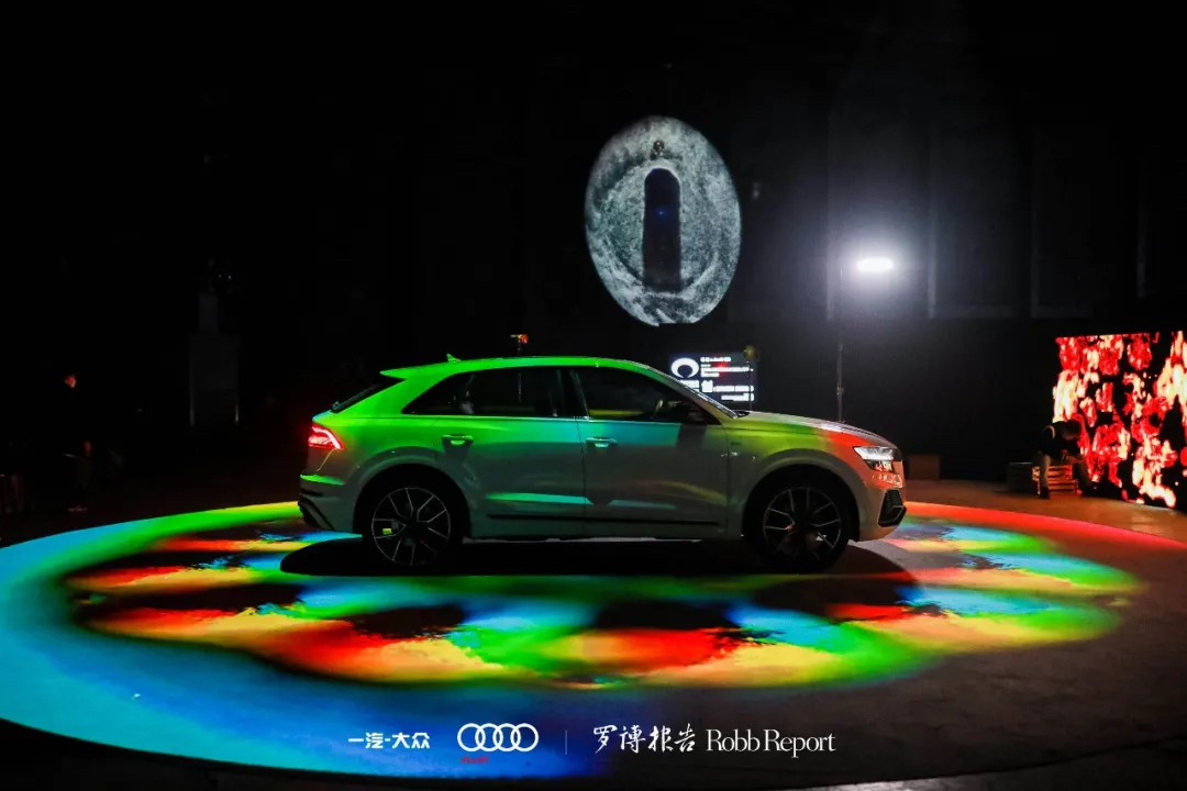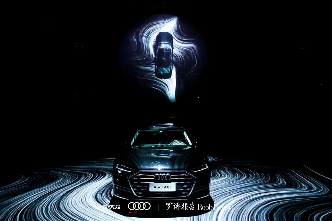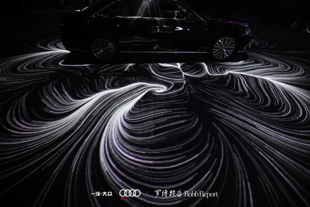 本次艺术展选址大工业时代老旧摩登风的北京751D·PARK,围绕“奥迪8家族”系列,呈现艺术作品《凝视》、《Amorphous》、《噪 相》、《{[(临界)]}》。以光影交错,形成科技艺术形成视听侵袭,折射关于空间、时间等多维镜像思考,留白想象与创作空间,形成极致的艺术氛围。由DROWYEK艺术组合所打造以多维立体的作品拉开了艺术展序幕,揉碎了光影之形,将曼妙的景象打碎、再重组,与即将展出艺术作品融合碰撞。艺术展现场邀请明星策展人一起超越极致,诠释艺术与科技的尊贵典范,追光探索、破镜重塑 、焕新演变、引领创见,多维度视角刷新未知。《凝视》、《Amorphous》、《噪 相》、《{[(临界)]}》四个作品随光影自上而下向地面投射,在场地内缓缓呈现。以光影策动形成虚拟空间,实现几乎近身感的沉浸式感受,观众自然成为空间的组成部分,与光影融为一体,创造了超时空、超维度的叠加体验。视觉上,借由点、线、面的强视觉,运用计算机、激光雷达等科技元素,重新结构、拼接,定位捕捉奥迪8家族系列车型流畅型线条,用艺术&科技尊享驾乘荣耀。以简至柔,化形至繁,游走在平行空间中的形态里,让观众沉浸于影像中,带着创新突破前行,切身感受、思考与想象。同时邀请UFO媒体实验室与艺术家王浙辉策划呈现新媒体艺术作品《时间断层》,诠释奥迪S8L的“全选艺术”,用科技引领未来,缔造不凡生活,创见豪华智能驾乘体验。