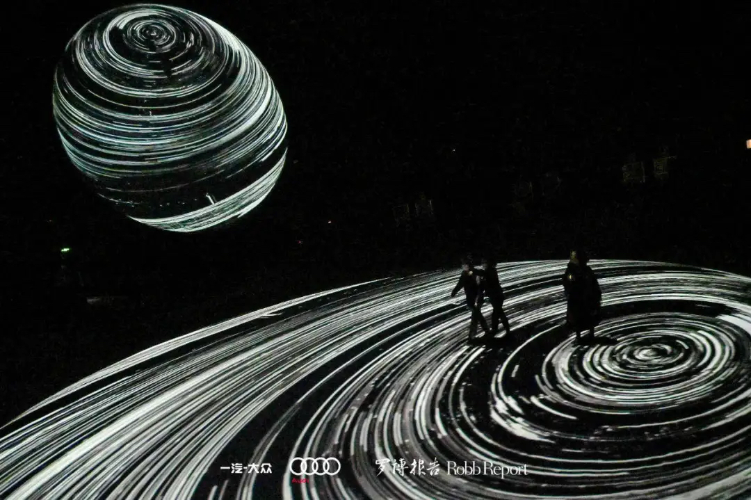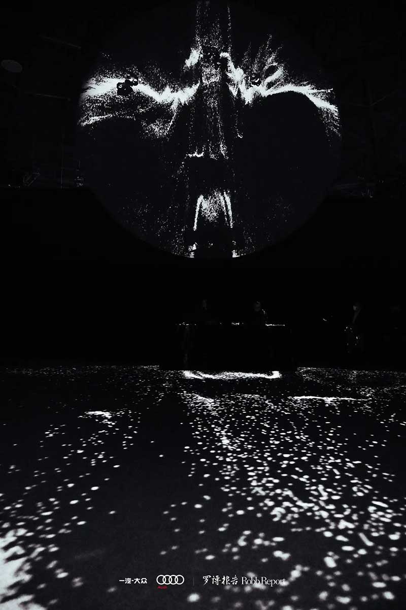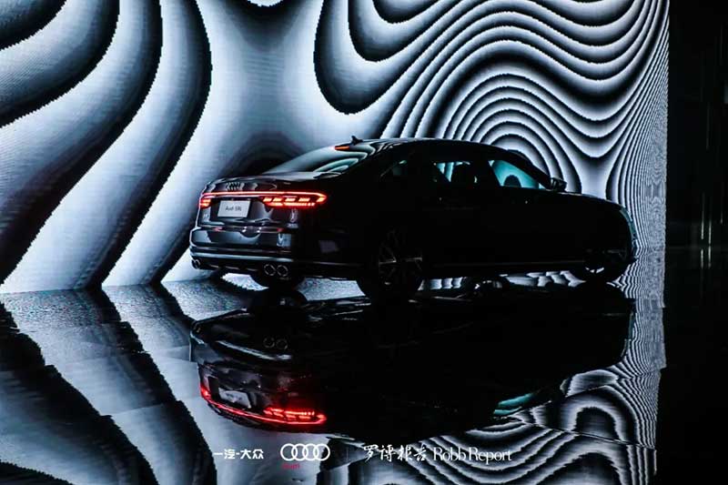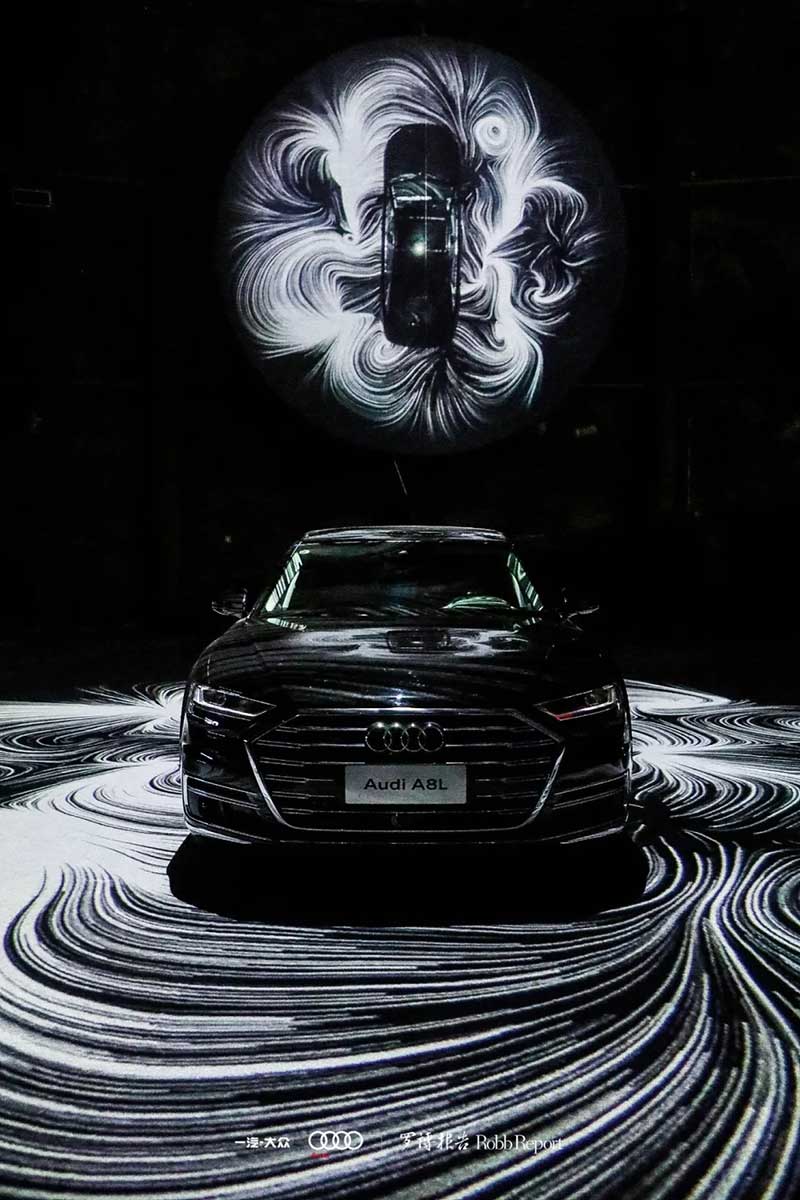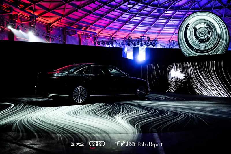 本次艺术展选址大工业时代老旧摩登风的北京751D·PARK,围绕“奥迪8家族”系列,呈现艺术作品《凝视》、《Amorphous》、《噪 相》、《{[(临界)]}》。以光影交错,形成科技艺术形成视听侵袭,折射关于空间、时间等多维镜像思考,留白想象与创作空间,形成极致的艺术氛围。由DROWYEK艺术组合所打造以多维立体的作品拉开了艺术展序幕,揉碎了光影之形,将曼妙的景象打碎、再重组,与即将展出艺术作品融合碰撞。艺术展现场邀请明星策展人一起超越极致,诠释艺术与科技的尊贵典范,追光探索、破镜重塑 、焕新演变、引领创见,多维度视角刷新未知。《凝视》、《Amorphous》、《噪 相》、《{[(临界)]}》四个作品随光影自上而下向地面投射,在场地内缓缓呈现。以光影策动形成虚拟空间,实现几乎近身感的沉浸式感受,观众自然成为空间的组成部分,与光影融为一体,创造了超时空、超维度的叠加体验。视觉上,借由点、线、面的强视觉,运用计算机、激光雷达等科技元素,重新结构、拼接,定位捕捉奥迪8家族系列车型流畅型线条,用艺术&科技尊享驾乘荣耀。以简至柔,化形至繁,游走在平行空间中的形态里,让观众沉浸于影像中,带着创新突破前行,切身感受、思考与想象。同时邀请UFO媒体实验室与艺术家王浙辉策划呈现新媒体艺术作品《时间断层》,诠释奥迪S8L的“全选艺术”,用科技引领未来,缔造不凡生活,创见豪华智能驾乘体验。