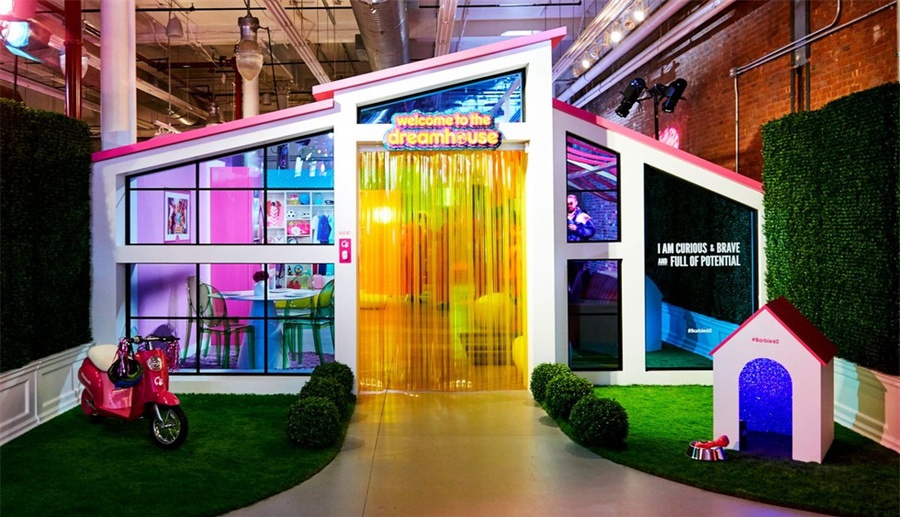 为了庆祝芭比(Barbie)诞辰60周年和国际妇女节的到来,品牌在纽约举行了为期两天的快闪式体验活动。从品牌的历史发展到“梦幻小屋”,再到最新的“女性榜样娃娃”系列,以产品所代表的文化为主线串联其了整个周年庆活动,以各种产品的创意展示,互动拍照构成了产品文化的现场表达元素。