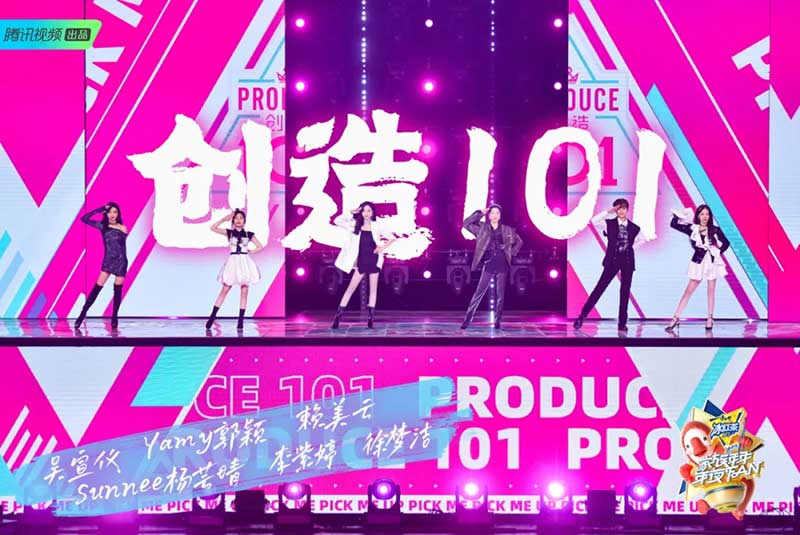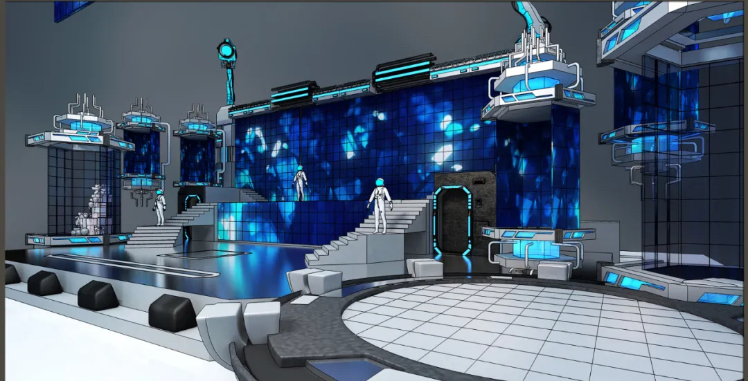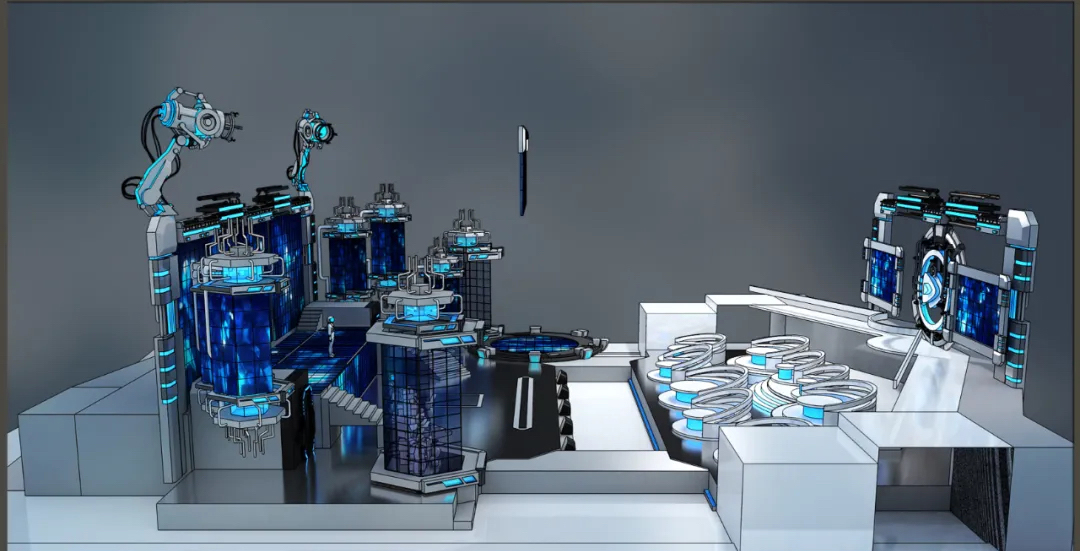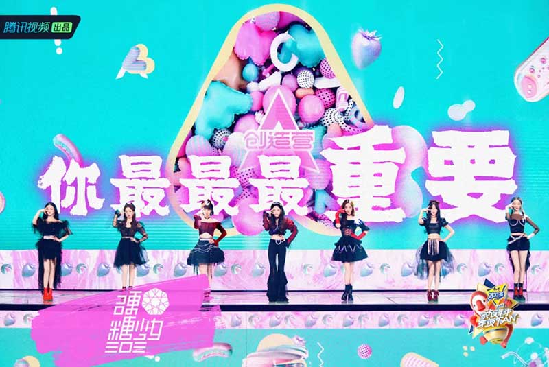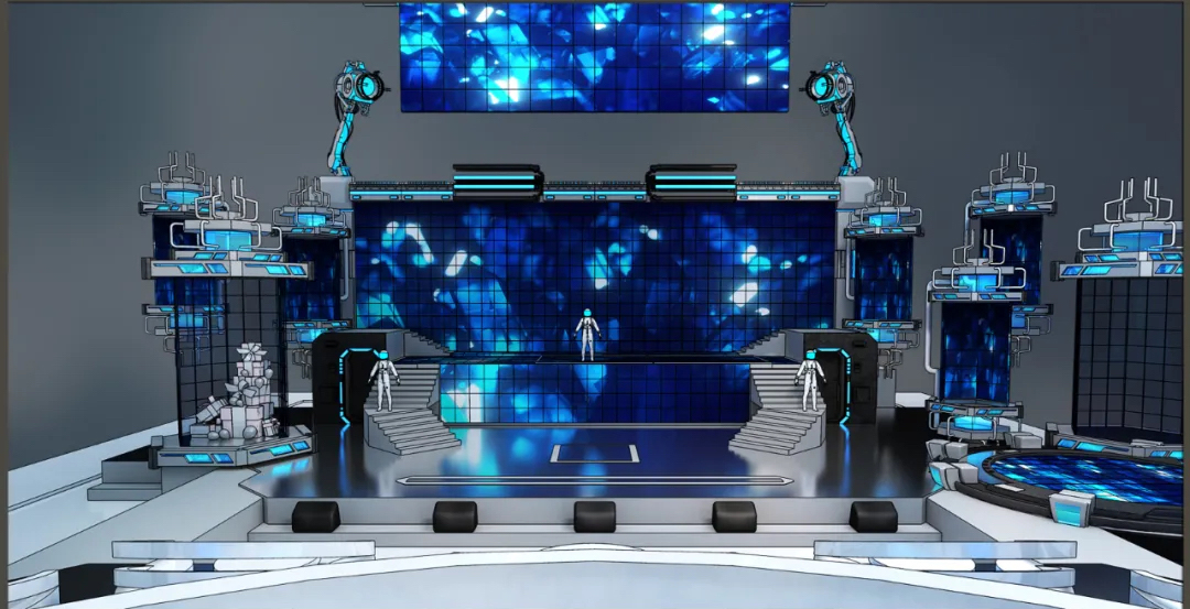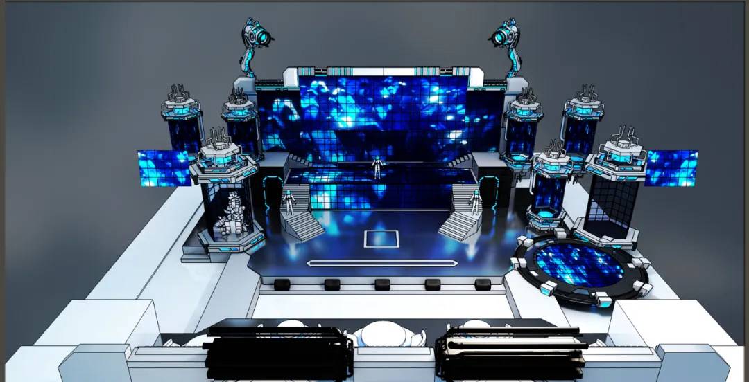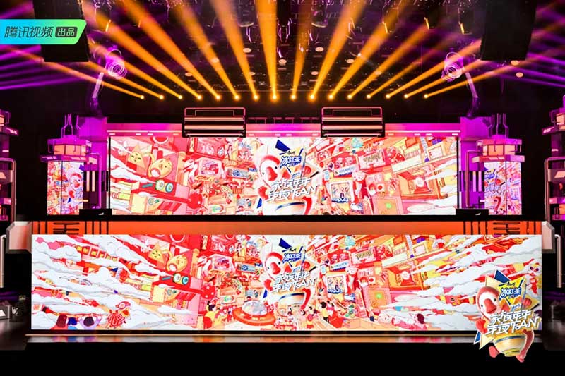 在2020年底,鹅厂奉献出了一场全新策划的内容IP家族小年夜晚会,集结了腾讯视频综艺、剧集、动漫等领域的爆款IP和话题人物,通过创意混搭的节目构思、舞台呈现和趣味互动,与大众一起在撒欢的家族氛围中,重温2020年的娱乐记忆。舞美设计的设计灵感就是鹅厂两个字,用一个科幻风的工厂场景,配合错落的培养皿,展现了腾讯视频对于一个个ip培养的一片苦心。当冰屏构件的一个个培养皿中,一个个ip形象的代表艺人出场,会引来粉丝的一片欢呼。而空中一块巨大的升降屏幕,用落下升起的过程,在完成节目的换景的刚需以后,也给人一种U盘插入接口,输入能量,完成一个ip营造的象征意义。