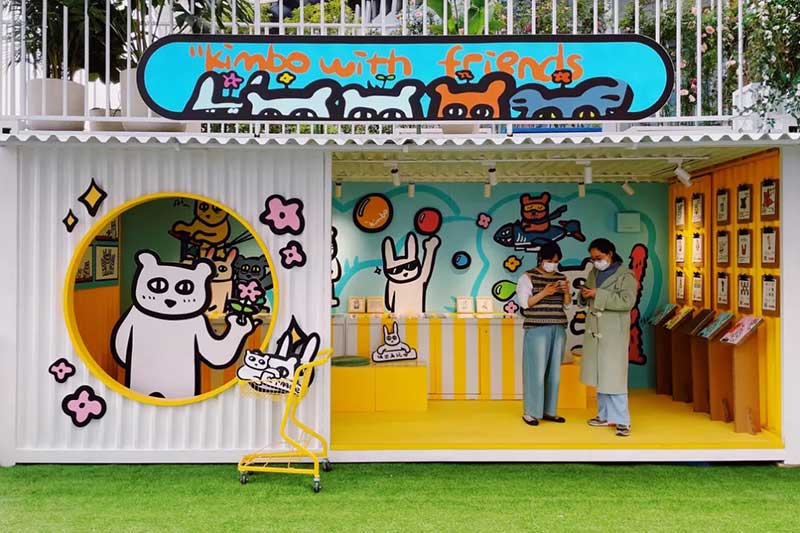 除此之外,穿插在其中的还有一个“超集艺廊”,会定期举办小型艺术展,第一期作品是由新型文创品牌孵化中心n次方携手中国新锐艺术家Kimbo共同带来“Kimbo with Friends”小型互动艺术展。