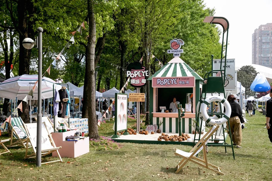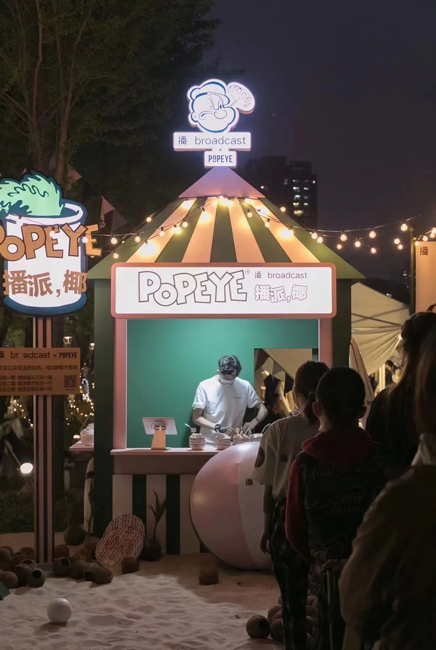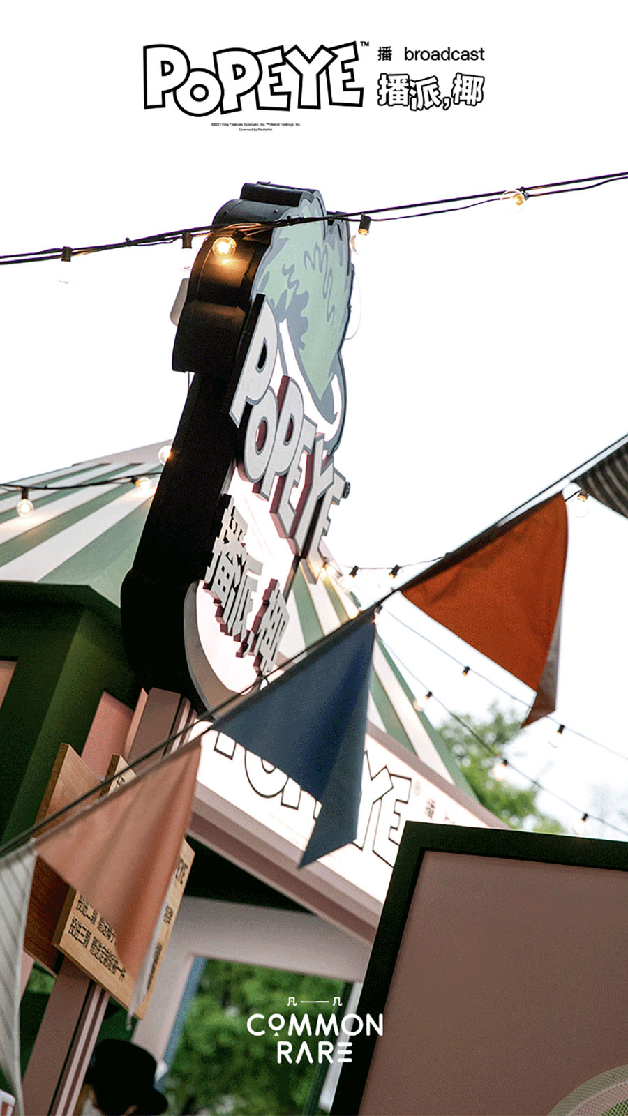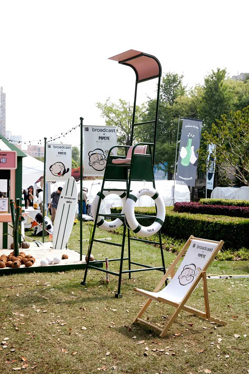 当播broadcast遇上POPEYE大力水手,又遇上沪上最具设计感最有趣的凡几市集(Common Rare),为大家量身定制打造了沙滩乐园「 POPEYE 播派椰 」。超上镜复古色调场景,让人随时随地想TAN下来的chill沙滩氛围,还有市集现场排长队最火爆的「椰子炮弹」弹弓游戏,是市集最受关注和出镜率最高的展位之一。