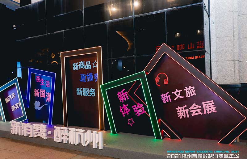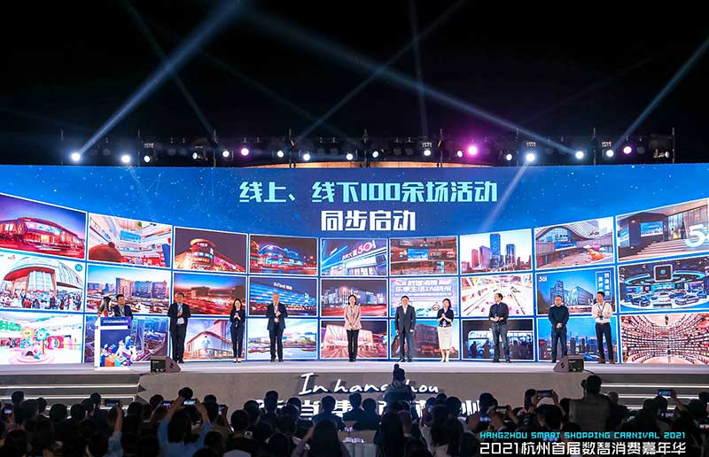 杭州数智消费嘉年华的启动活动全景式呈现了“数智”元素,将多个平台的直播间、数智消费十大主题活动沉浸式体验区搬到现场,同时通过主会场和各个消费场景的联动设置,全方位推广杭州无限创新的数智消费新商品、更新迭代的数智消费新模式、多元体验的数智消费新场景,全视角展示“新消费·醉杭州”的独特魅力,打造属于“人间天堂”的数智新消费潮流。