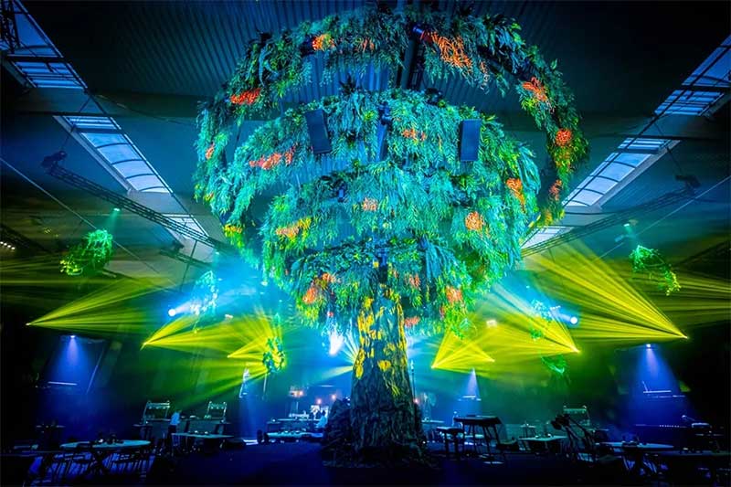 活动着眼于品牌的核心价值观,诞生了“坚持我们的根基”的活动概念,将活动变为现实。这个神奇的夜晚的视觉与主题表达的核心是仓库中心的一棵定制的“参天大树”,它是品牌的家族传承的象征,也是根深蒂固的过去以及当前与未来的成长与繁荣的象征。在活动现场我们带领客人们在“生命之树”周围体验和经历品牌独特的气质与品行。
