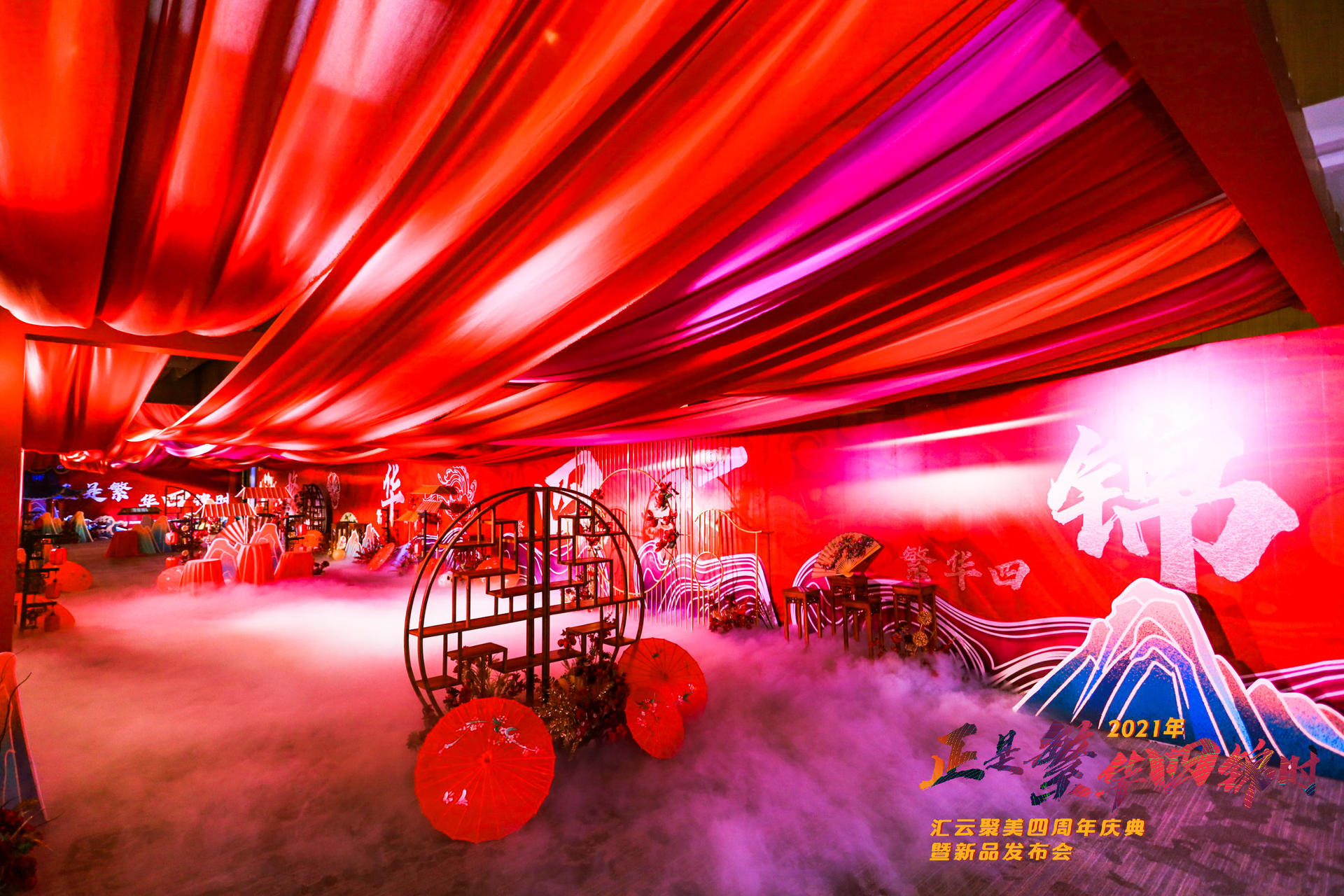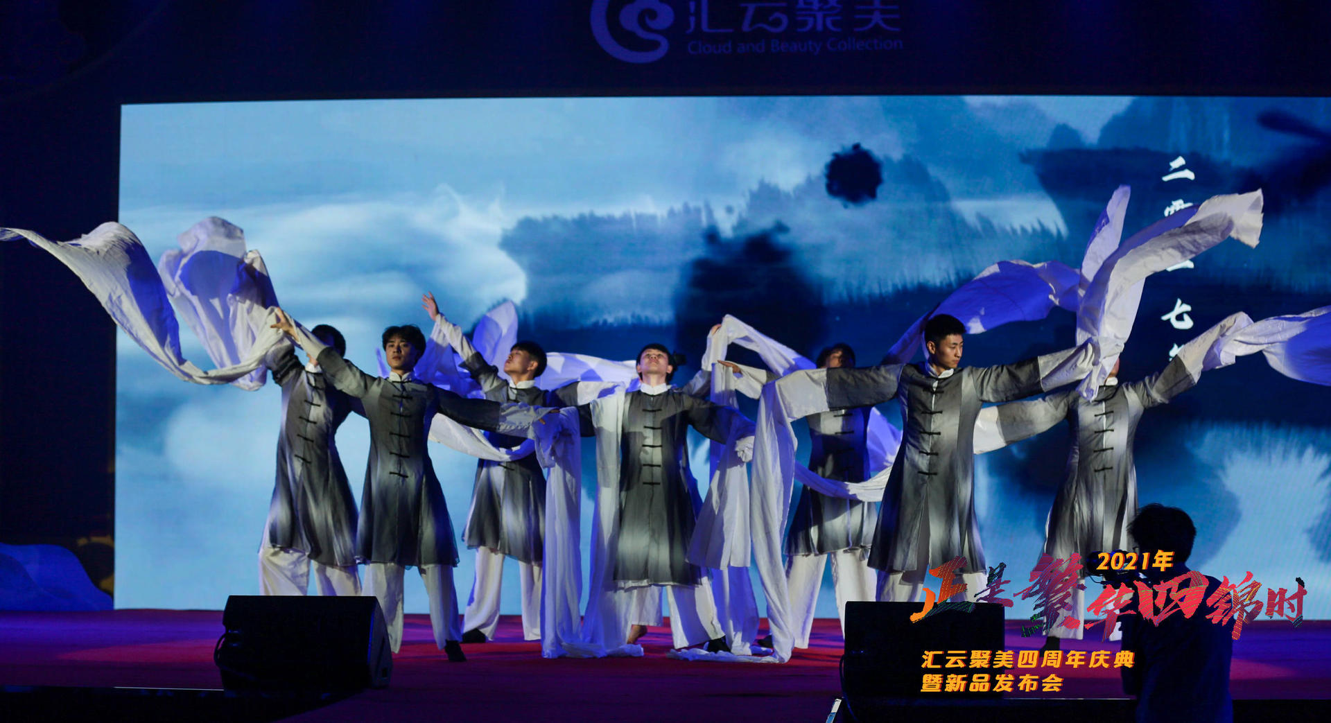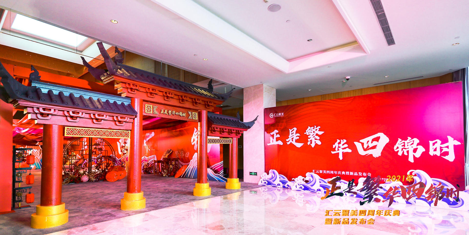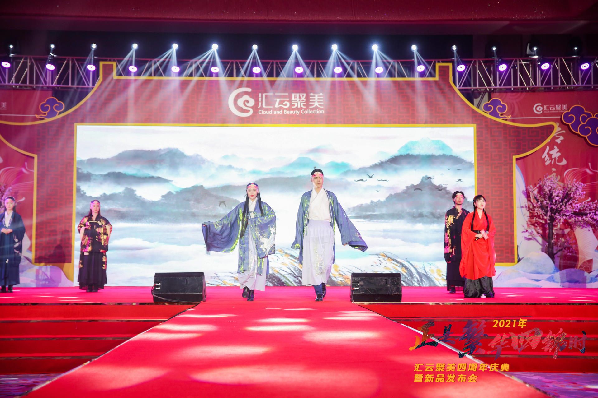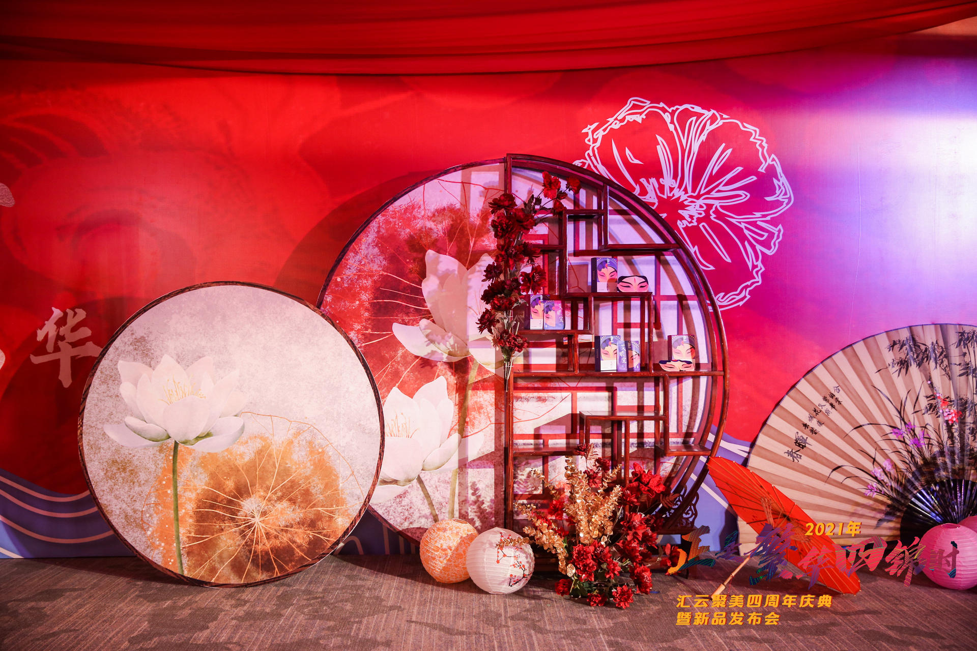 汇云聚美品牌四周年庆典暨新品发布会以“正是繁华四锦时”为主题,寓意汇云聚美成立四周年的盛景,并将在未来的赛道上继续砥砺前行,闪耀璀璨。本次四周年庆典,汇云聚美将电影殿堂级的置景搬进了现场,大量中国风的陈设布置在红毯和舞台周边。开场节目古风墨舞,婉若游龙的表演,惊艳了全场,更惊艳了观看直播观众;舞蹈演员一袭纱衣,轻歌曼舞,成为多少人心中的白月光,举手投足间,无不散发出古风和古韵。