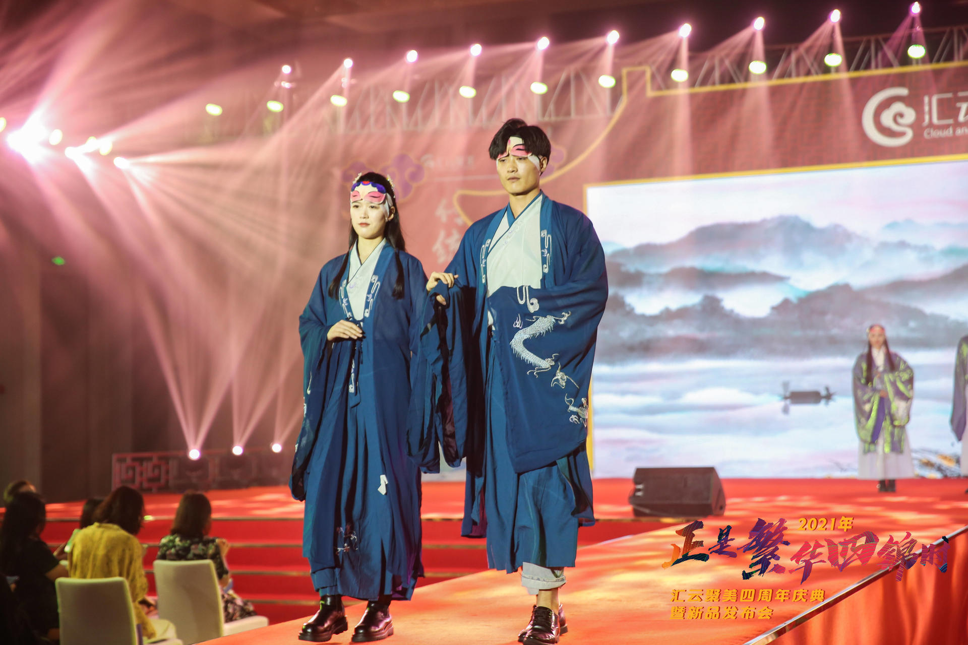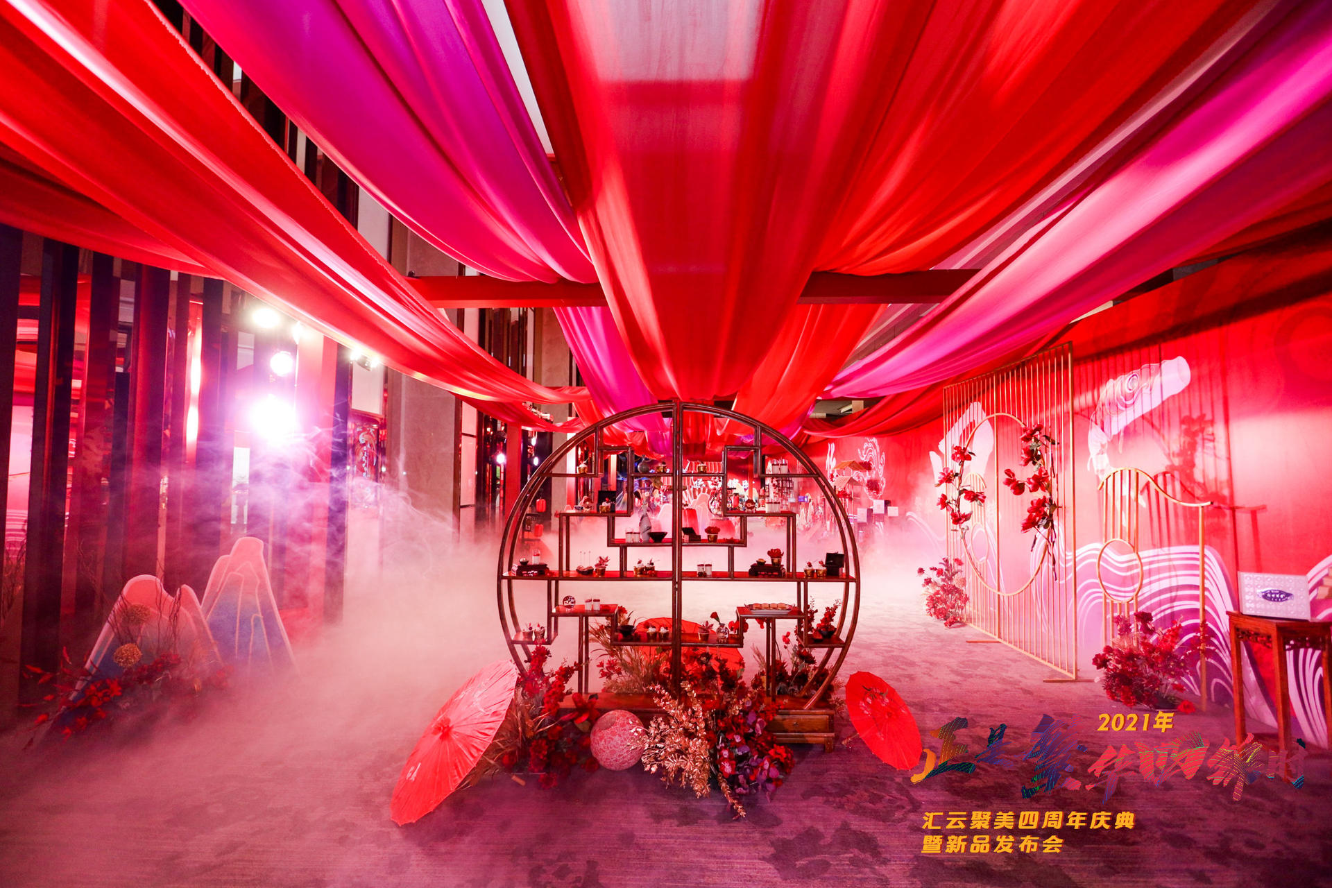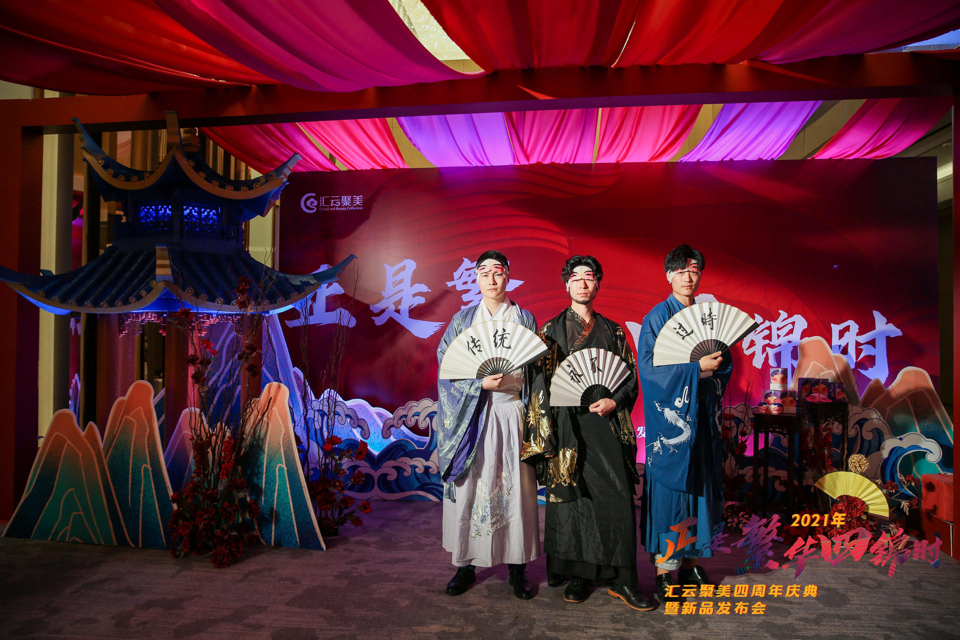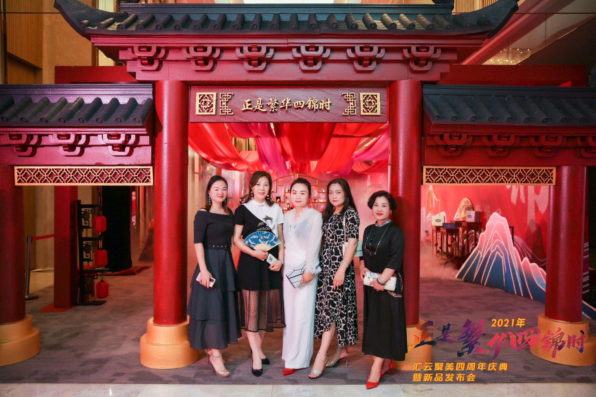 汇云聚美品牌四周年庆典暨新品发布会以“正是繁华四锦时”为主题,寓意汇云聚美成立四周年的盛景,并将在未来的赛道上继续砥砺前行,闪耀璀璨。本次四周年庆典,汇云聚美将电影殿堂级的置景搬进了现场,大量中国风的陈设布置在红毯和舞台周边。开场节目古风墨舞,婉若游龙的表演,惊艳了全场,更惊艳了观看直播观众;舞蹈演员一袭纱衣,轻歌曼舞,成为多少人心中的白月光,举手投足间,无不散发出古风和古韵。