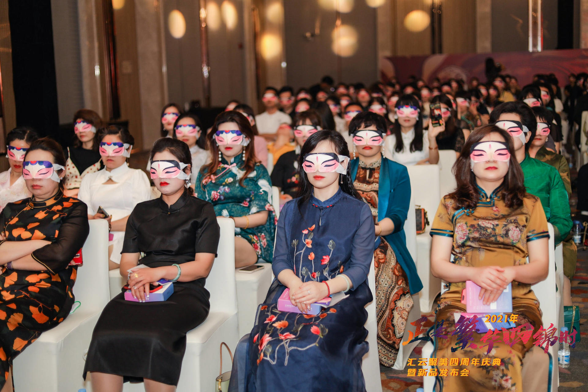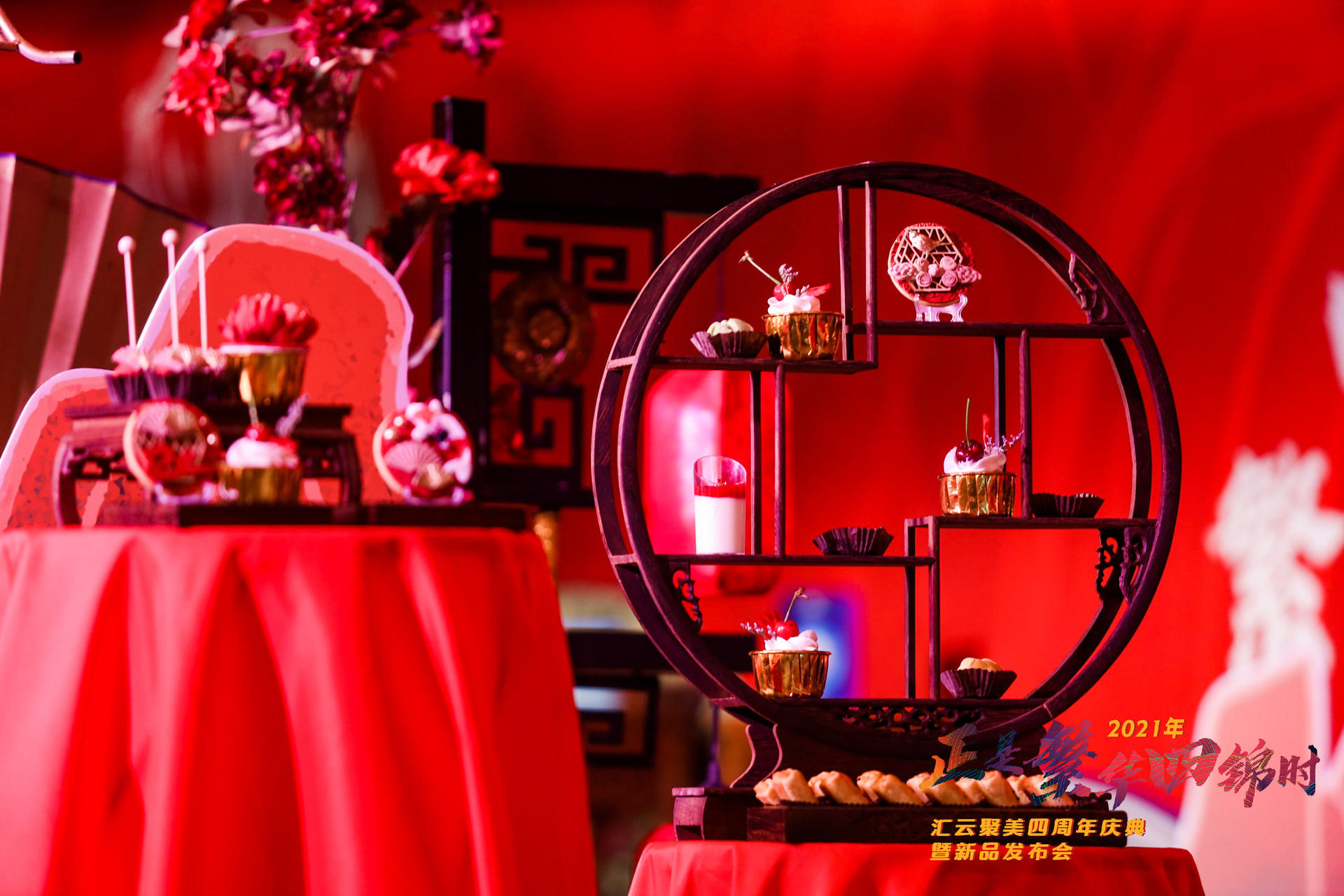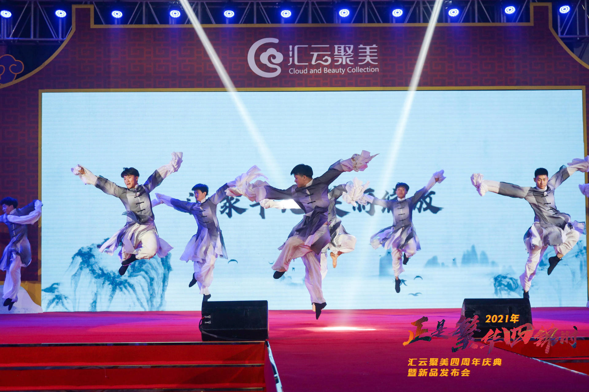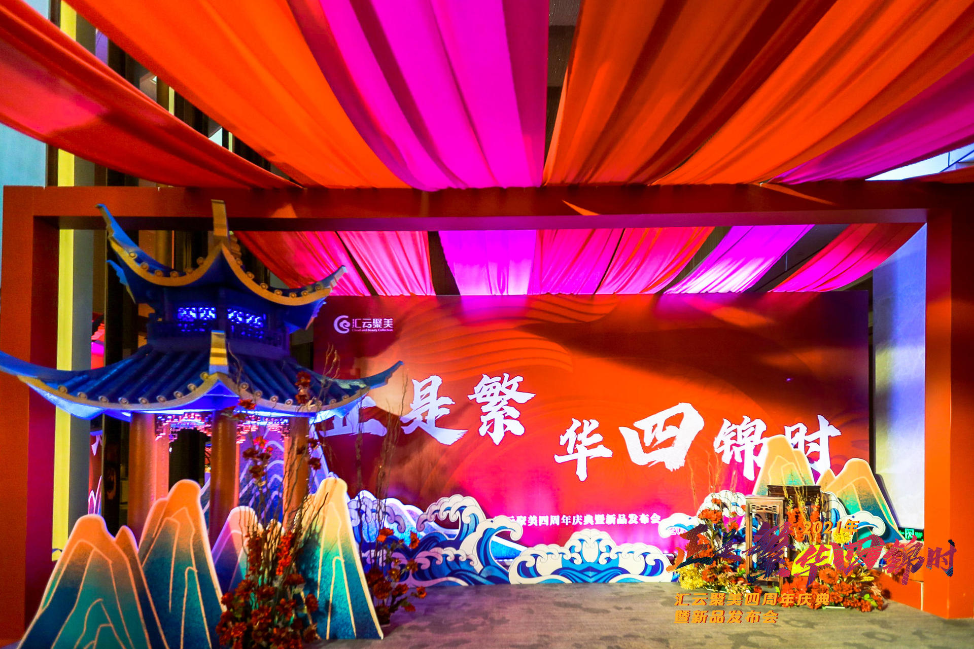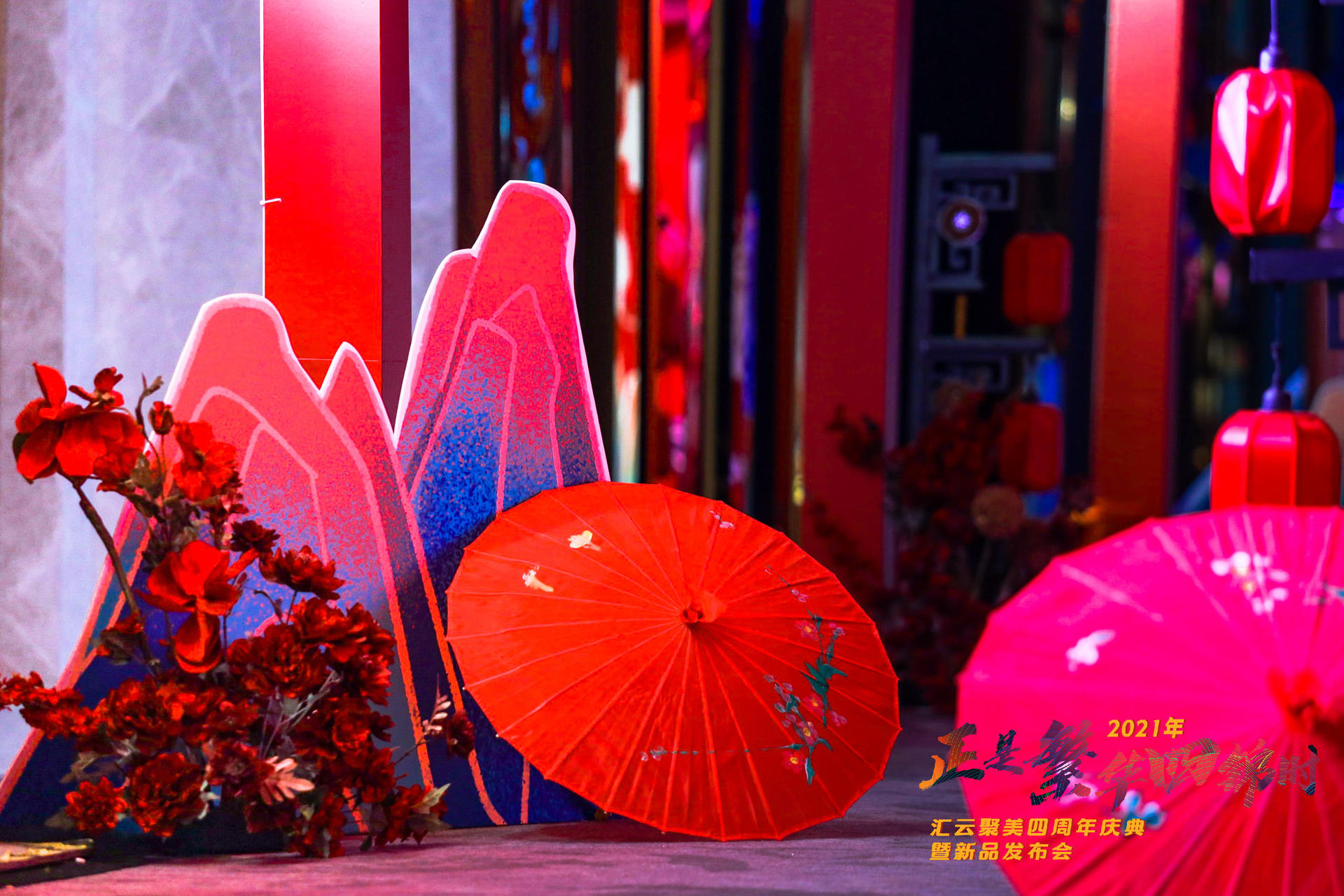 汇云聚美品牌四周年庆典暨新品发布会以“正是繁华四锦时”为主题,寓意汇云聚美成立四周年的盛景,并将在未来的赛道上继续砥砺前行,闪耀璀璨。本次四周年庆典,汇云聚美将电影殿堂级的置景搬进了现场,大量中国风的陈设布置在红毯和舞台周边。开场节目古风墨舞,婉若游龙的表演,惊艳了全场,更惊艳了观看直播观众;舞蹈演员一袭纱衣,轻歌曼舞,成为多少人心中的白月光,举手投足间,无不散发出古风和古韵。