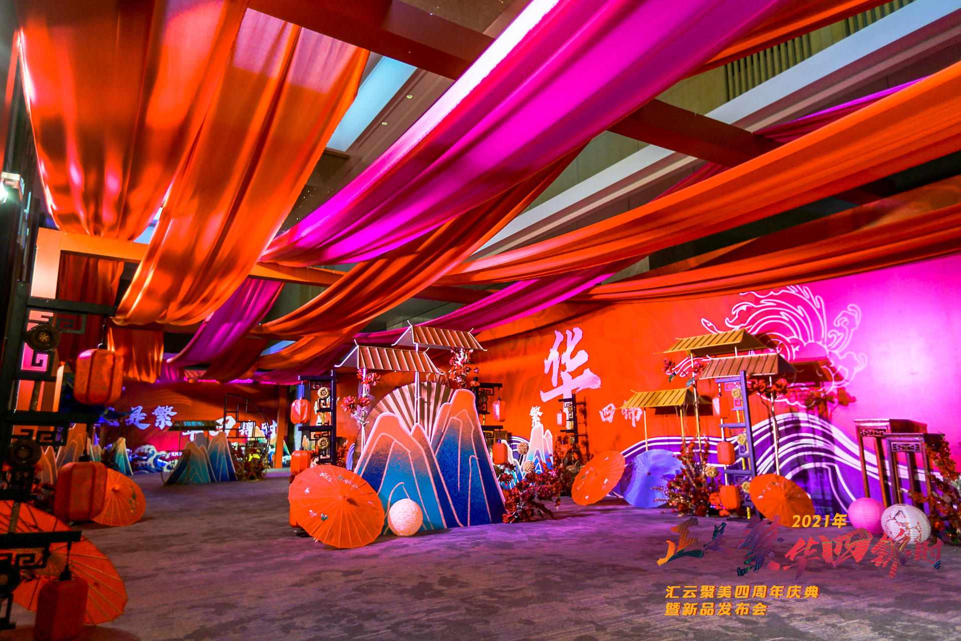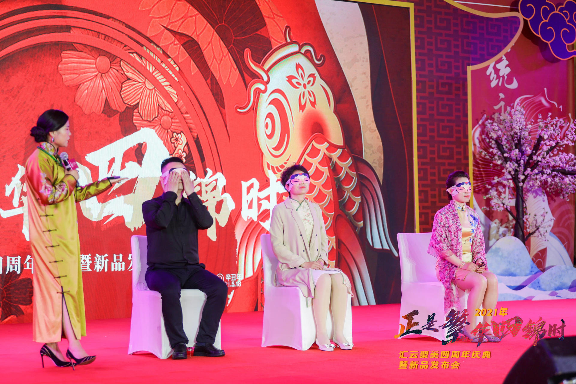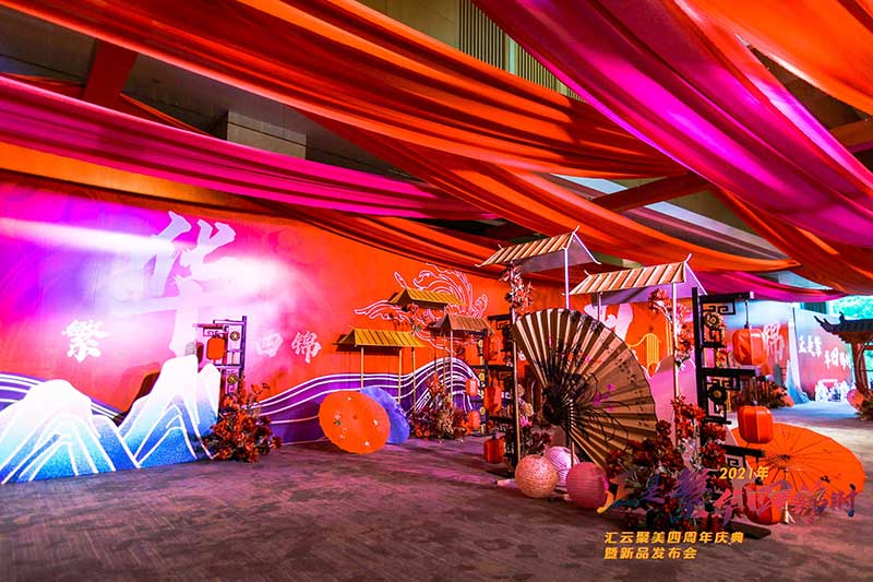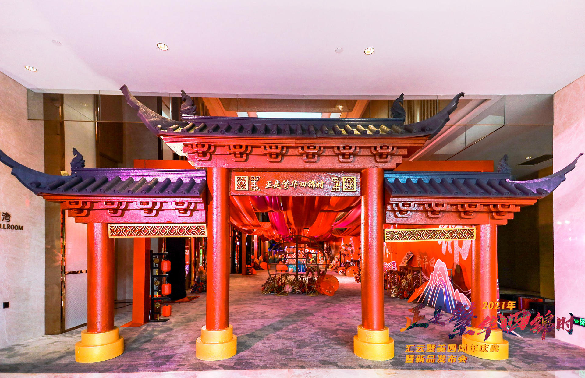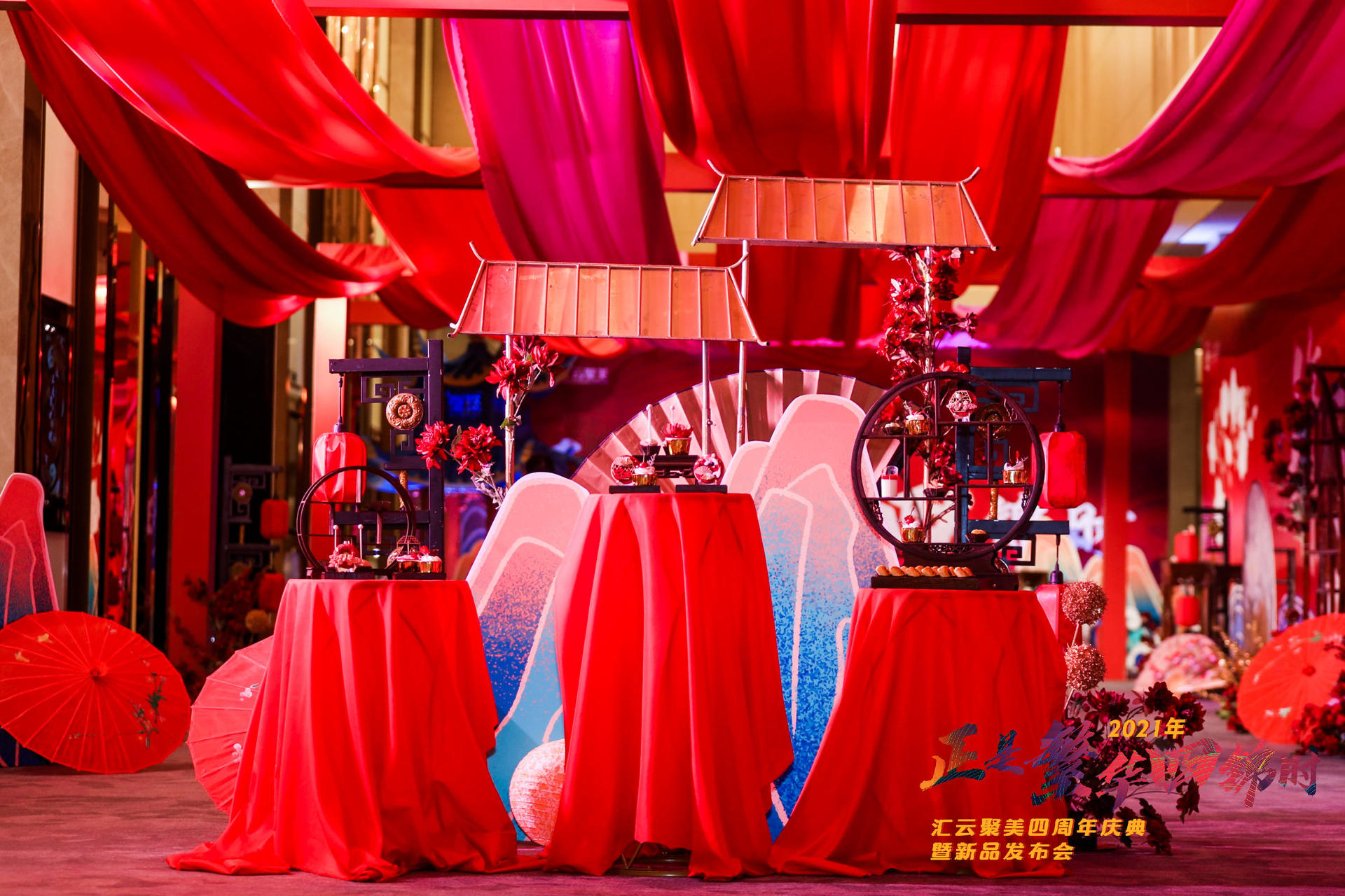 汇云聚美品牌四周年庆典暨新品发布会以“正是繁华四锦时”为主题,寓意汇云聚美成立四周年的盛景,并将在未来的赛道上继续砥砺前行,闪耀璀璨。本次四周年庆典,汇云聚美将电影殿堂级的置景搬进了现场,大量中国风的陈设布置在红毯和舞台周边。开场节目古风墨舞,婉若游龙的表演,惊艳了全场,更惊艳了观看直播观众;舞蹈演员一袭纱衣,轻歌曼舞,成为多少人心中的白月光,举手投足间,无不散发出古风和古韵。