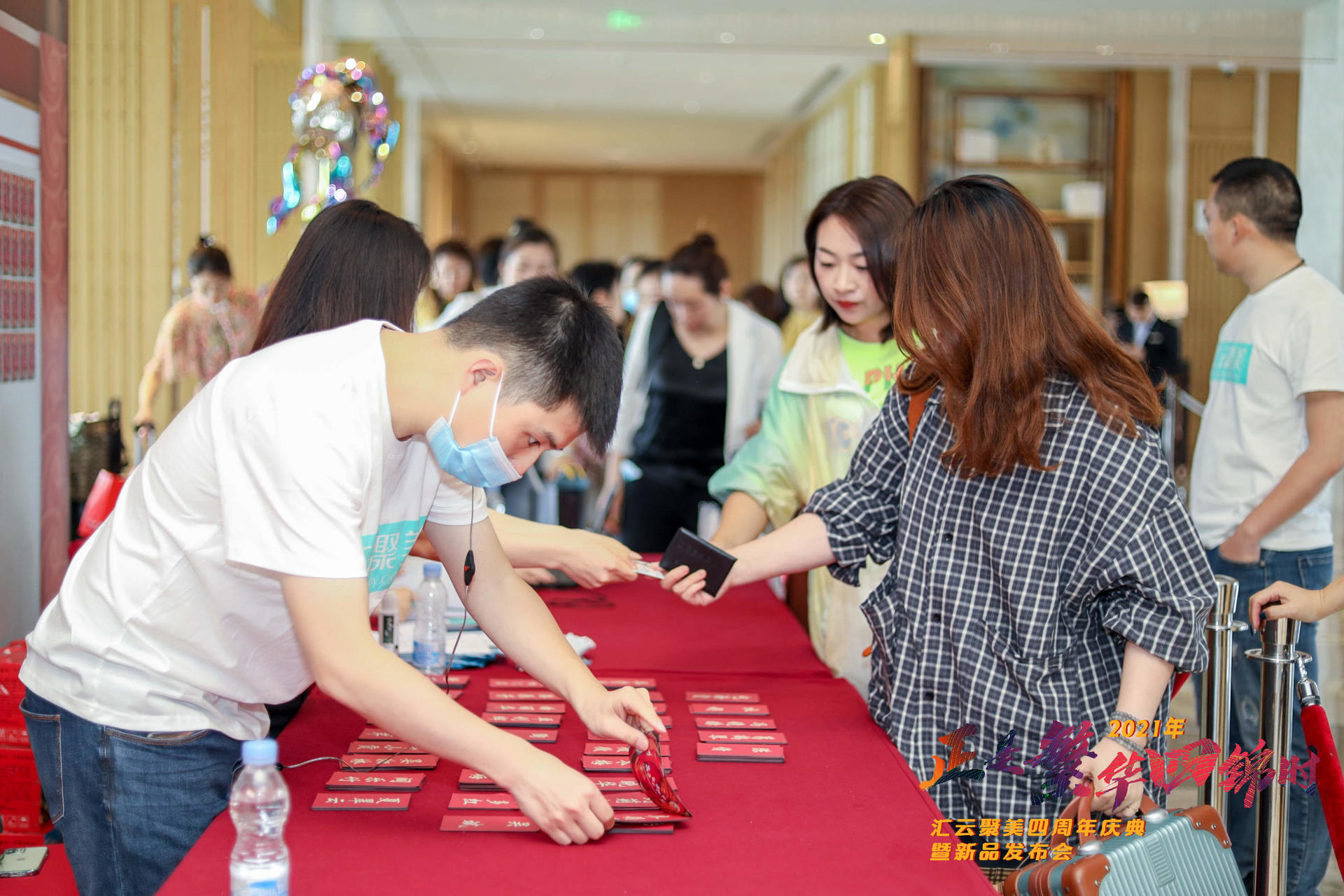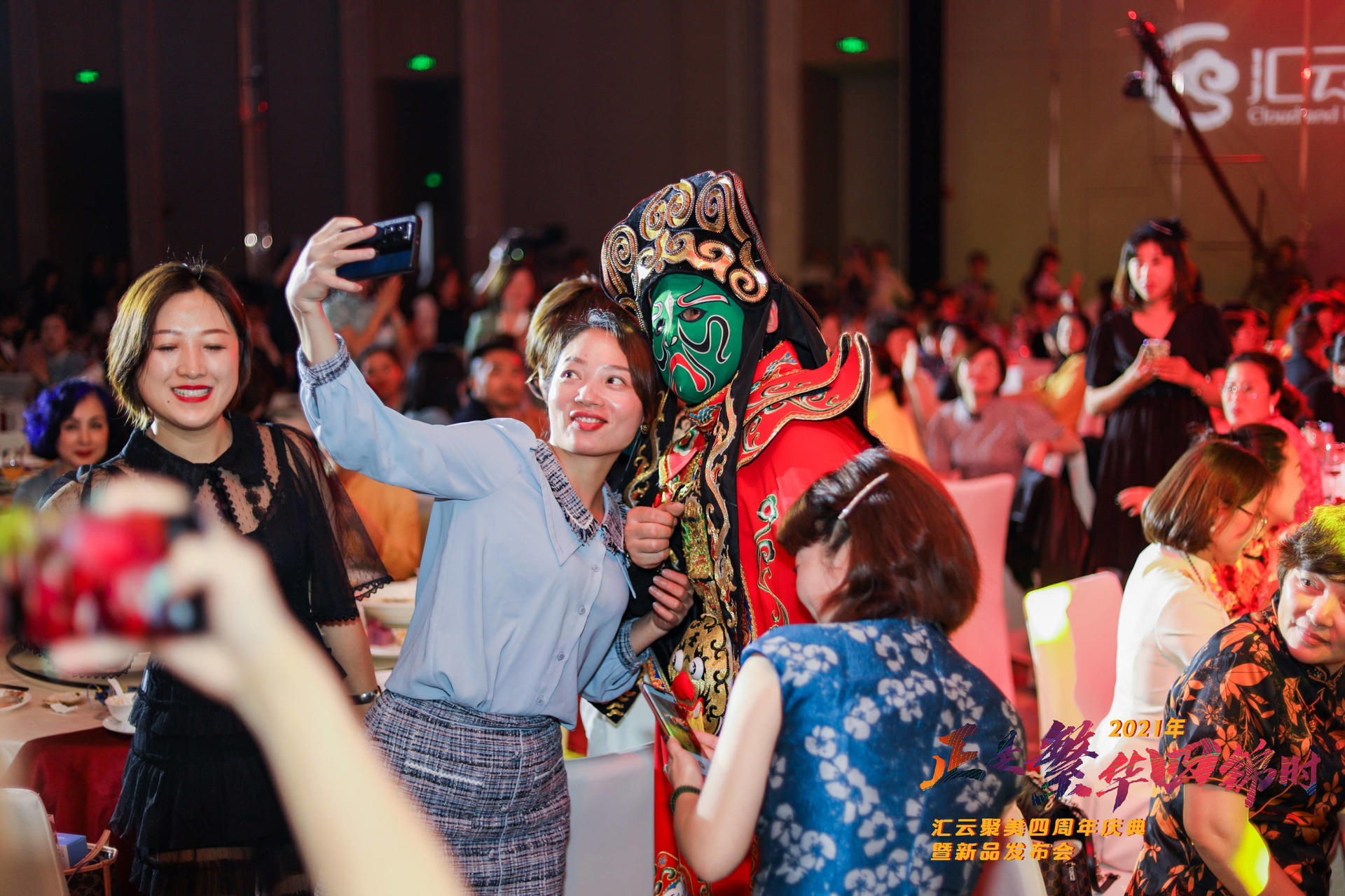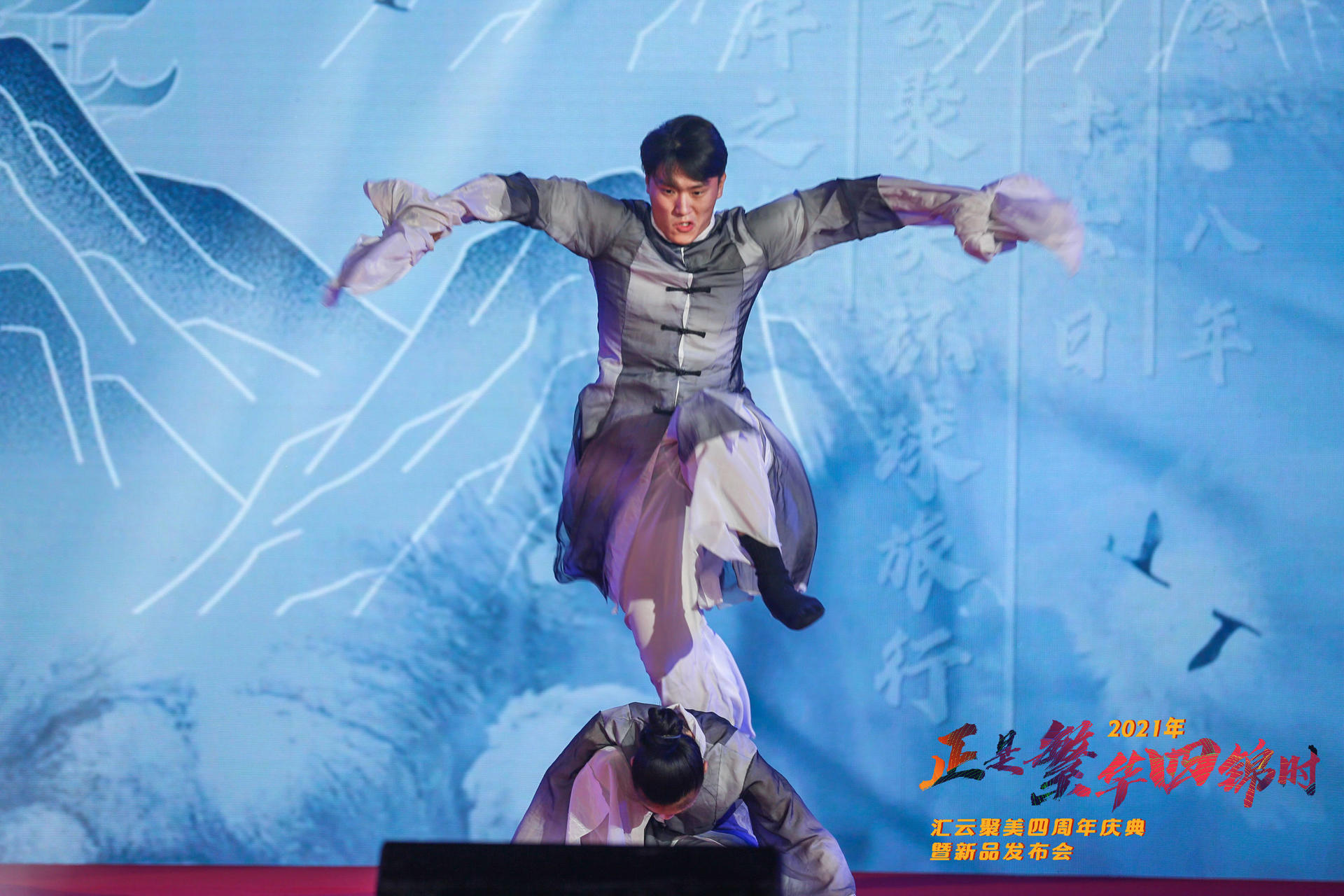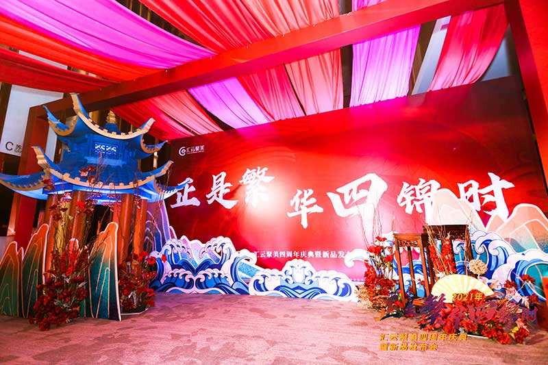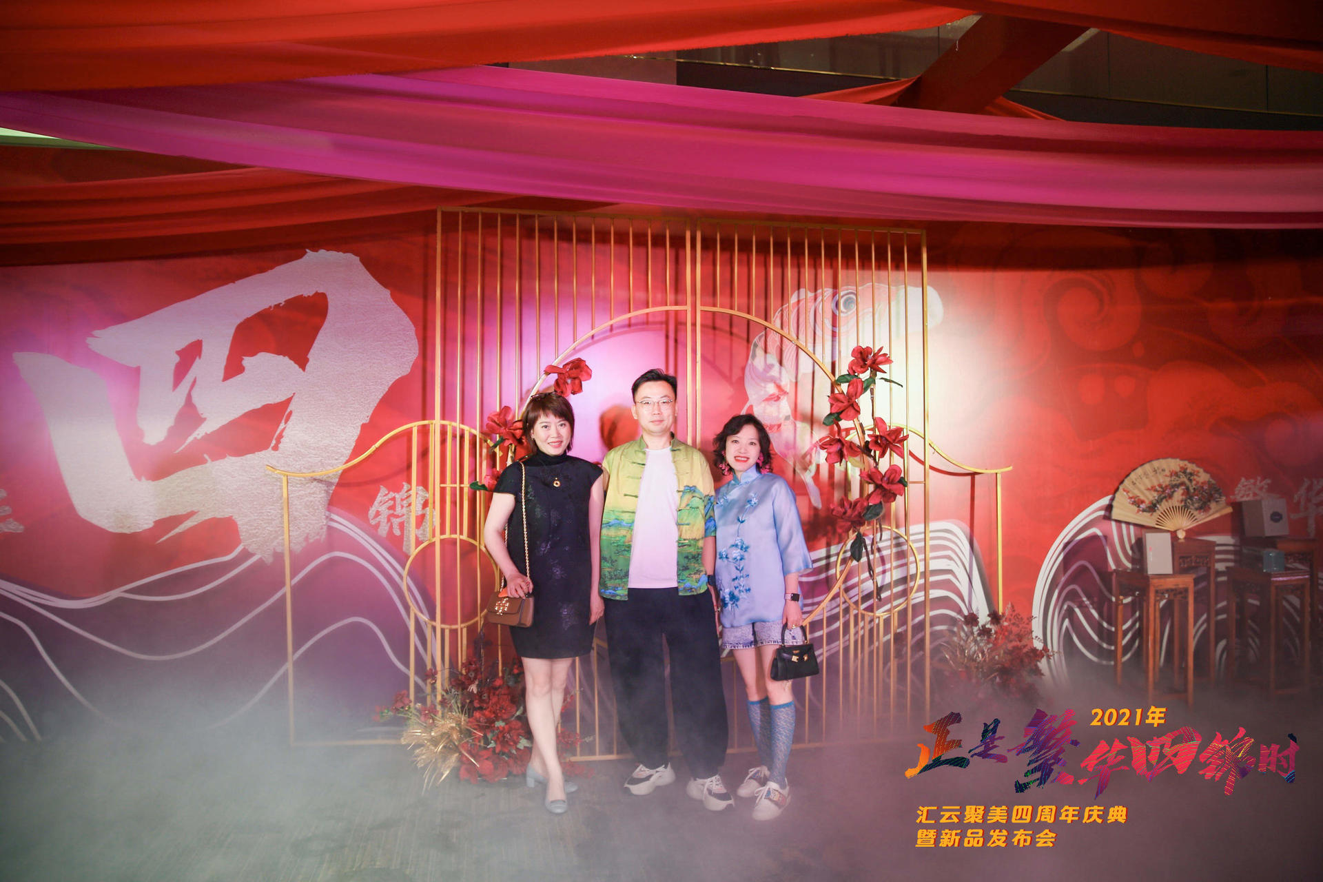 汇云聚美品牌四周年庆典暨新品发布会以“正是繁华四锦时”为主题,寓意汇云聚美成立四周年的盛景,并将在未来的赛道上继续砥砺前行,闪耀璀璨。本次四周年庆典,汇云聚美将电影殿堂级的置景搬进了现场,大量中国风的陈设布置在红毯和舞台周边。开场节目古风墨舞,婉若游龙的表演,惊艳了全场,更惊艳了观看直播观众;舞蹈演员一袭纱衣,轻歌曼舞,成为多少人心中的白月光,举手投足间,无不散发出古风和古韵。