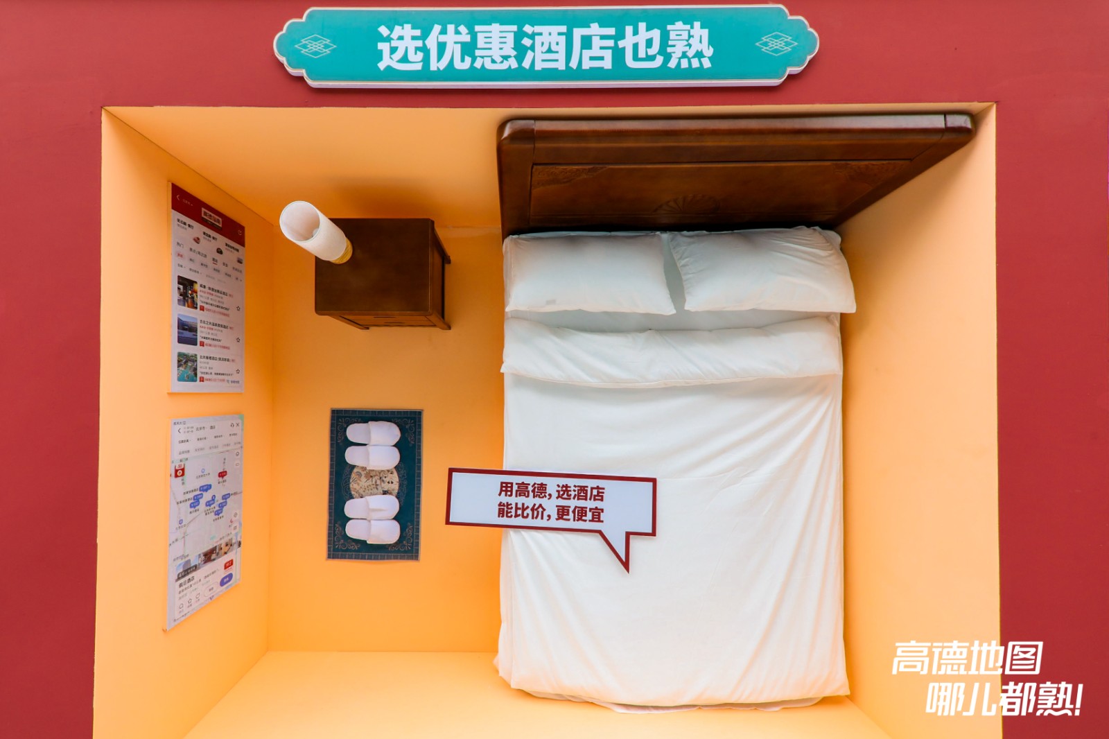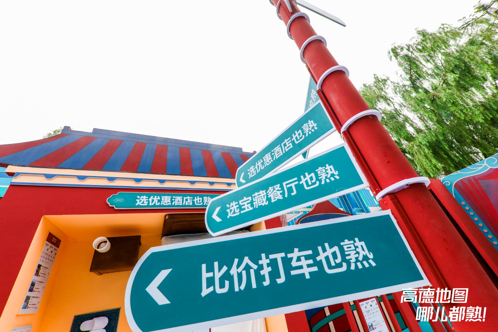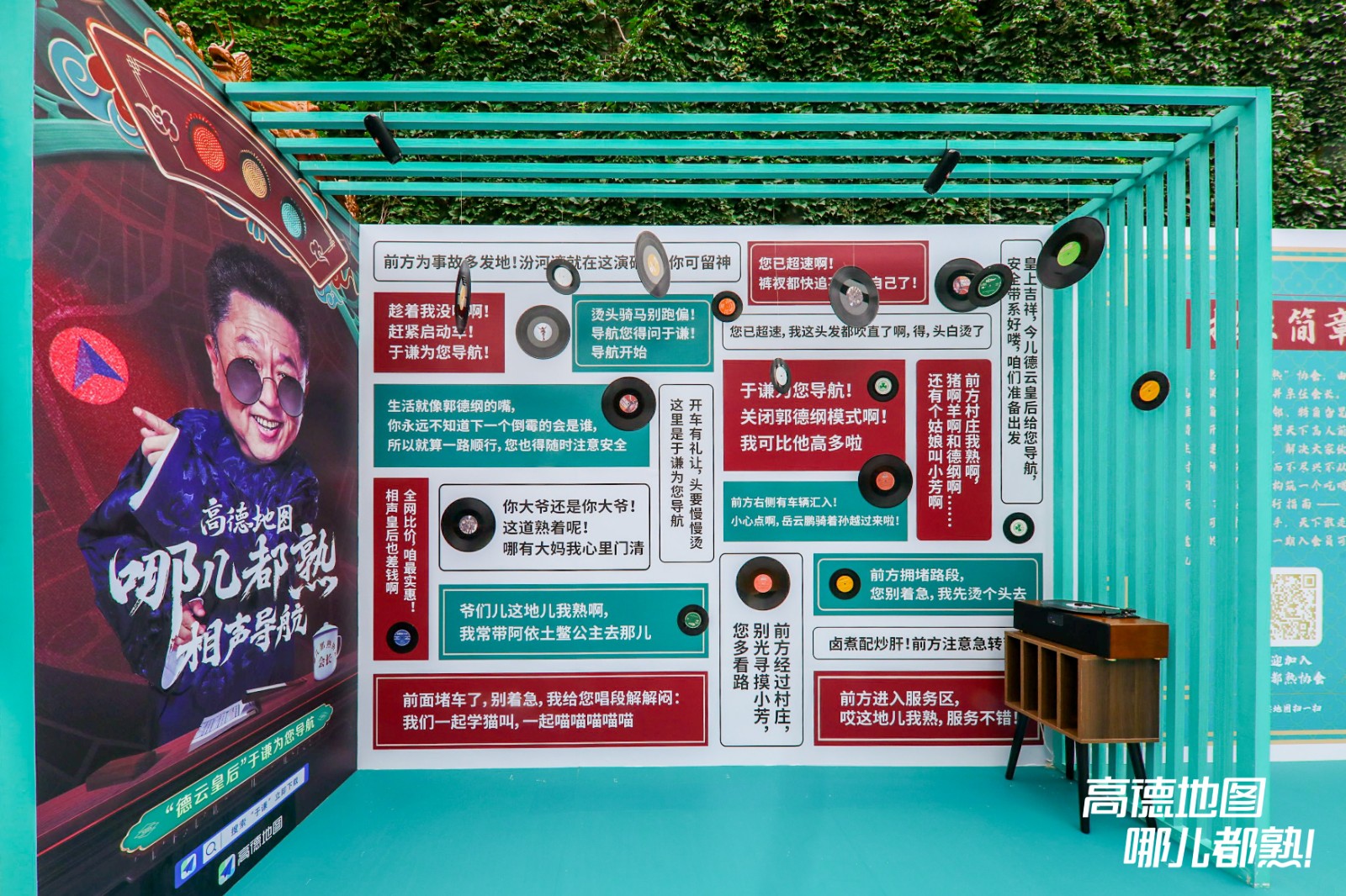 外场布置通过古典式门头,开始进入到高德地图精心打造的出门好生活服务场景展示区。根据品牌新主张,发布会外场将“熟”字做成巨大的镂空立体字,在来宾心里形成有效记忆点,还有于谦会长的「高德地图哪儿都熟协会」招生简章展示墙,以及衣食住行出行场景的展示区域,充分展现了高德地图向「出行好生活服务平台」升级的美好愿景。