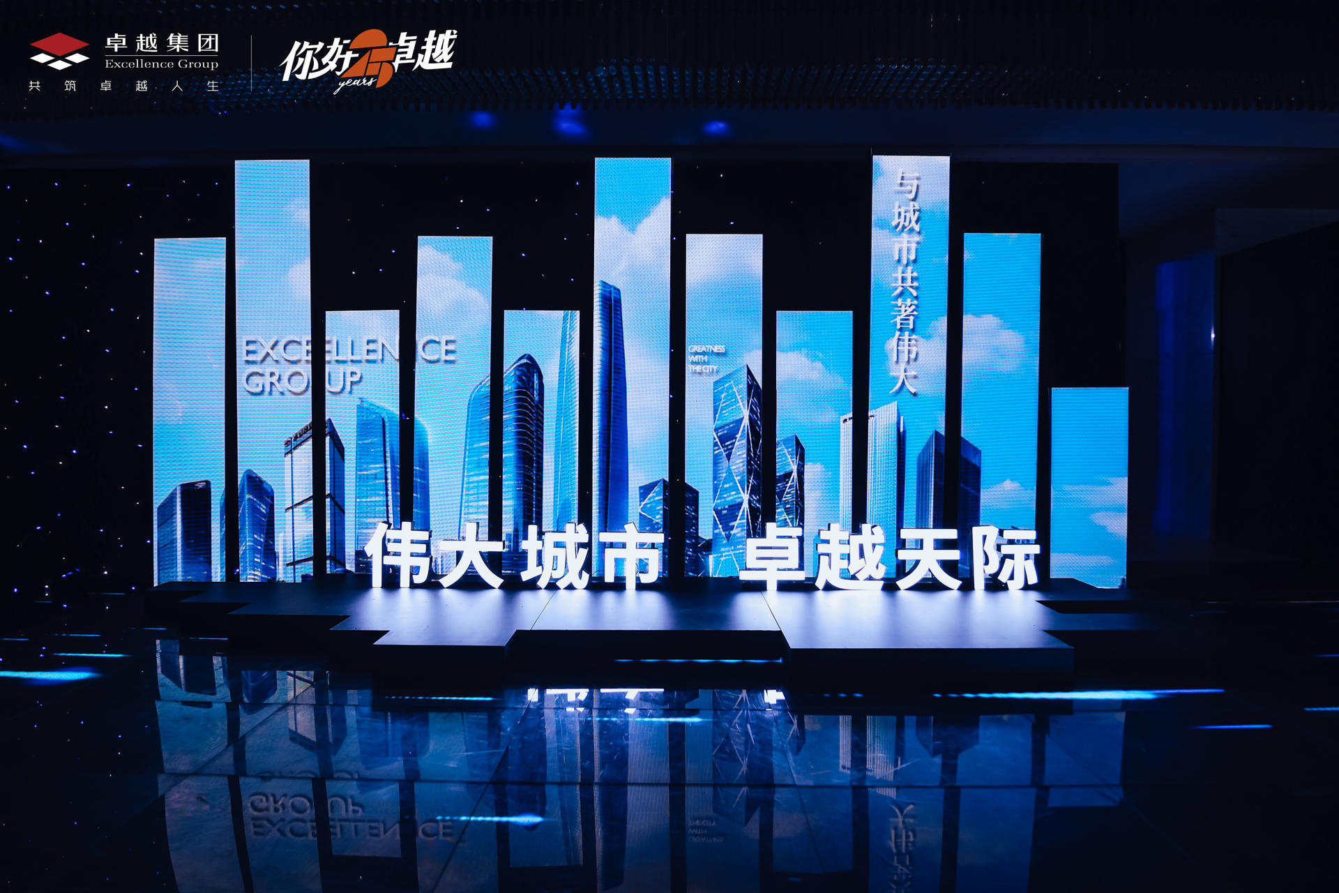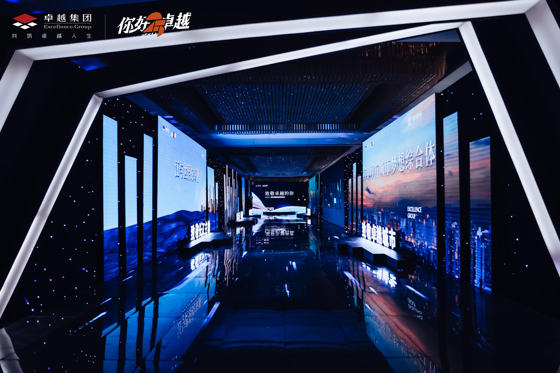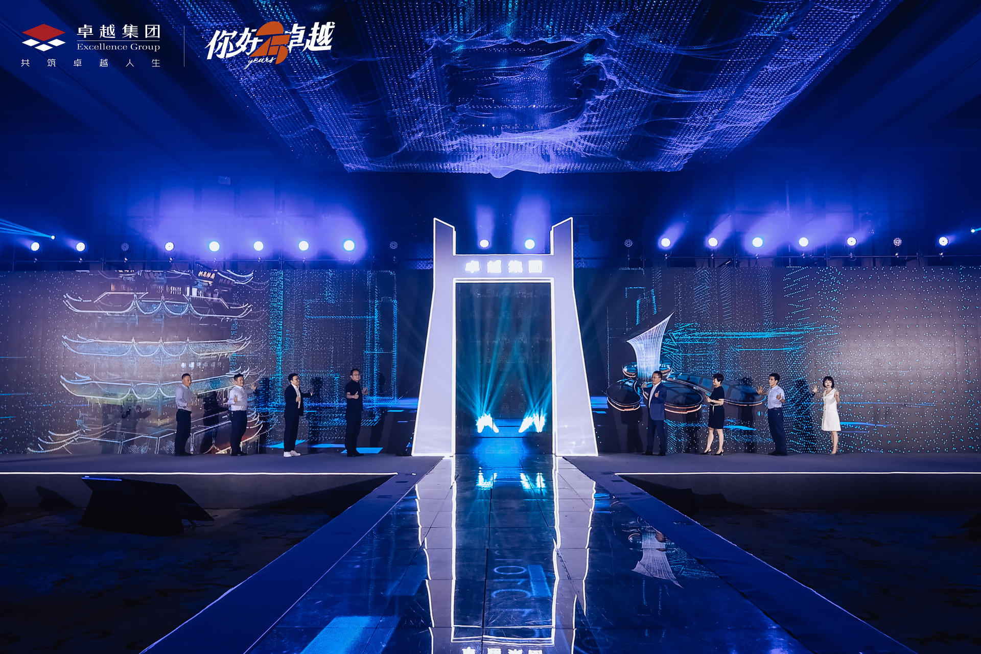 致敬卓越的你—— 2021卓越武汉品牌战略发布会于武汉富力威斯汀酒店宴会厅震撼启幕,以一场视听盛宴,宴邀全城致敬城市荣耀。这场艺术与人文交织、建筑与城市对话的璀璨盛会,恢弘开篇!正如卓越的布局战略沿长江而行,为此发布会的开场舞也以 ” 水 ” 相呼应,水幕遮天的舞台效果、人屏互动的水世界舞蹈、演绎品牌内涵的 3D 特效,让观众直观感受到震撼大气的场面,行云流水般的表演,象征着生机勃勃的姿态直面江城荆楚文明的浪潮,更启迪着全场宾客对未来生活景象的美好共鸣。