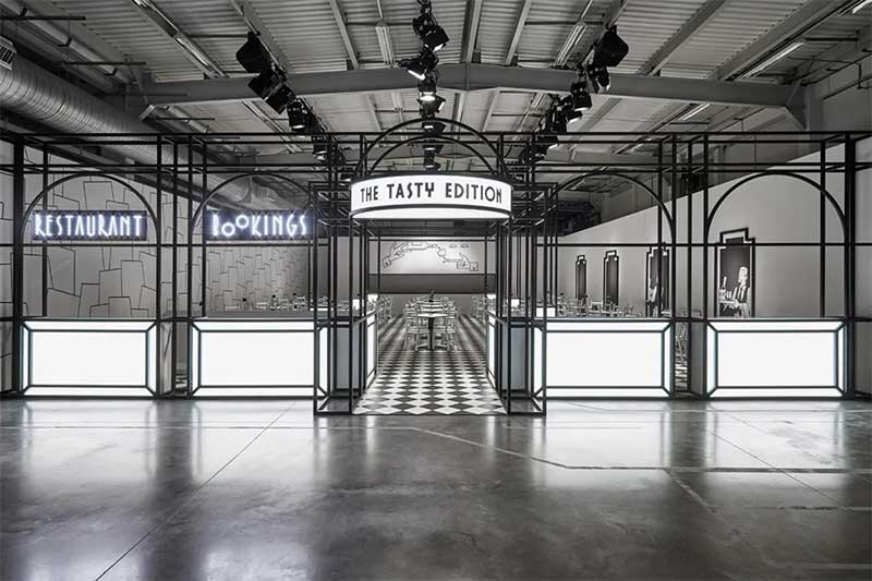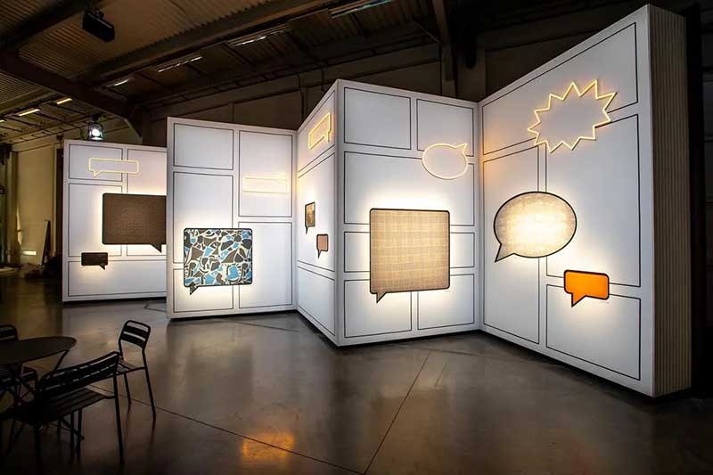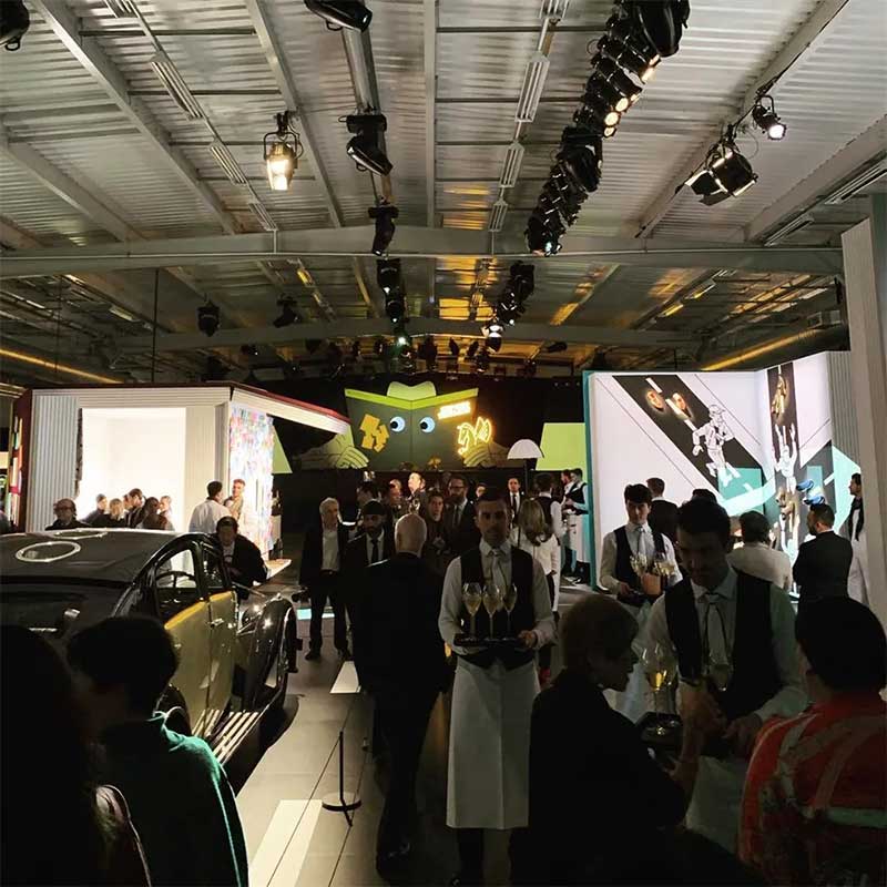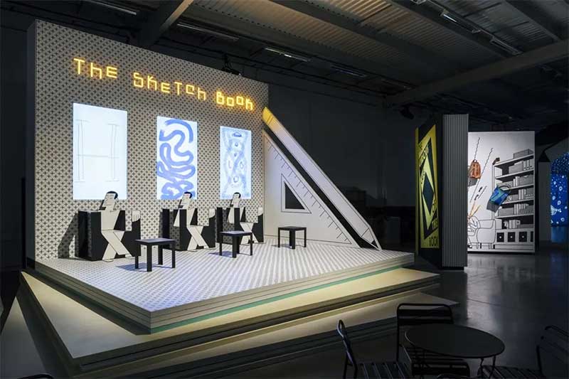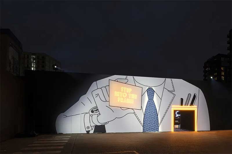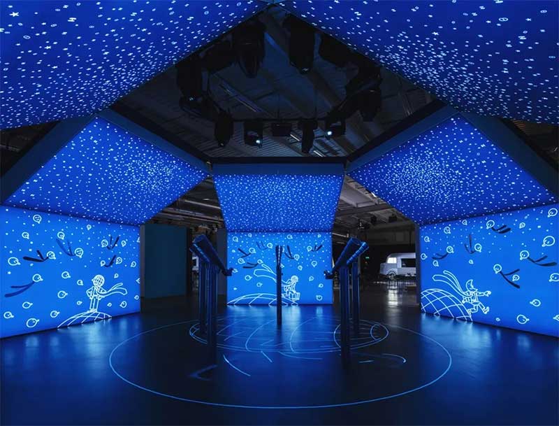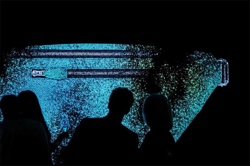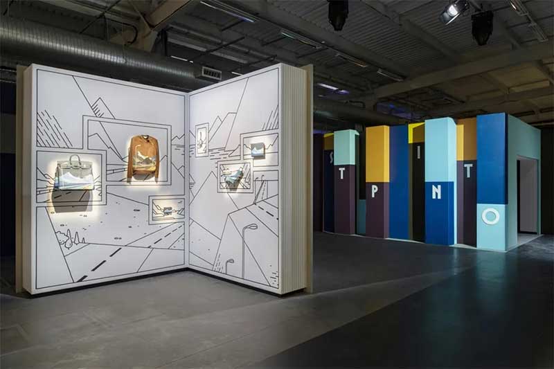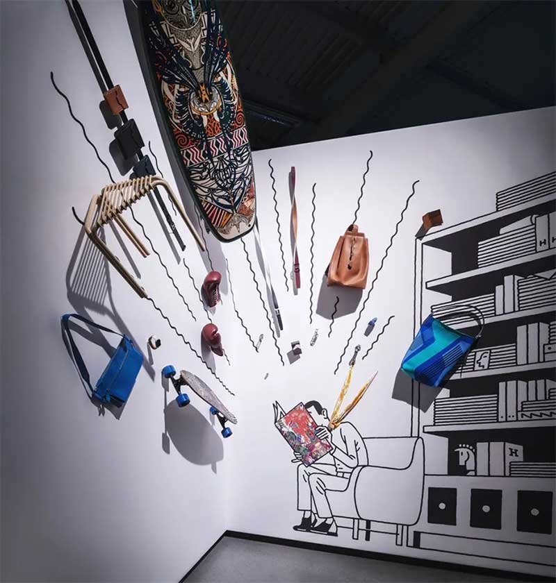 这场沉浸式活动充满创意,完全原创,绝对是以Instagram(社交平台)为代表的自媒体时代而设计,活动现场入口处是一条长长的“蓝色领带地毯”迎接客人的到来。活动被恰如其分地命名为“漫绘梦境”,踏入活动现场就像进入了一本漫画书。客人们必须穿过一个被霓虹灯照亮的通道,接着会会看到一些图形元素,比如一本巨大的书,上面有爱马仕的配件产品跳出页面,还有其他一些动态显示。一个充满霓虹灯的走廊将客人们带进了一个以爱马仕(Hermés)的历史为基础的世界,在这里,客人们将享受到独特而不同的夜晚。