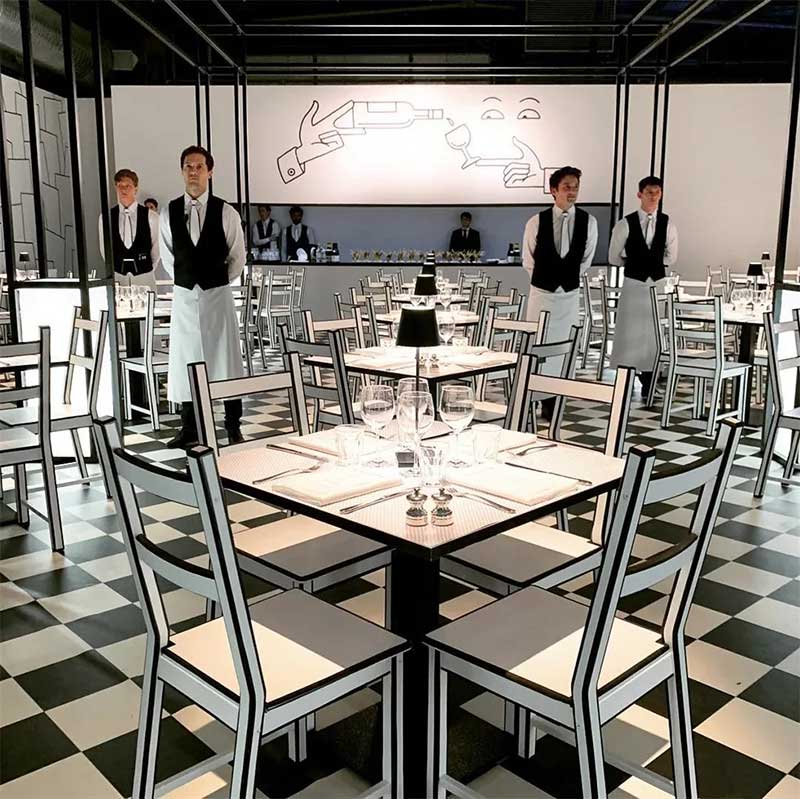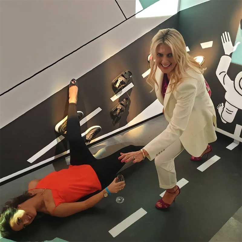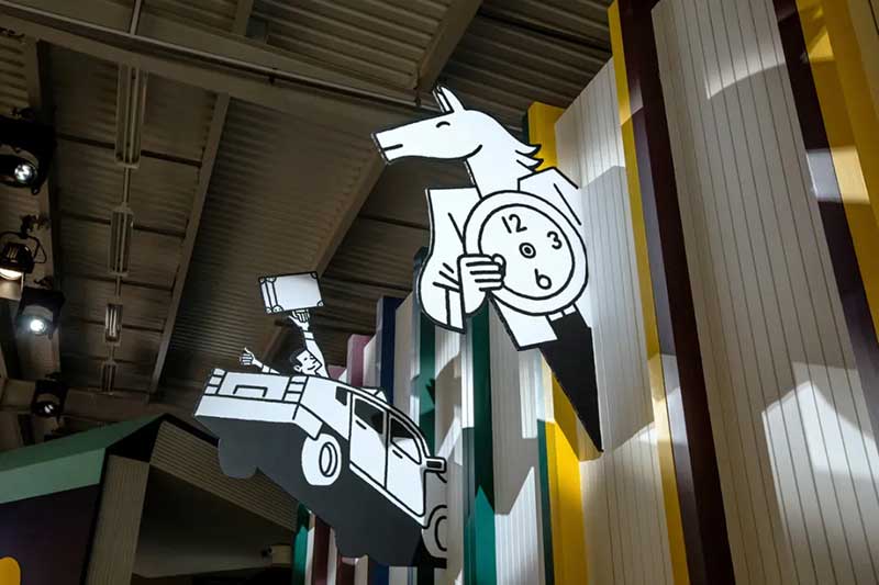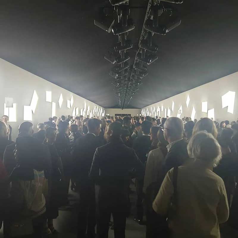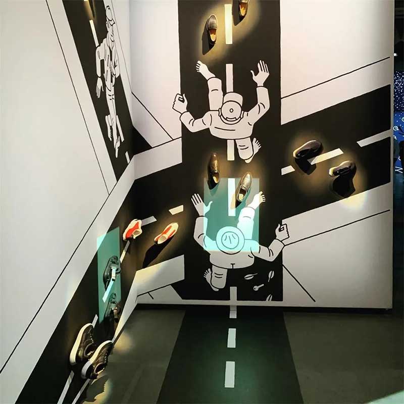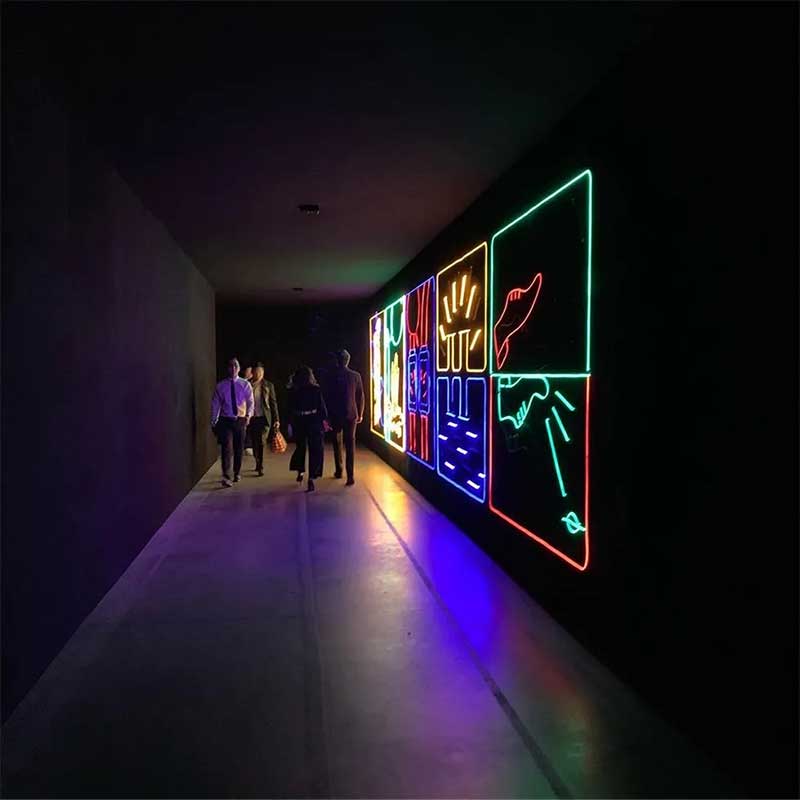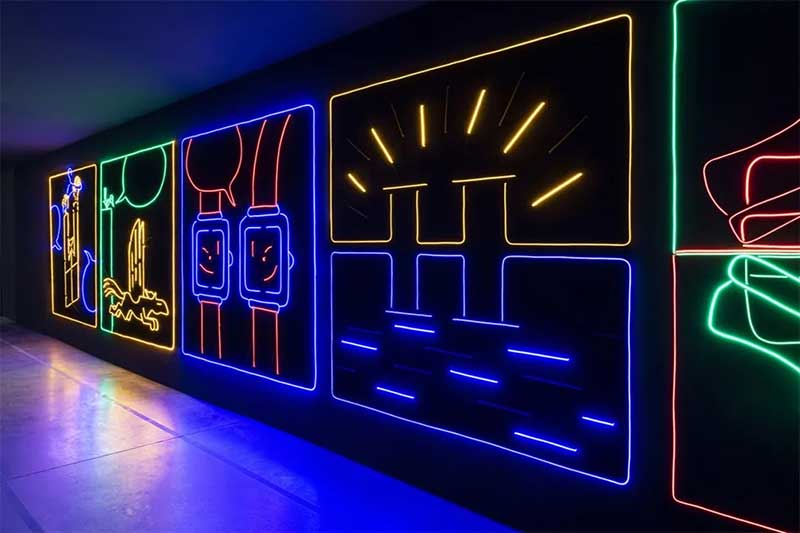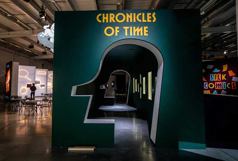 这场沉浸式活动充满创意,完全原创,绝对是以Instagram(社交平台)为代表的自媒体时代而设计,活动现场入口处是一条长长的“蓝色领带地毯”迎接客人的到来。活动被恰如其分地命名为“漫绘梦境”,踏入活动现场就像进入了一本漫画书。客人们必须穿过一个被霓虹灯照亮的通道,接着会会看到一些图形元素,比如一本巨大的书,上面有爱马仕的配件产品跳出页面,还有其他一些动态显示。一个充满霓虹灯的走廊将客人们带进了一个以爱马仕(Hermés)的历史为基础的世界,在这里,客人们将享受到独特而不同的夜晚。