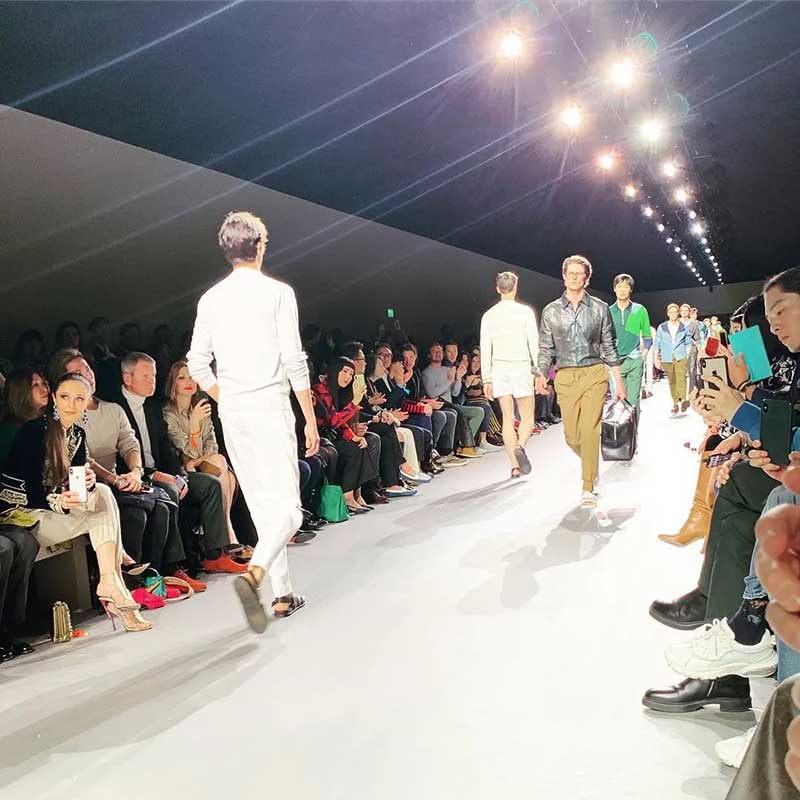 在派对之前,是一场春夏成衣发布秀,与模特一同亮相的有妮莎尼安亲自挑选的伦敦名人,包括芭蕾舞演员爱德华·沃森(Edward Watson)、企业家贾马尔·爱德华兹(Jamal Edwards)、U2乐队的音乐家和贝斯手亚当·克莱顿(Adam Clayton),以及爱马仕英国的董事总经理伯特兰·米肖。