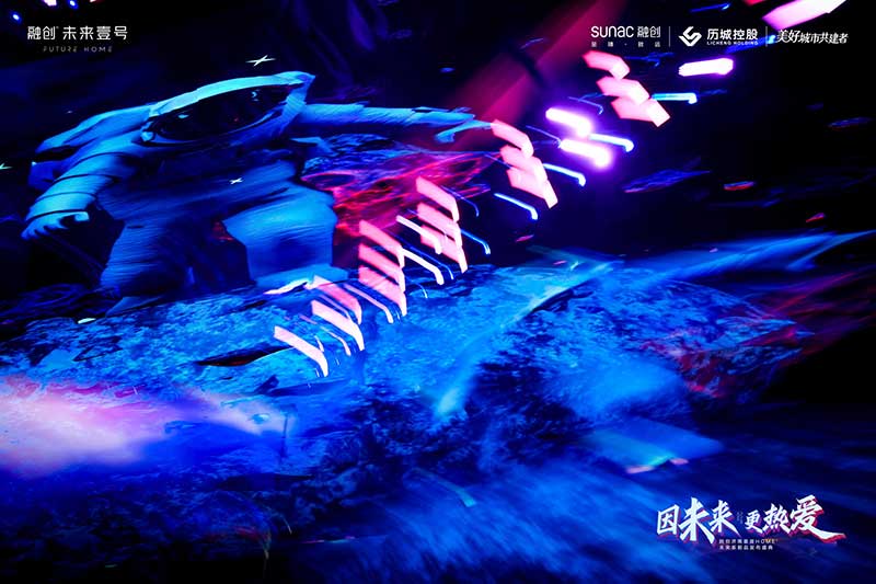 “因未来·更热爱”融创济南首座HOME+未来系新品发布启幕。融创济南将HOME+生活元素融入沉浸式潮流艺术、奇幻乌托邦式的创意、夏日花园式轰趴,打造出一场超时空的潮玩探索之旅,更是融创济南献给城市的一场未来生活的伟大呈现。极致的裸眼3D视觉体验,让整个发布会全程高能,高潮迭起。融创·未来壹号用潮流艺术的形式和创意前沿的科技舞台,让现场仿佛置身未来世界,沉浸未来梦幻光影,演绎新生代HOME+产品理念与价值。